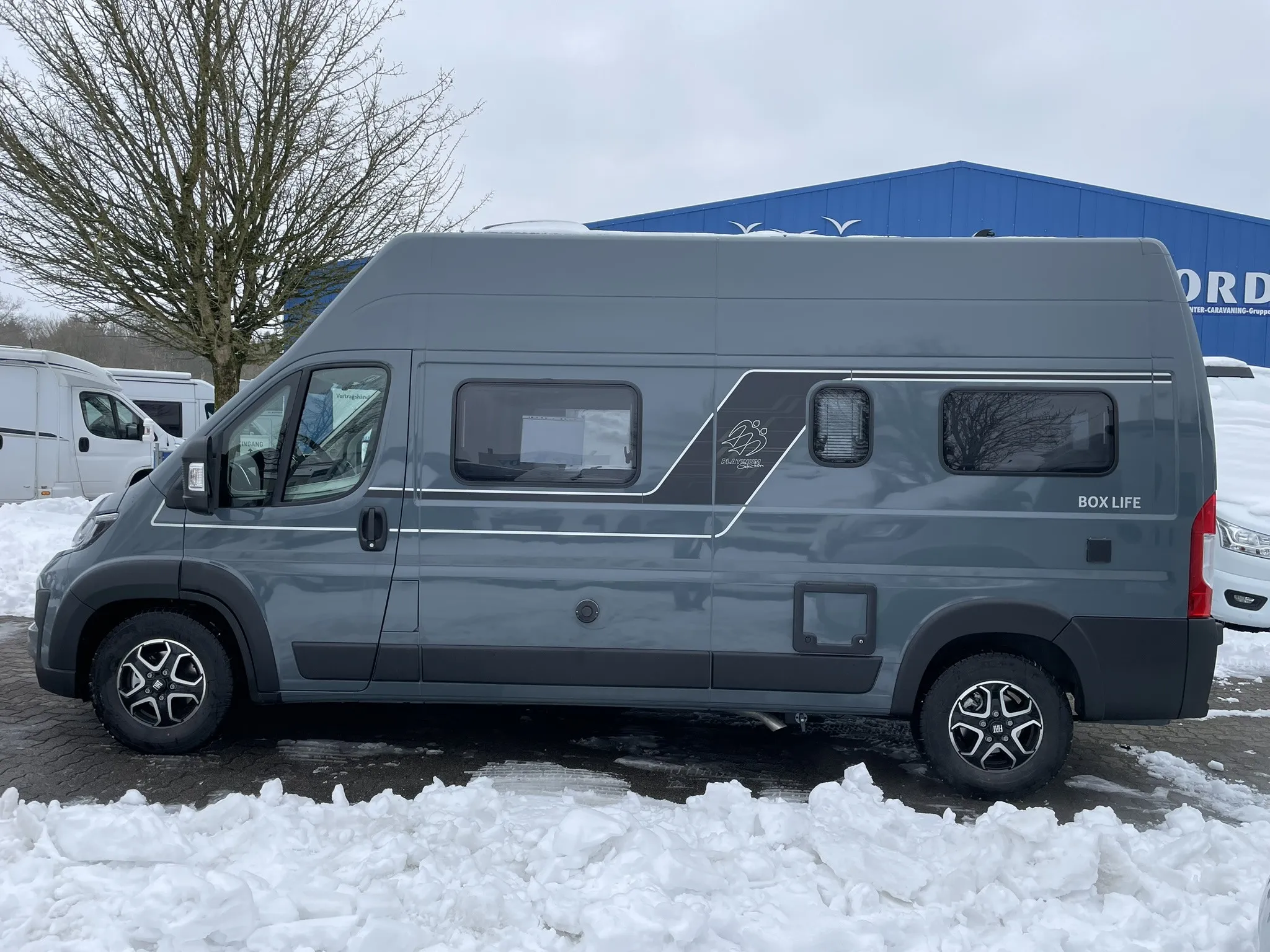 Einstiegstufe elektrisch (Breite: 70 cm), Regenrinne über der Schiebetür mit LED, Rahmenfenster für Hecktüren, Sonderbeklebung "PLATINUM SELECTION", MARKEN Embleme im Bug und im Heck, Nebelscheinwerfer m. Abbiegelicht (Heavy, Lenkrad u. Schaltknauf in Techno-Lederausstattung, Frontstossfänger in Wagenfarbe lackiert, Leichtmetallfelgen für Serienbereifung, 16" Bereifung, Instrumententafel im Techno-Design (Alu), Chassis in Sonderlackierung: Lanzarote Grey, 230 V SCHUKO-Steckdose zus. im Heck (1), 230 V SCHUKO-Steckdose zus. DKS bug links, 12 V Powersteckdose (1 Stück), Rückfahrkamera inkl. Verkabelung, Leseleuchten im Fahrerhaus, Lichtsteuerung, Stimmungsvolle Ambientebeleuchtung, Leselampe Schwanenhals im Sitzbereich, Media-Center 6.8", Vorbereitung PV, Kabelvorverlegung für Sat-Anlagen, TRUMA CP-Plus, digitales Heizungsbedienpanel, Isolierhaube Abwassertank beheizbar, Markise 375 x 250 cm anthrazit, Front- und Seitenscheibenverdunklung, Matratzentopper, Anzahl d. zug. Sitzplätze: 4