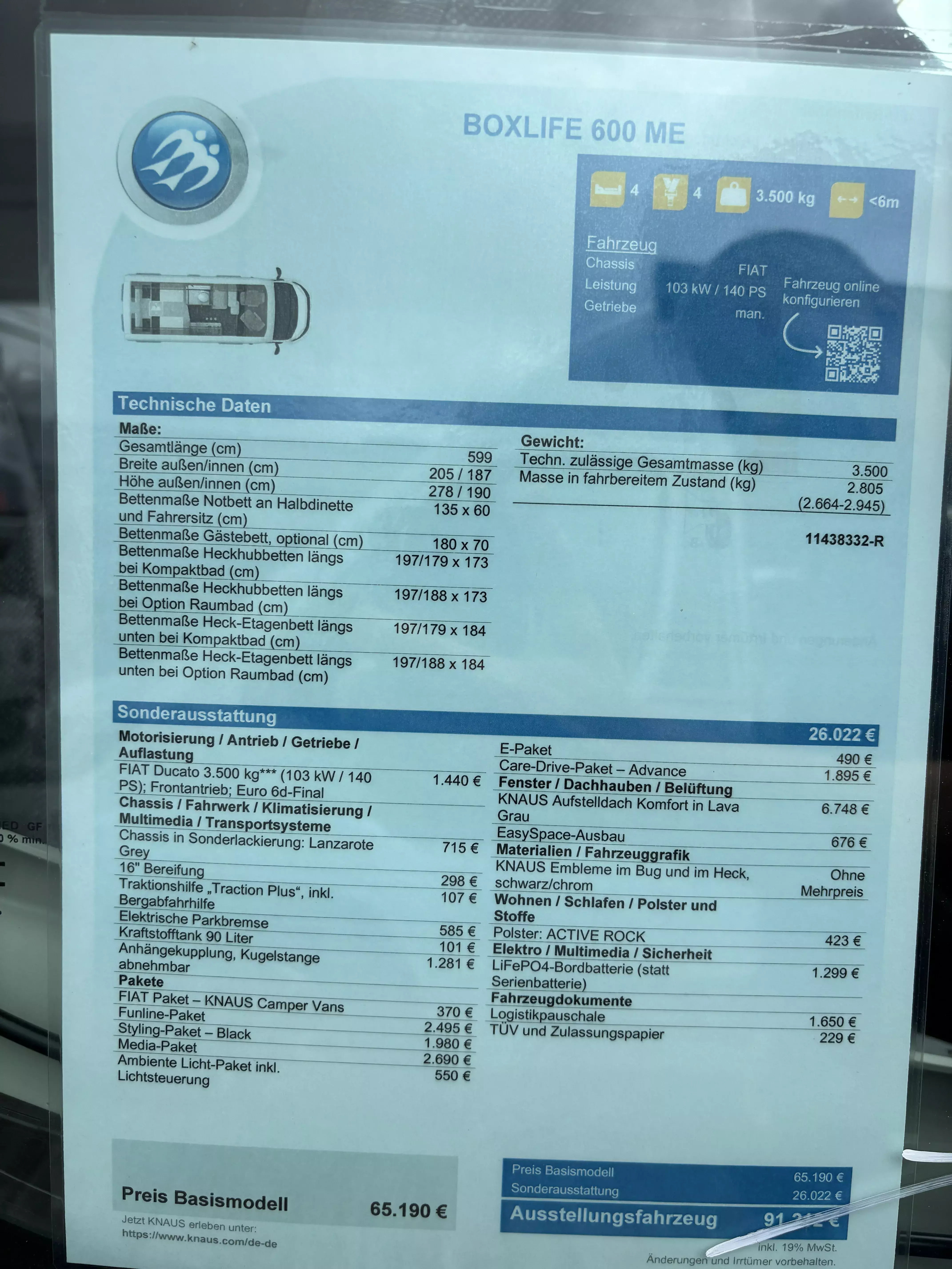 FIAT Paket – KNAUS Camper Vans, enthält: