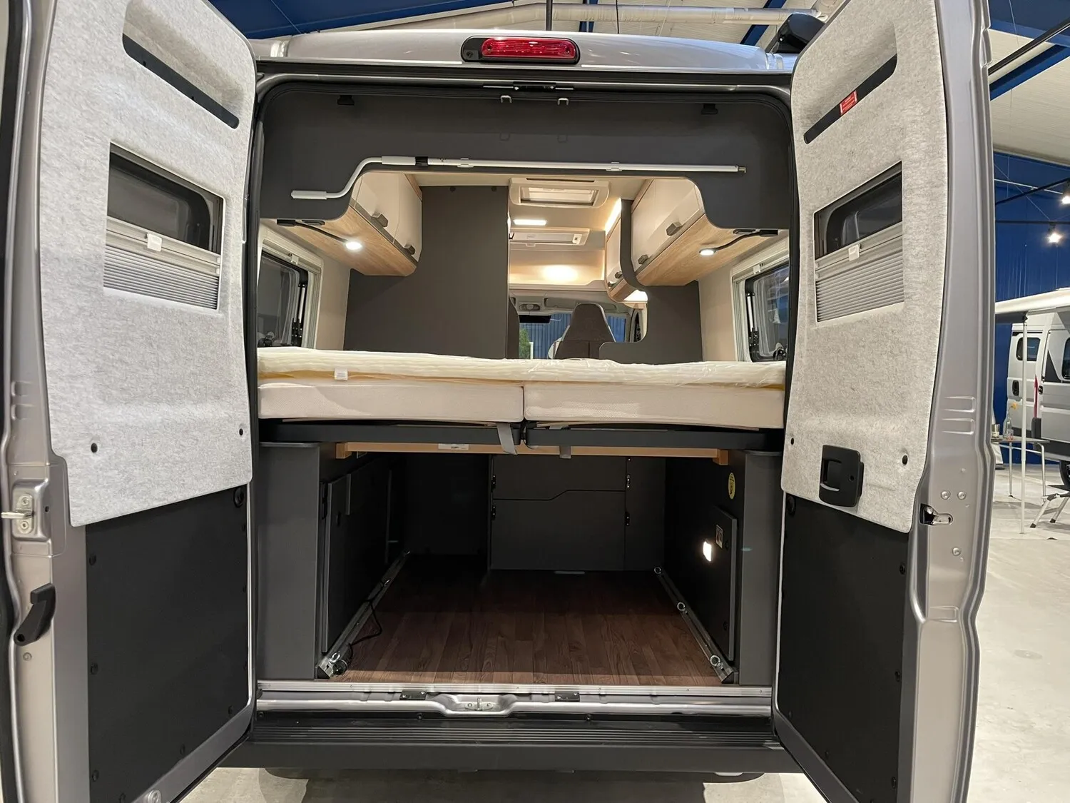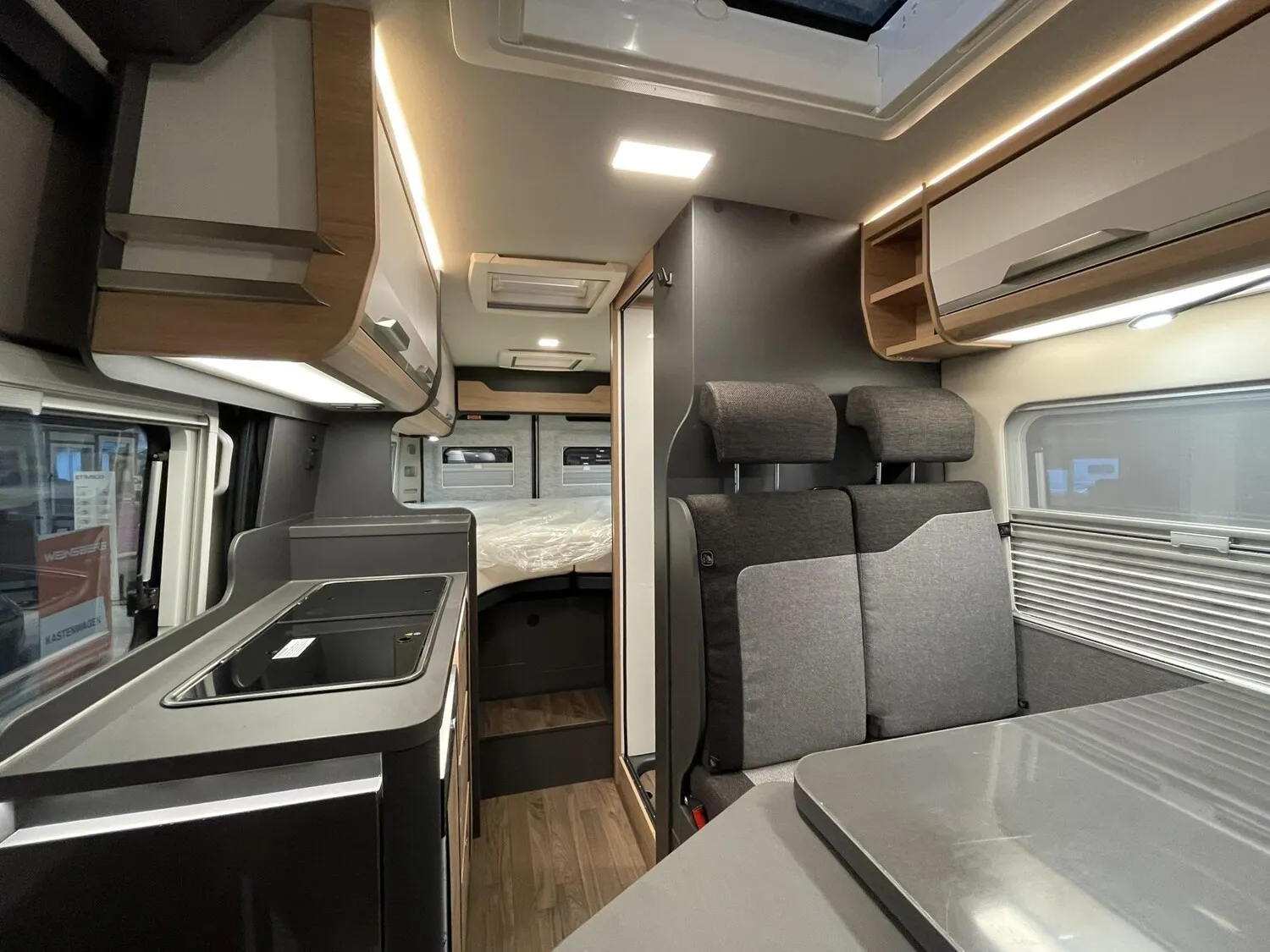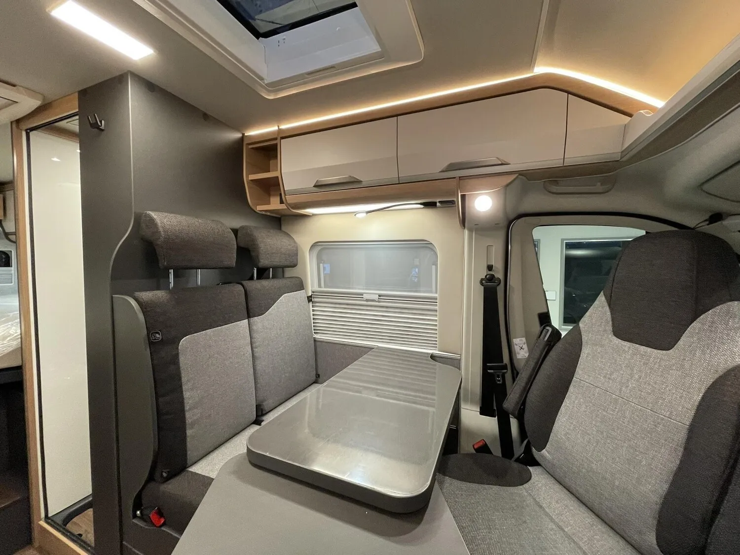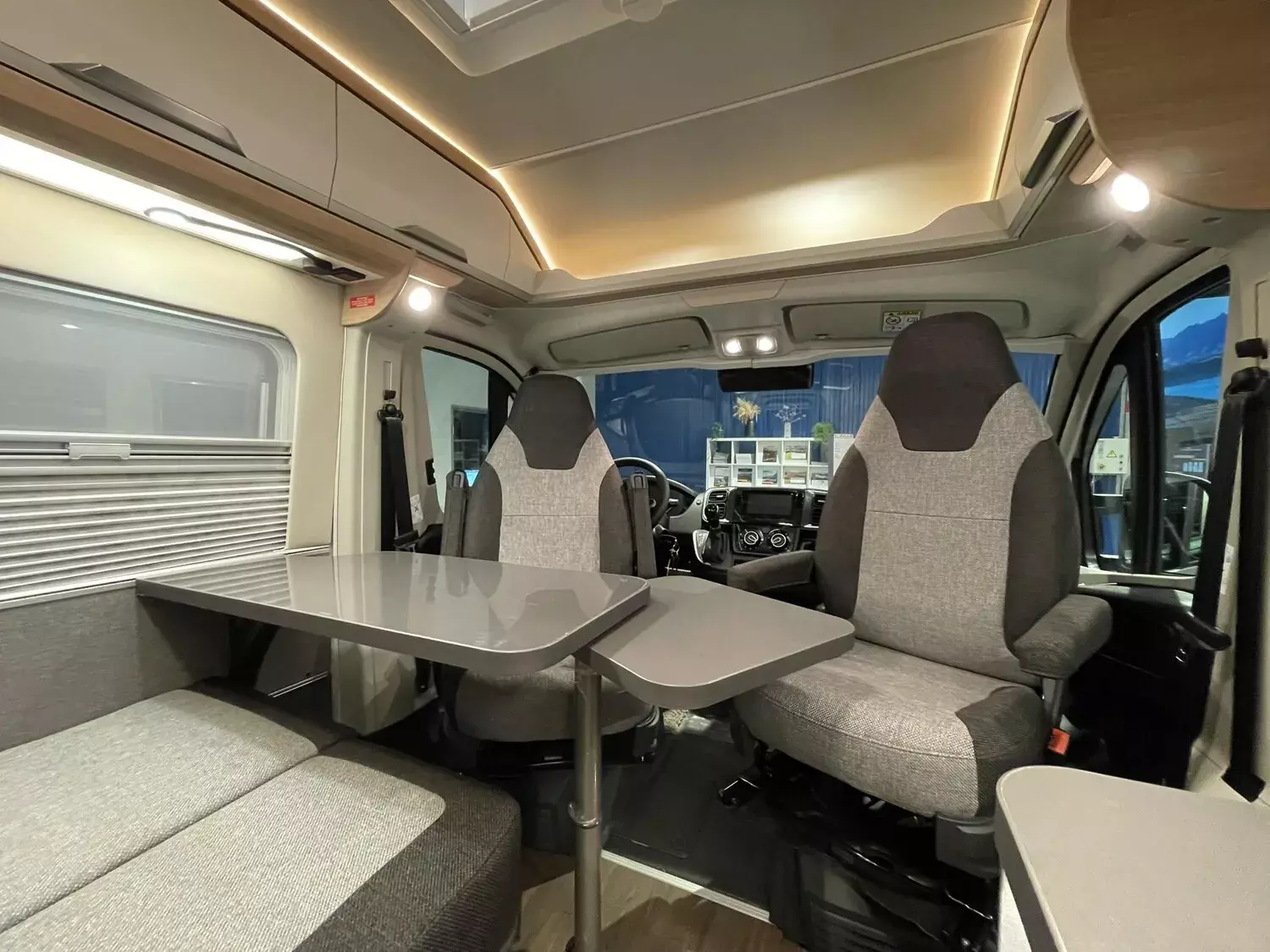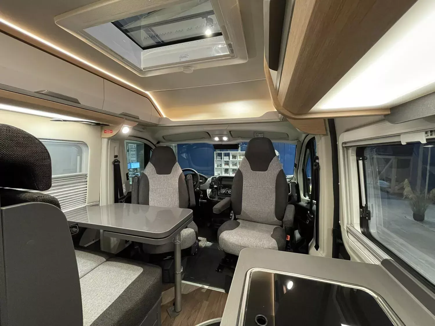 Einstiegstufe elektrisch (Breite: 70 cm), Regenrinne über der Schiebetür mit LED, Rahmenfenster für Hecktüren, Sonderbeklebung "PLATINUM SELECTION", MARKEN Embleme im Bug und im Heck, Nebelscheinwerfer mit Abbiegelicht, Lenkrad u. Schaltknauf in Techno-Lederausstattung, Chassis in Metallic-Lack.: Artense Grey, Frontstossfänger in Wagenfarbe lackiert, Leichtmetallfelgen für Serienbereifung, 16" Bereifung, Spoilerlippen (skid-plate), Instrumententafel im Techno-Design (Alu), 230 V SCHUKO-Steckdose zus. im Heck (1), 230 V SCHUKO-Steckdose zus. DKS bug links, 12 V Powersteckdose (1 Stueck), Rückfahrkamera inkl. Verkabelung, Leseleuchten im Fahrerhaus, Lichtsteuerung, Stimmungsvolle Ambientebeleuchtung, Leselampe Schwanenhals im Sitzbereich, Media-Center 6.8", Vorbereitung PV, Kabelvorverlegung für Sat-Anlagen, TRUMA CP-Plus, digitales Heizungsbedienpanel, Isolierhaube Abwassertank beheizbar, Markise 375 x 250 cm anthrazit, Front- und Seitenscheibenverdunklung, Matratzentopper, Anzahl d. zug. Sitzplätze: 4