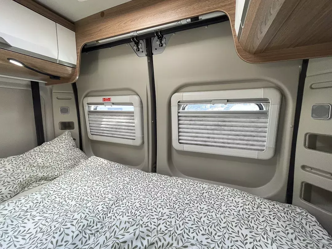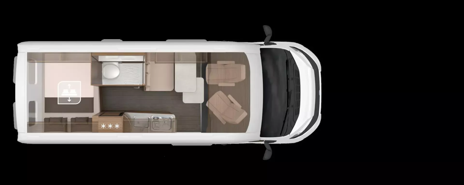 Praktische Details wie das Aufstelldach in Lava Grau, das Funline-Paket mit elektrischer Einstiegstufe, beheizbarem Abwassertank und Wasserfiltersystem sowie das Media-Paket mit Rückfahrkamera und Head-up-Display machen den Alltag unterwegs besonders komfortabel. Das Styling-Paket in Schwarz, Leichtmetallfelgen und LED-Frontbeleuchtung unterstreichen den modernen Look.