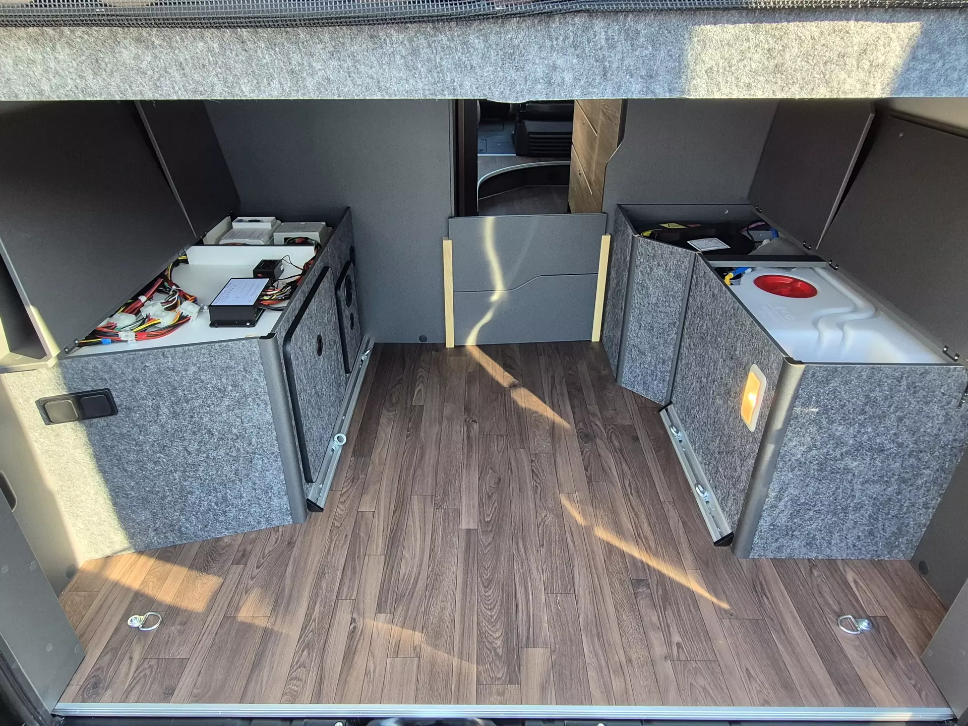 - 230 V SCHUKO-Steckdose zusätzlich, im Heck (1 Stück) + zusätzlich, im Deckenschrank Bug links (1 Stück)