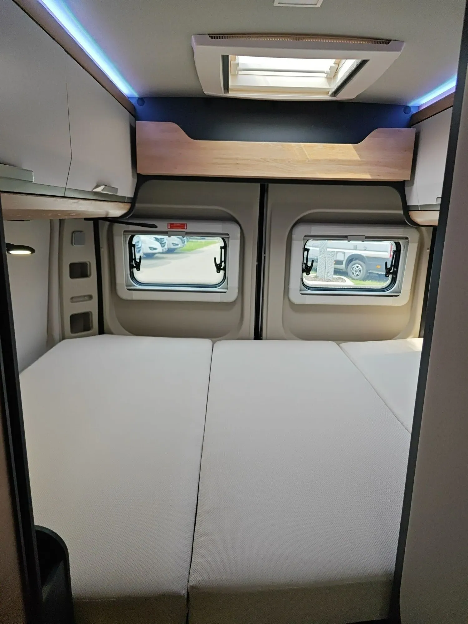 - E-Paket: USB-Schwanenhalsleseleuchte, 12 V Power-Steckdose, zusätzliche 230 V SCHUKO vorn & hinten.