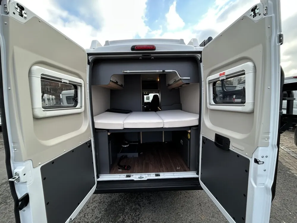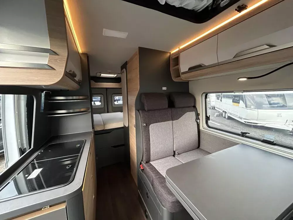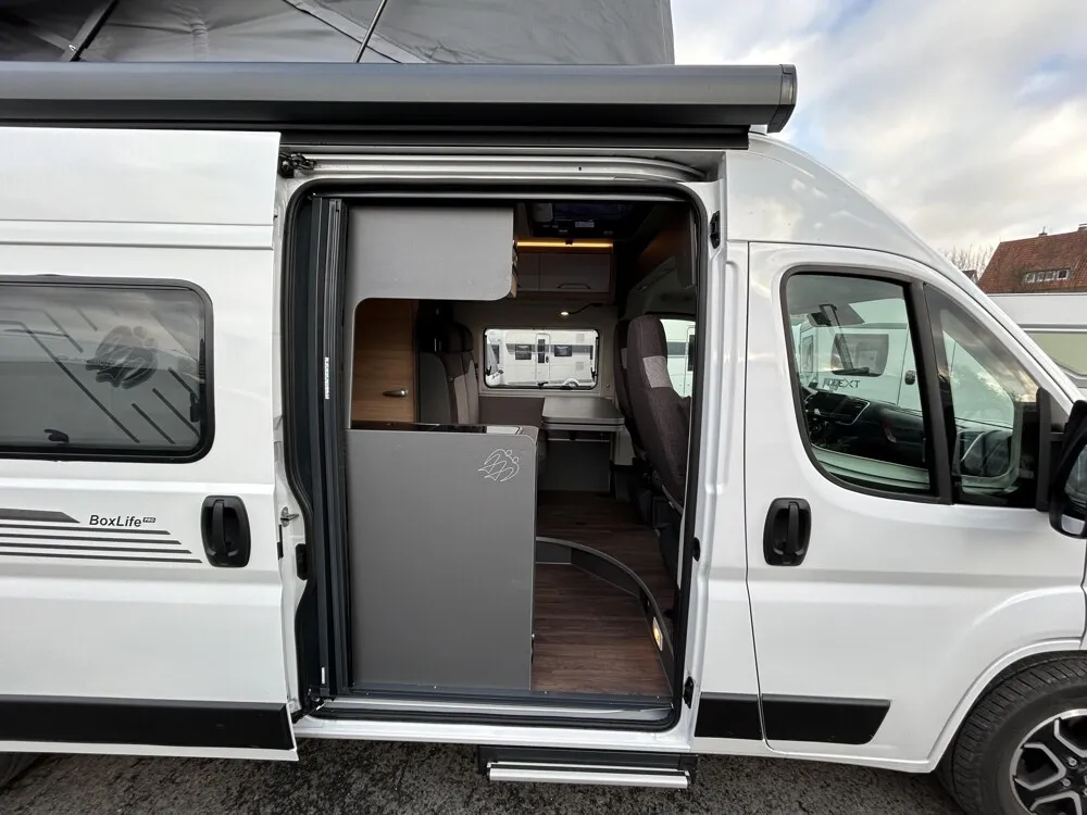 - Funline-Paket (Front- und Seitenscheibenverdunklung, Isolierhaube Abwassertank, beheizbar, TRUMA CP-Plus, digitales Heizungsbedienpanel, Einstiegstufe elektrisch (Breite: 70 cm), Markise 375 x 250 cm, anthrazit, Lichtsteuerung)
