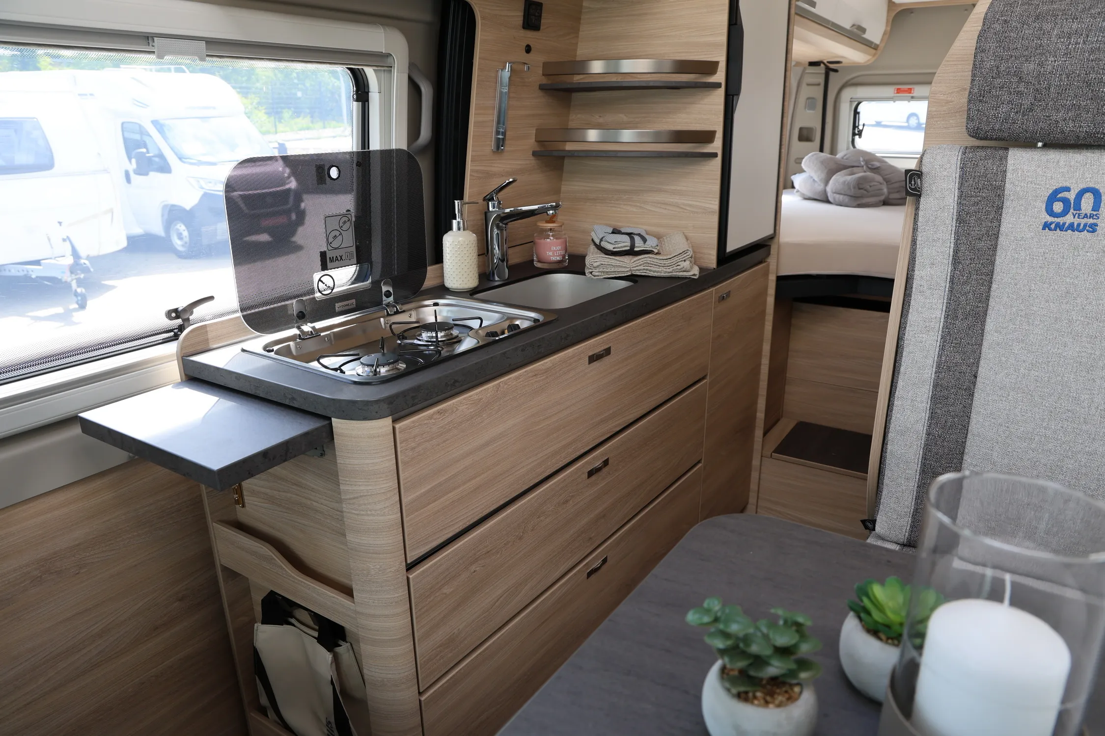 Kompakter alltagstauglicher Knaus CamperVan BoxLife Pro 630 Freeway 60 YEARS als limitiertes Sondermodell zum Aktionspreis! Zusätzlich zur 60 YEARS Jubiläumsausstattung ist nachfolgende traumhafte Vollausstattung bereits im Fahrzeugpreis enthalten: