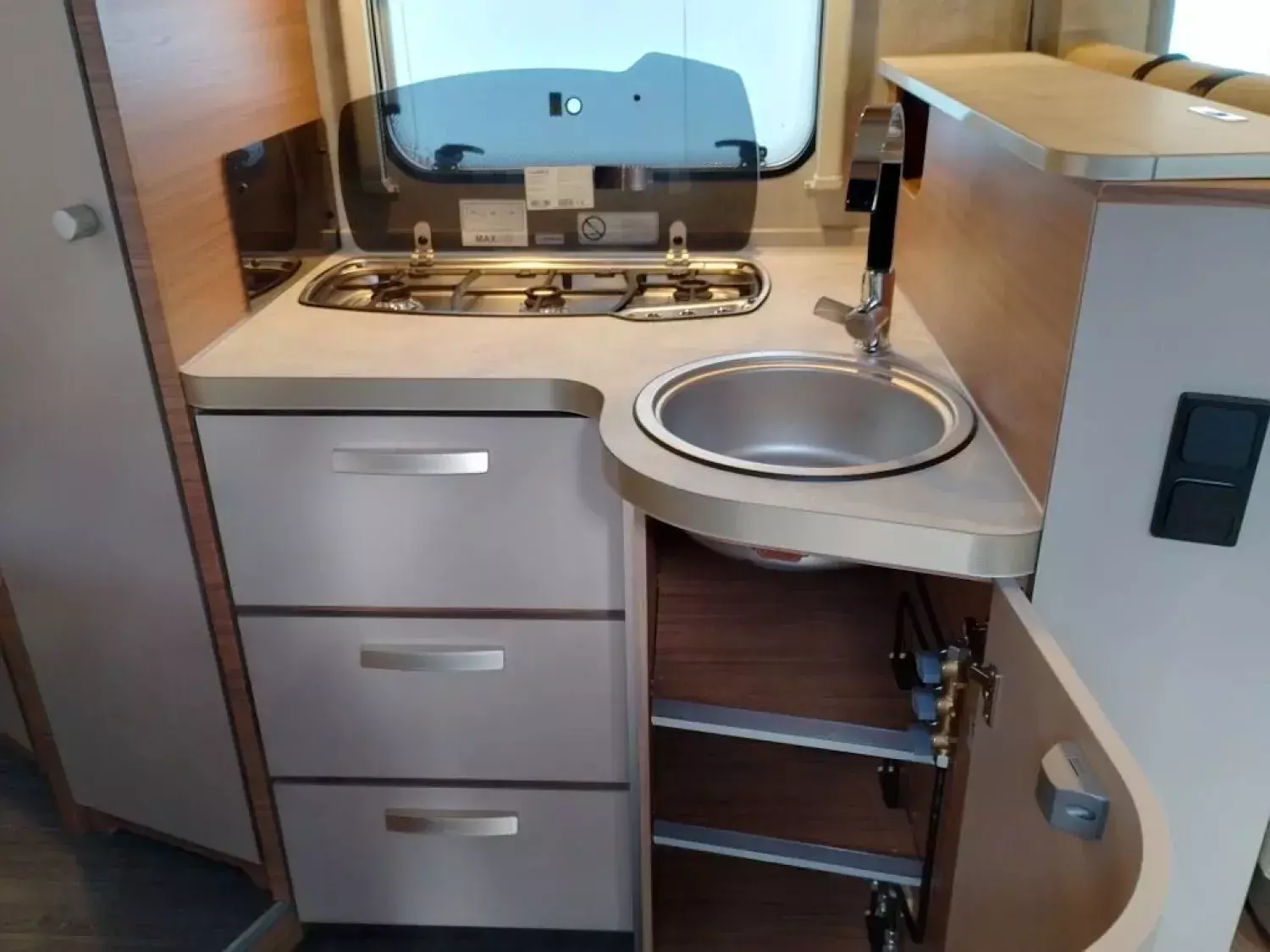 - Schiebefenster auf Beifahrerseite (Höhe Sitzgruppe)