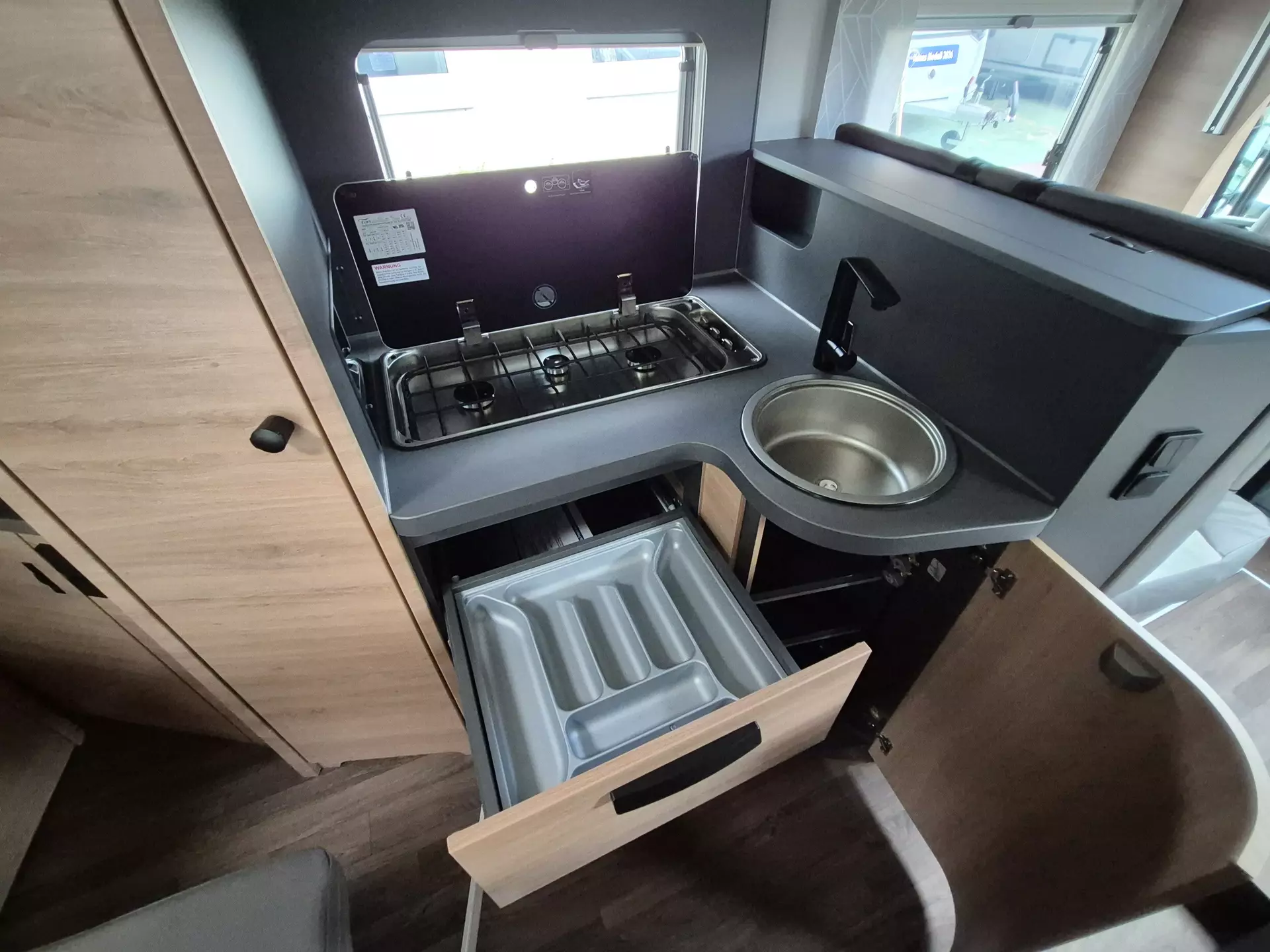 - Schiebefenster auf Beifahrerseite (Höhe Sitzgruppe)