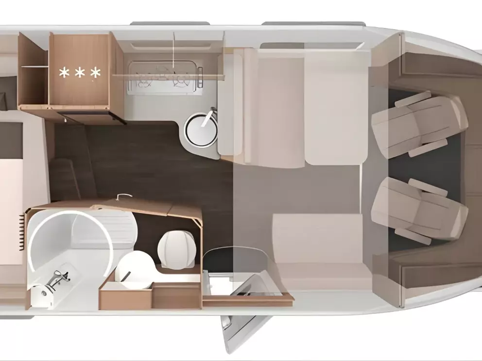 Der durchdachte Grundriss mit Querbett im Heck, zusätzlichem Hubbett über der Sitzgruppe und großzügiger Heckgarage schafft Platz für bis zu vier Personen und viel Gepäck. Die moderne Wohnwelt Active Rock sorgt für ein zeitgemäßes, wohnliches Ambiente. Dank der Platinum Selection ist das Fahrzeug bereits umfangreich ausgestattet – u. a. mit Markise, Insektenschutztür, Ambientebeleuchtung, beheizbarem Abwassertank, TRUMA CP-Plus sowie zahlreichen Fenster- und Stauraumlösungen.