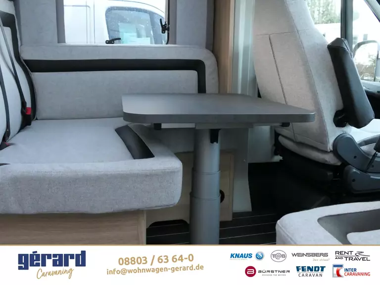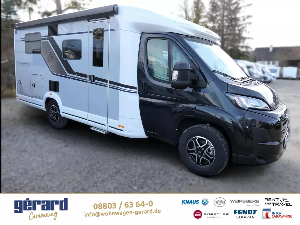 - Styling-Paket I (Lenkrad und Schaltknauf in Techno-Lederausführung, Instrumententafel im Techno-Design (Alu), Nebelscheinwerfer mit Abbiegelicht, 16" Bereifung, Leichtmetallfelgen für Serienbereifung, KNAUS Embleme im Bug und im Heck, schwarz/chrom, Frontstoßfänger in Wagenfarbe lackiert, Spoilerlippen (skid-plate), Chassis in Lackierung: Lanzarote Grey)