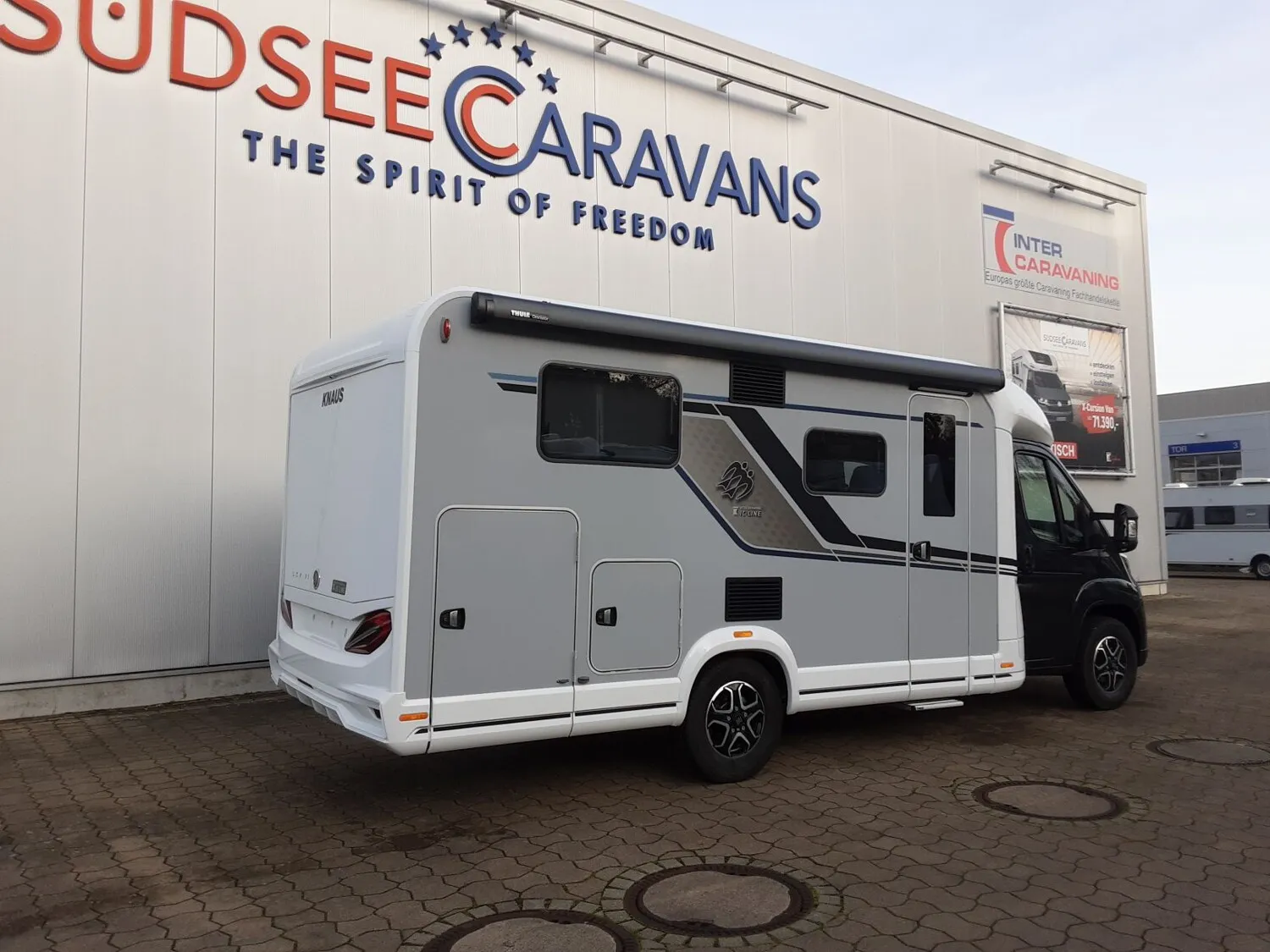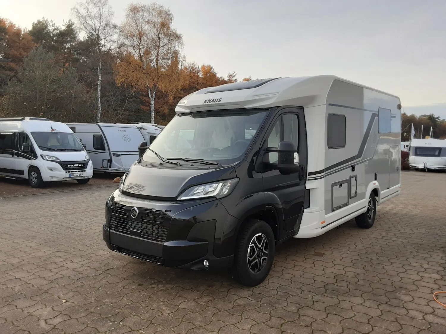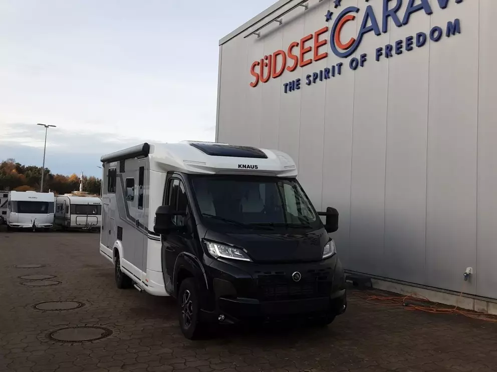 - Styling-Paket I (Lenkrad und Schaltknauf in Techno-Lederausführung, Instrumententafel im Techno-Design (Alu), Nebelscheinwerfer mit Abbiegelicht, 16" Bereifung, Leichtmetallfelgen für Serienbereifung, KNAUS Embleme im Bug und im Heck, schwarz/chrom, Frontstoßfänger in Wagenfarbe lackiert, Spoilerlippen (skid-plate), Chassis in Lackierung: Lanzarote Grey)
