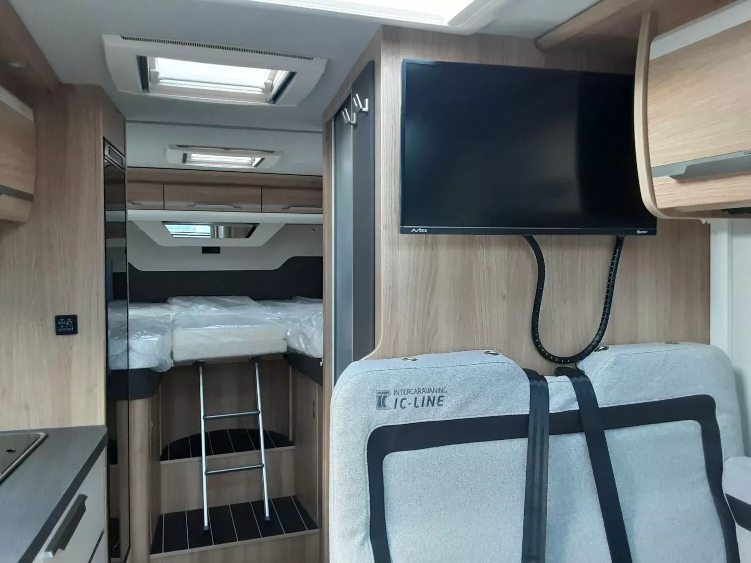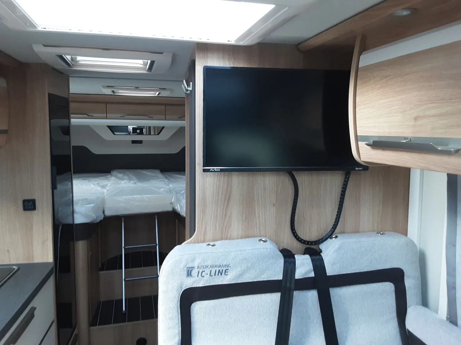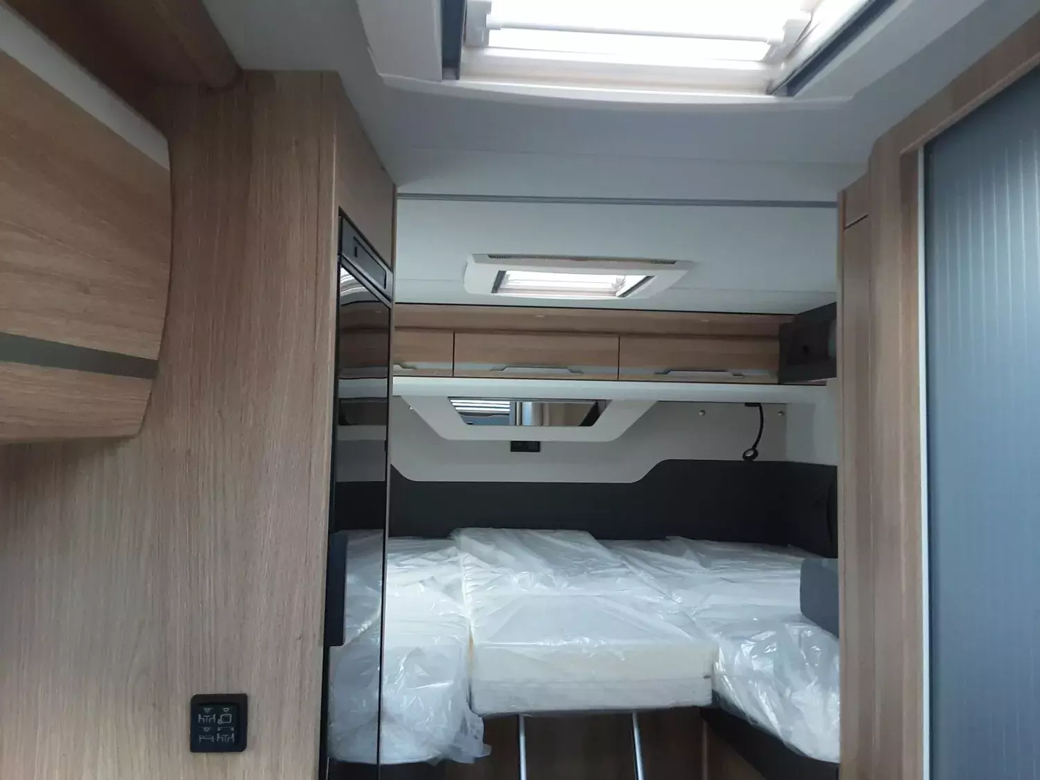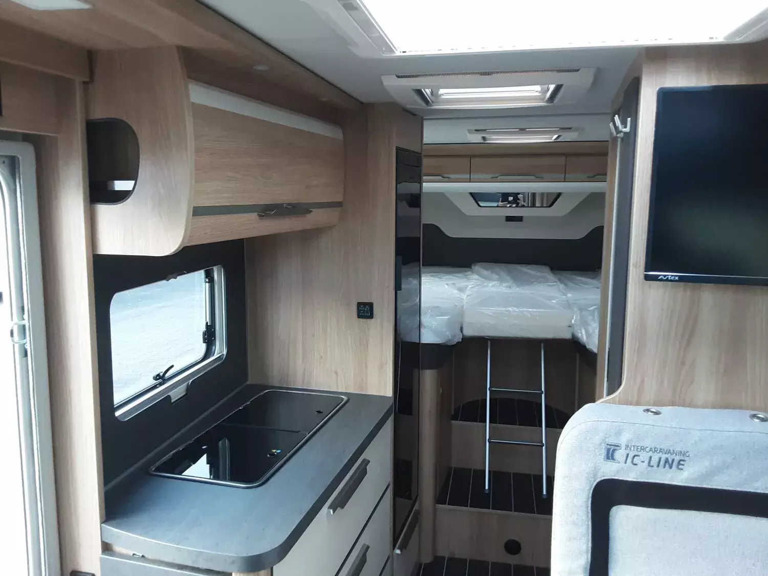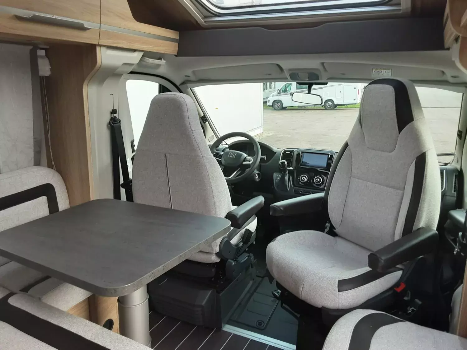 - SKY TI Paket (Dachhaube (Hebe-Kipp) 70 x 50 cm klar, mit Beleuchtung, Insektenschutz und Verdunklung (Bug), Front- und Seitenscheibenverdunklung, Hochwertige Passform-Sitzbezüge für Fahrerhaussitze im KNAUS Wohnwelt-Design, Stoffblenden mit Taschen im Bettbereich, TRUMA CP-Plus, digitales Heizungsbedienpanel, Ambientebeleuchtung und Küchenrückwandverkleidung)