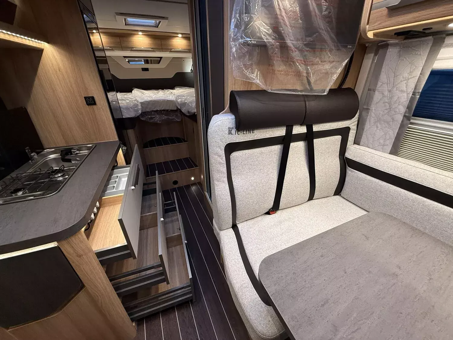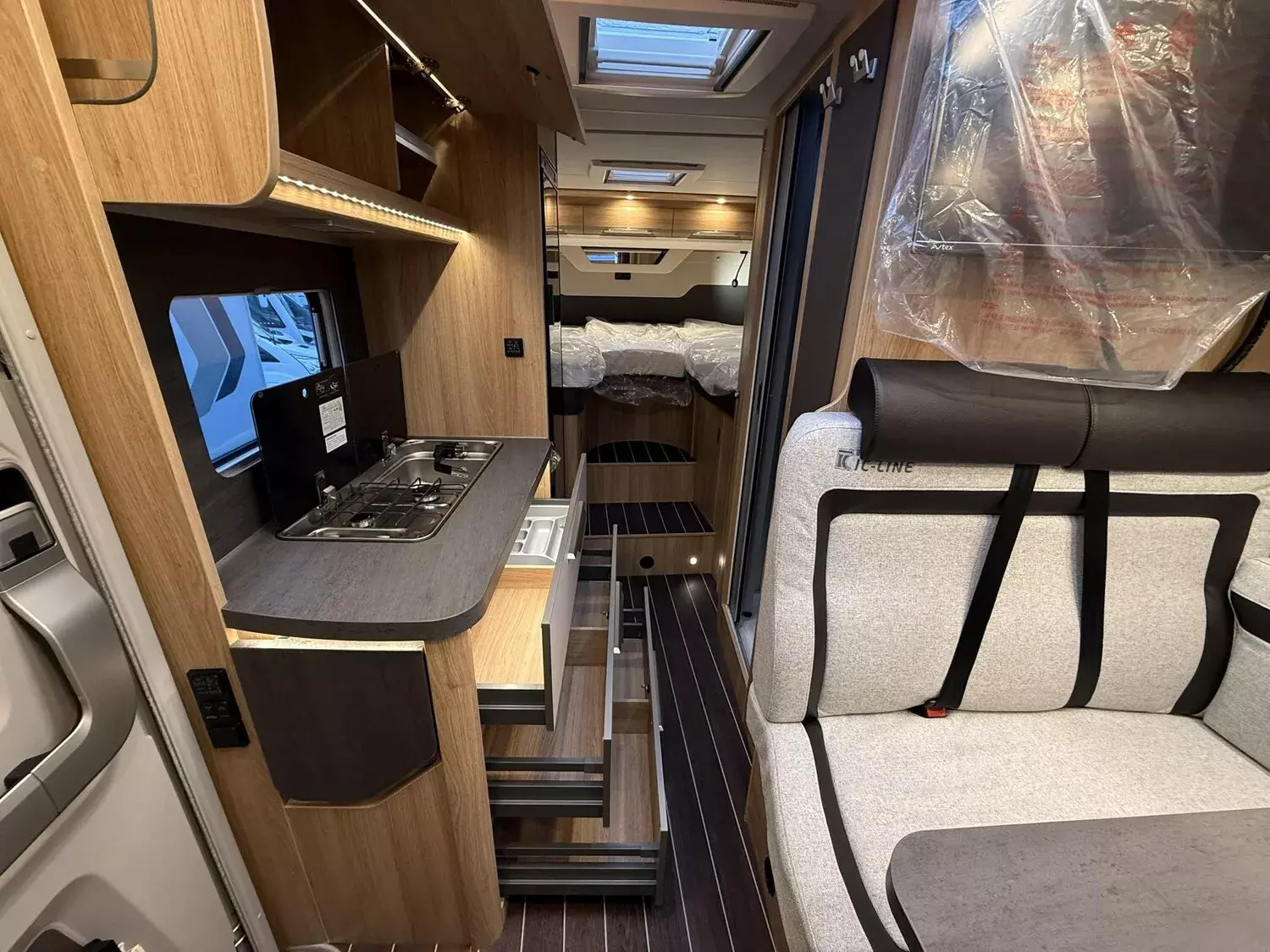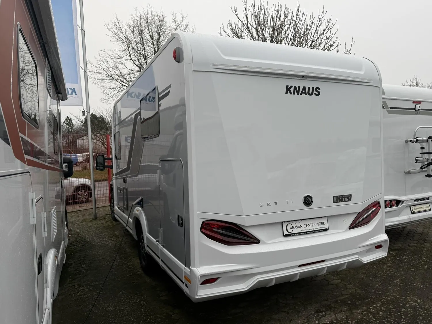 IC-LINE TI 2026 (8-Stufen-Wandlerautomatik / Allwetterbereifung / Leichtmetallfelgen für Serienbereifung / Lenkrad und Schaltknauf in Techno-Lederausführung / Instrumententafel im Techno-Design (Alu) / Front- und Seitenscheibenverdunklung / Nebelscheinwerfer mit Abbiegelicht / Kraftstofftank 90 Liter / Media-Center 6.8" / Rückfahrkamera inkl. Verkabelung / Vorbereitung für Anhängevorrichtung / Aufbautür: KNAUS PREMIUM / Insektenschutztür / Einstiegstufe elektrisch / Garagentür beidseitig / Rahmenfenster SEITZ / Ausstellfenster Hutze / L-Sitzgruppe mit Teleskop-Einsäulenhubtisch / Betterweiterung zur Liegewiese / Bettumbau der Sitzgruppe / TRUMA DuoControl CS (inkl. Gasfilter) / TRUMA CP-Plus, digitales Heizungsbedienpanel / Ambientebeleuchtung und Küchenrückwandverkleidung / 27" SMART TV-Gerät mit HD-Tuner / Vorverkabelung für TV (Schlafbereich) / Externe LTE / W-LAN Antenne / Markise)