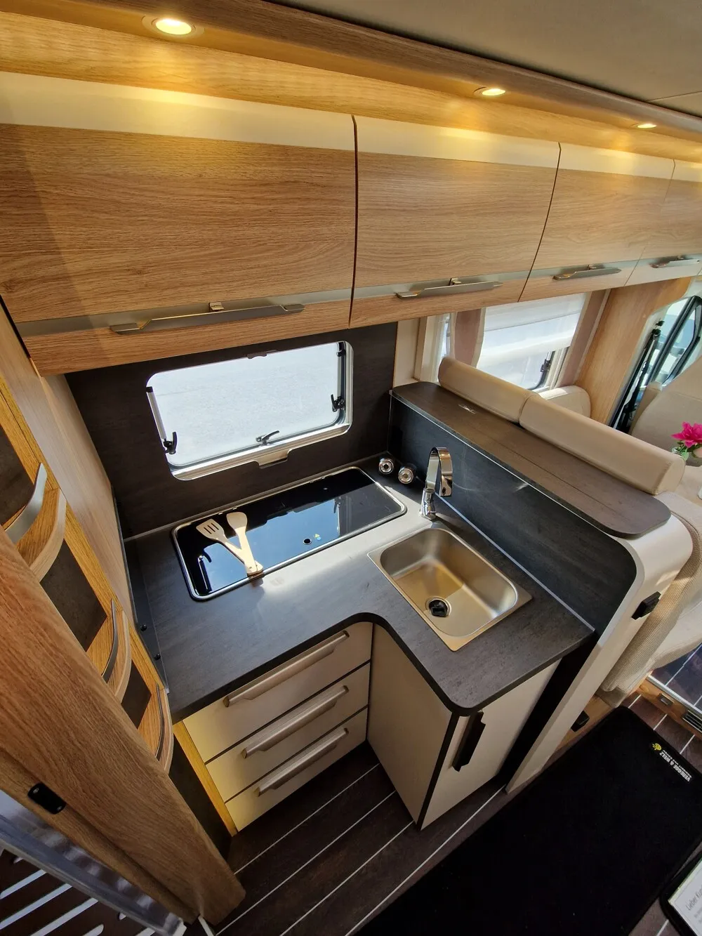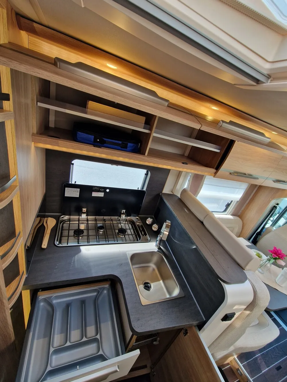 - SKY TI Paket (Dachhaube (Hebe-Kipp) 70 x 50 cm klar, mit Beleuchtung, Insektenschutz und Verdunklung (Bug), Seifen- und Spülmittelspender, Wasserfiltersystem "bluuwater", MediKit Gutschein, Front- und Seitenscheibenverdunklung, Hochwertige Passform-Sitzbezüge für Fahrerhaussitze im KNAUS Wohnwelt-Design , Stoffblenden mit Taschen im Bettbereich , Positionsleuchten der Hutze in LED-Lichtleitertechnik, TRUMA CP-Plus, digitales Heizungsbedienpanel, Garagentür 80 x 110 cm, links, Insektenschutztür)