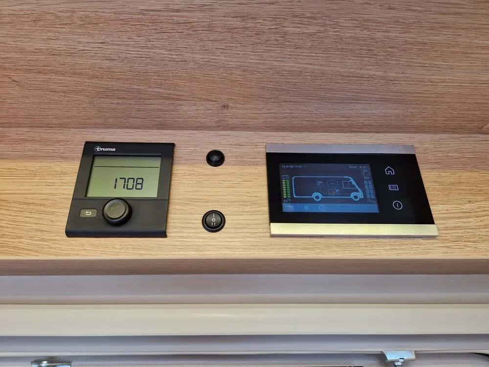 - Energy Plus-Paket (Touch-Control-Panel mit intuitivem Bedienkonzept vernetzter Komponenten, inkl. Innen- und Außentemperaturfühler statt serienmäßigem Control-Panel, Lithium (LiFePO4)-Bordbatterie (statt Serienbatterie))
