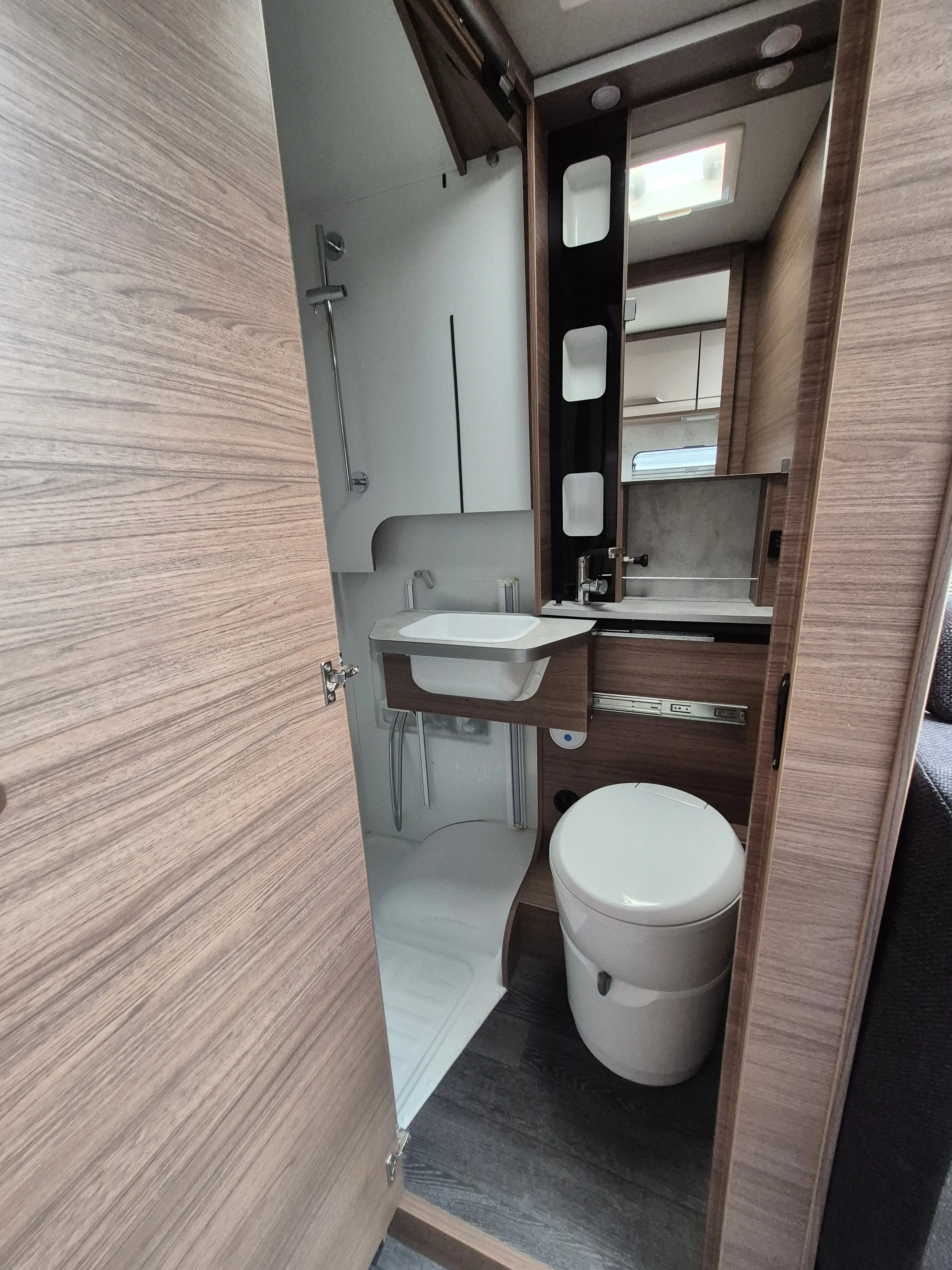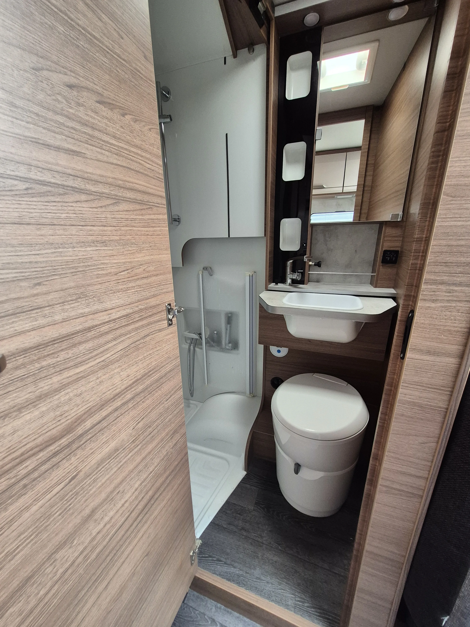 - vollwertige Heckgarage und multifunktionales Xpand Bad im 500 MQ (mit wenigen Handgriffen kann die höhenverstellbare Dusche auf bis zu 1,90cm Stehhöhe nach oben geschoben werden.)