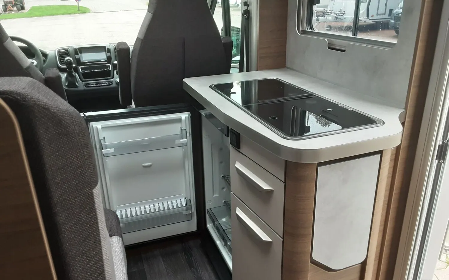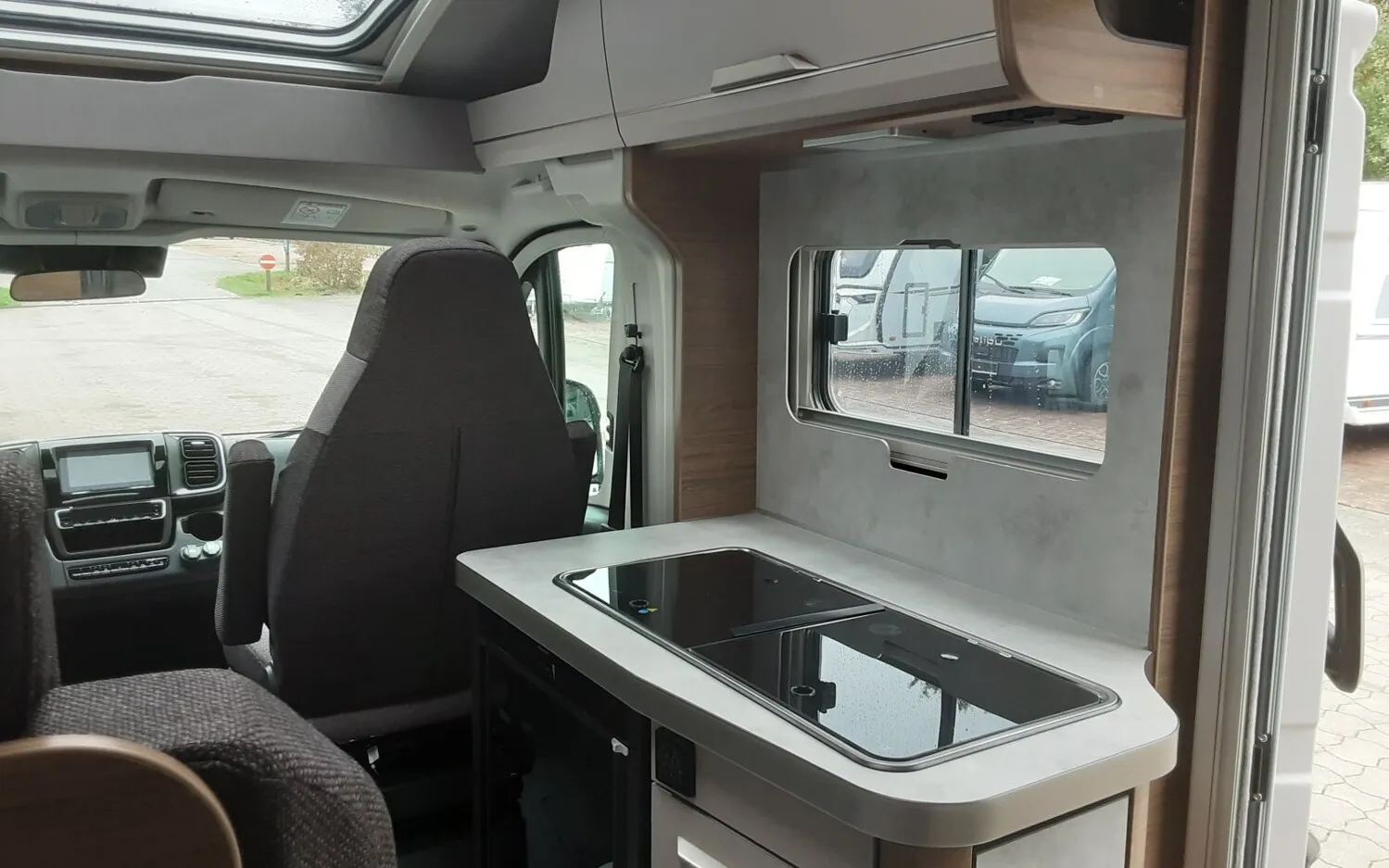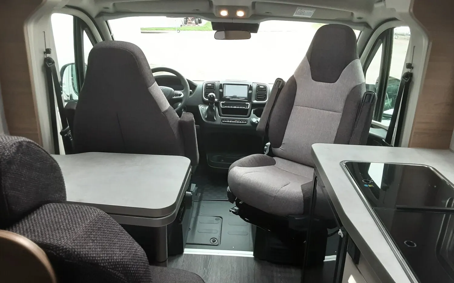 - Energy Plus-Paket (Touch-Control-Panel mit intuitivem Bedienkonzept vernetzter Komponenten, inkl. Innen- und Außentemperaturfühler statt serienmäßigem Control-Panel, Lithium (LiFePO4)-Bordbatterie (statt Serienbatterie))