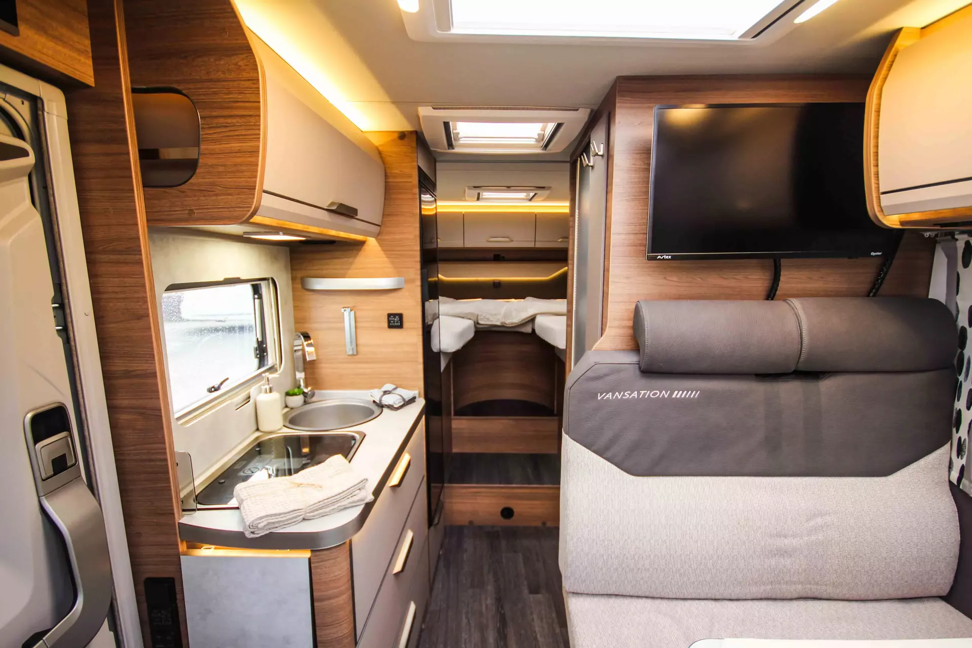 Gepflegtes und sofort verfügbares Knaus Wohnmobil VAN TI 640 MEG VANSATION mit komfortablen Einzelbetten, Licht & Assistenz I - Paket (Abstandsgeregelter Tempomat (ACC) mit Geschwindigkeitsbegrenzer, Aktiver Spurhalteassistent, Verkehrszeichenerkennung, Scheibenwischer-Intervallschaltung mit Regensensor und automatische Fahrlichtschaltung, Fernlichtassistent: „Light Assist“, Reifenluftdrucksensoren VW Crafter, LED-Hauptscheinwerfer mit LED-Tagfahrlicht, 230 V Steckdose im Fahrersitzgestell), Truma DuoControl CS, elektrischer Trittstufe, Rahmenfenster SEITZ S7, Lithium-Ionen-Bordbatterie statt Serienbatterie, Thule Radträger sowie weiterer hochwertigen Sonderausstattung aus unserer werkstattgeprüften Rent & Travel Vermietflotte. Fahrzeugkauf ohne Risiko! Für dieses Fahrzeug erhalten Sie eine Neuwagen-Garantie bis 02 / 2027!