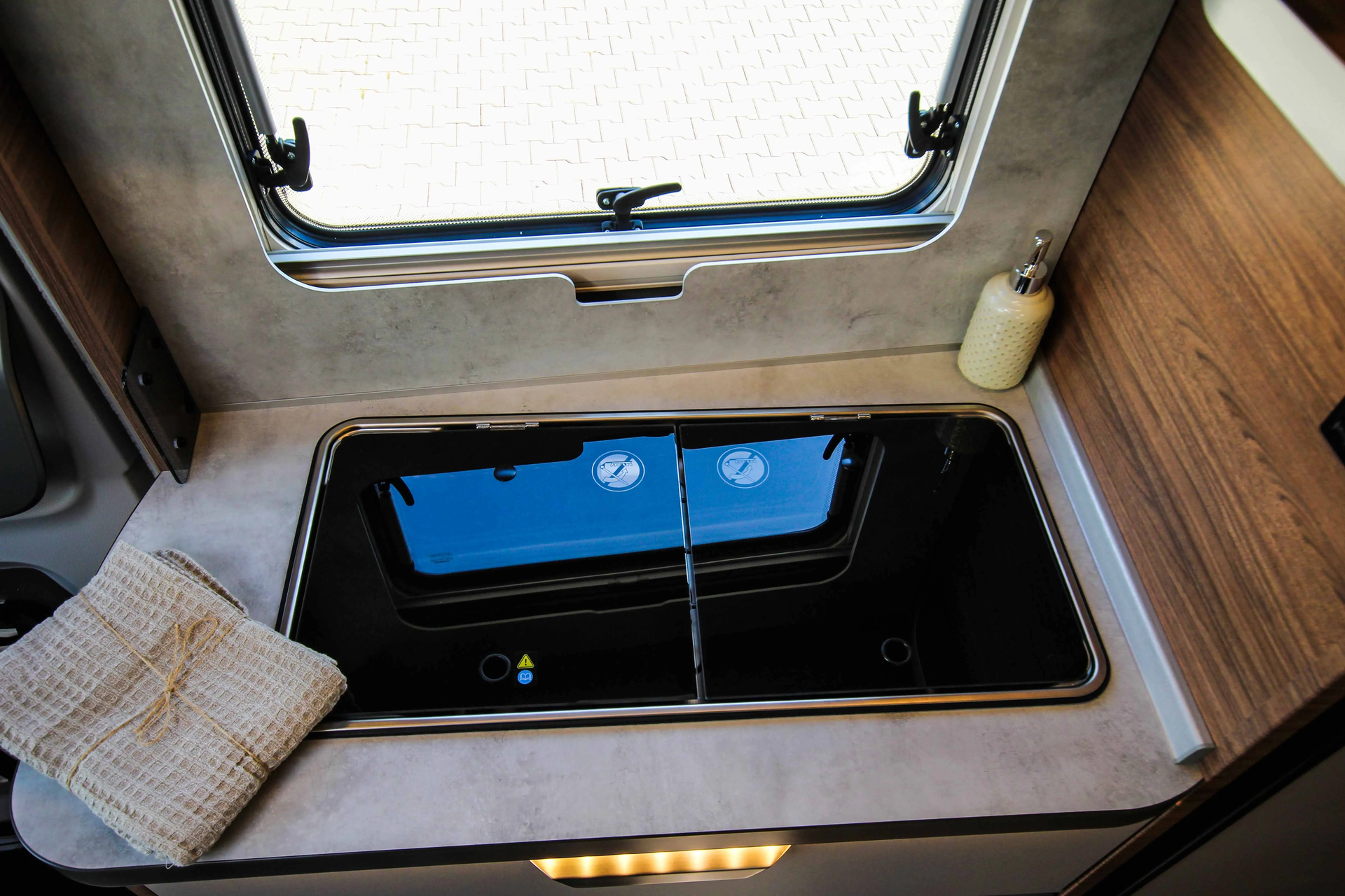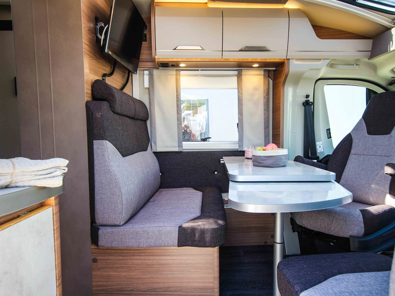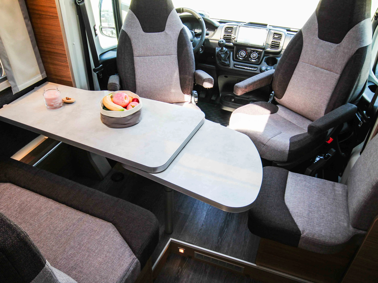 - Energy Plus-Paket (Touch-Control-Panel mit intuitivem Bedienkonzept vernetzter Komponenten, inkl. Innen- und Außentemperaturfühler statt serienmäßigem Control-Panel, Lithium (LiFePO4)-Bordbatterie (statt Serienbatterie))