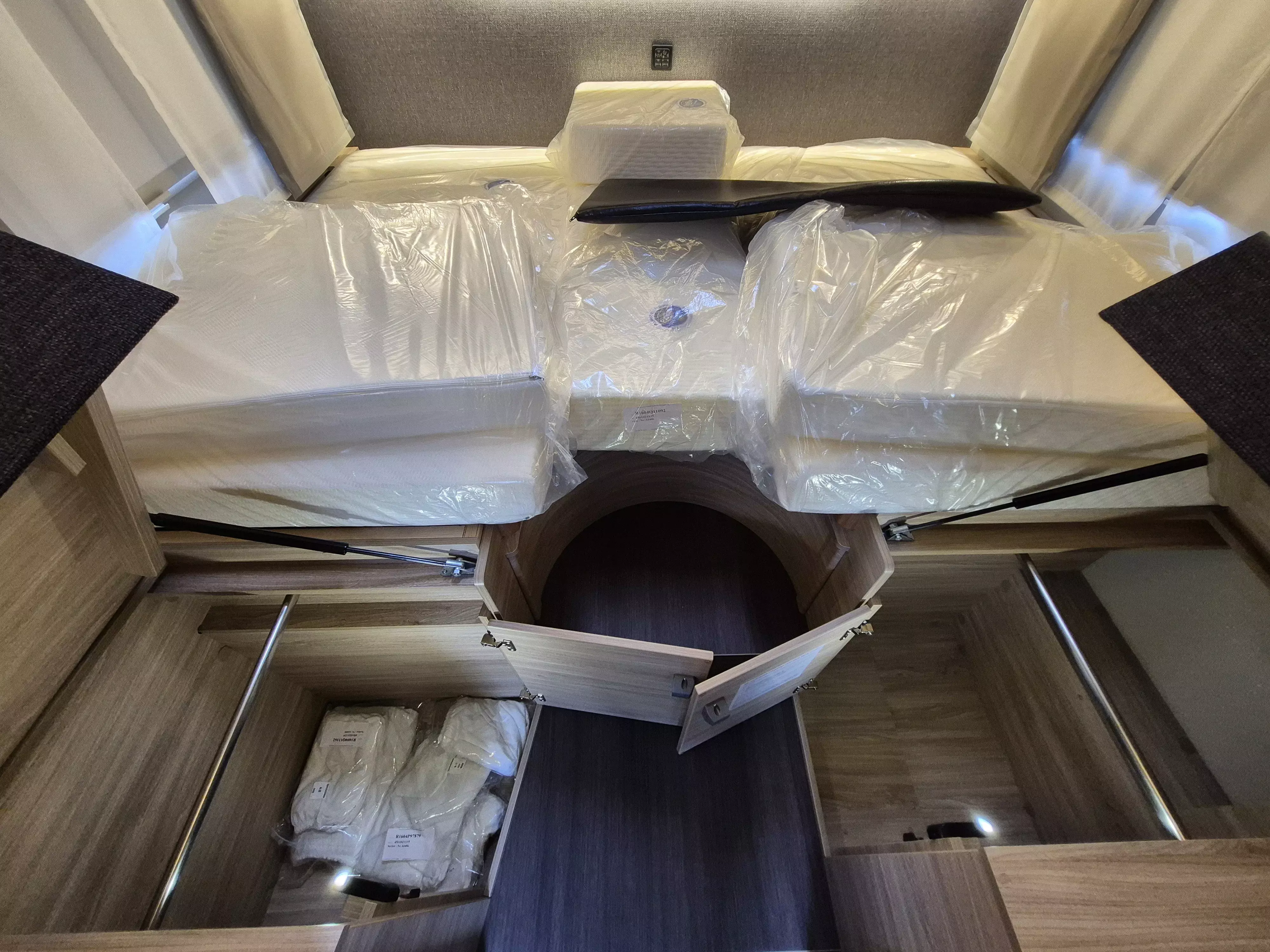 - Zusätzliche Staukästen im Heck links und rechts, über Einzelbetten