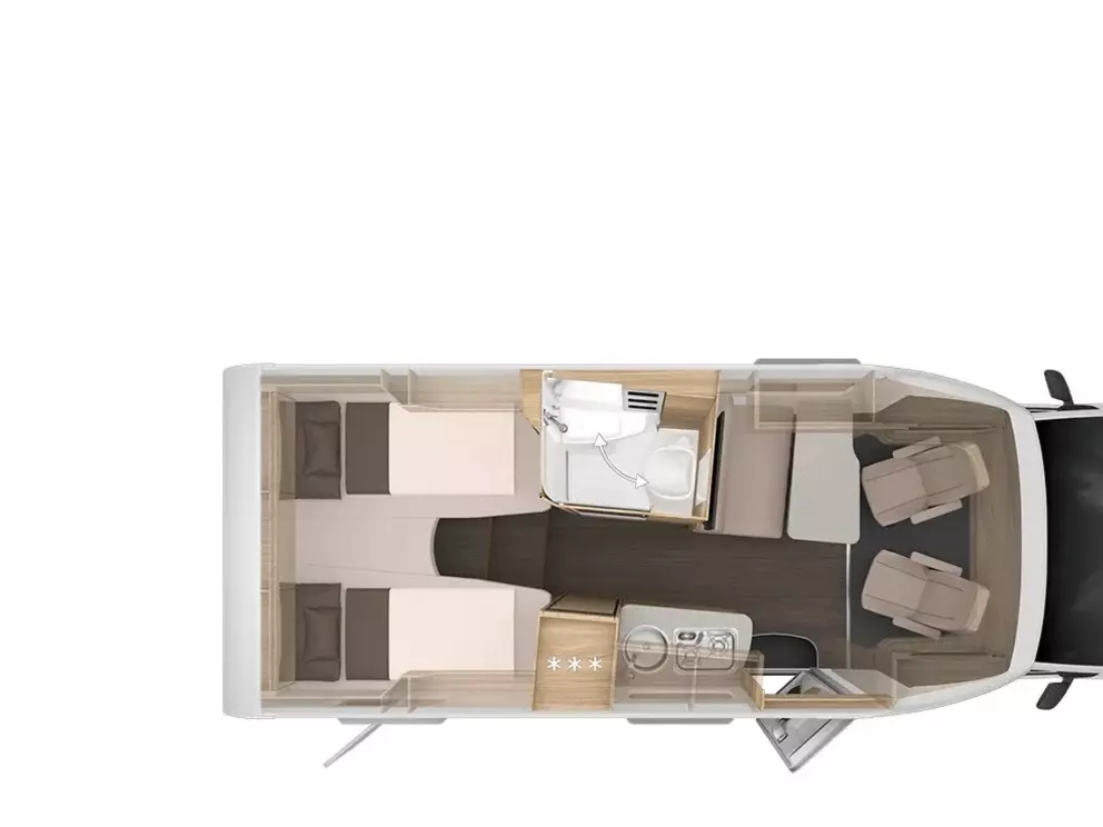 - Zusätzliche Staukästen im Heck links und rechts, über Einzelbetten