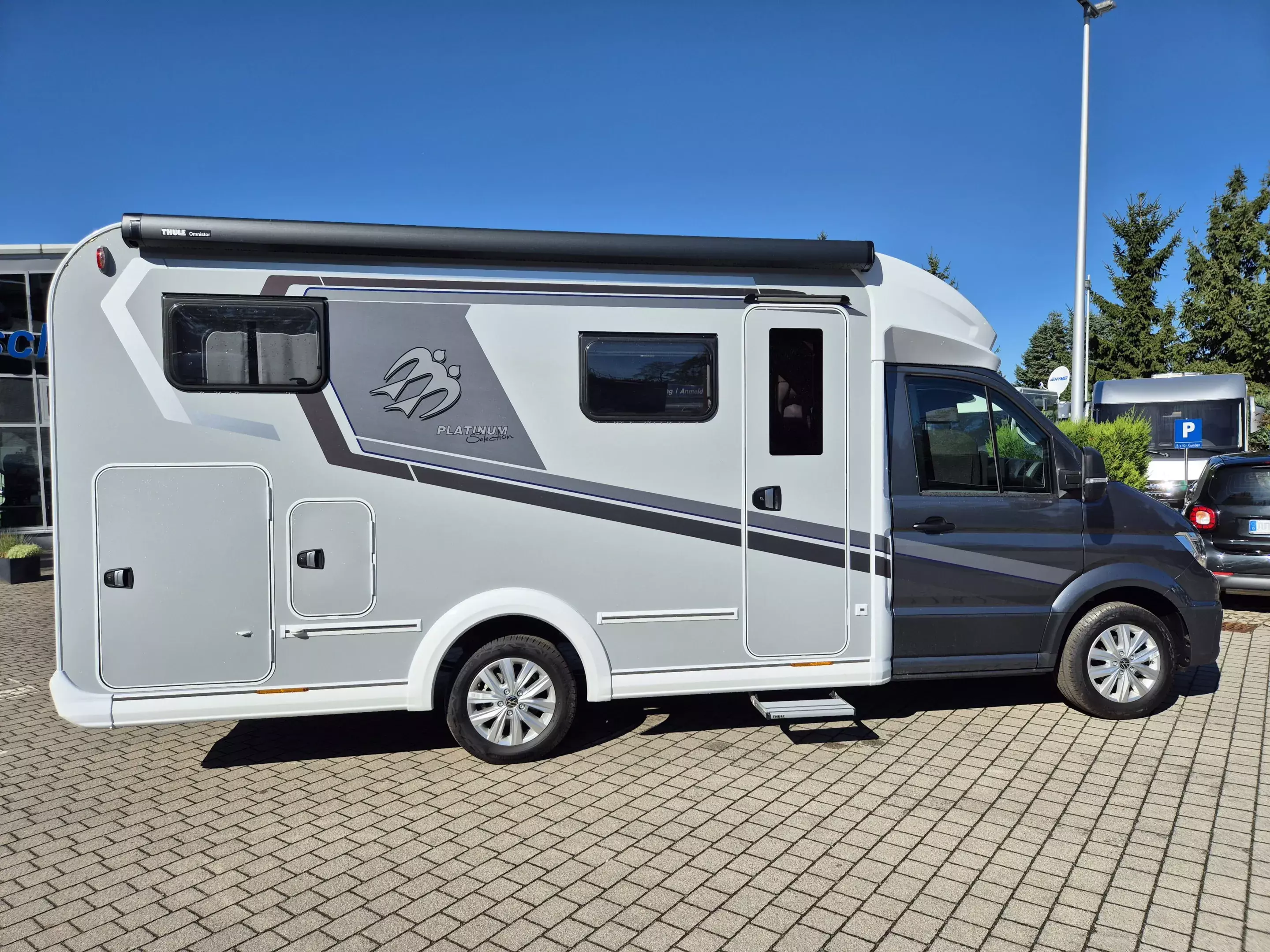 Der Knaus VAN TI Plus 650 MEG Platinum Selection ist die perfekte Kombination aus Volkswagen-Technik und Knaus-Komfort. Aufgebaut auf dem VW Crafter 2.0 TDI (140 PS, Euro 6E) mit 6-Gang-Schaltgetriebe bietet er souveräne Leistung, modernste Sicherheitsassistenten und herausragende Fahrdynamik – ideal für lange Reisen und anspruchsvolle Touren. Das Sondermodell Platinum Selection überzeugt mit exklusiver Optik, Top-Ausstattung und edlen Active Rock-Polstern. Durch die Auflastung auf 4.000 kg, die verstärkte Vorderachse und den TVT-Aufbau (Top-Value-Technology) bietet das Fahrzeug eine hervorragende Stabilität und hohe Zuladungsreserven. Mit dem Licht & Assistenz Paket (u. a. LED-Scheinwerfer, ACC mit Stop&Go, Spurhalteassistent, Travel Assist, Regensensor und Light Assist) ist maximale Sicherheit serienmäßig dabei. Die Oyster 60 Premium Twin SAT-Anlage, 22″ Smart-TV, Markise, Heckgarage, Leder-Multifunktionslenkrad (beheizbar) und zahlreiche Komfortdetails runden das Paket ab.
