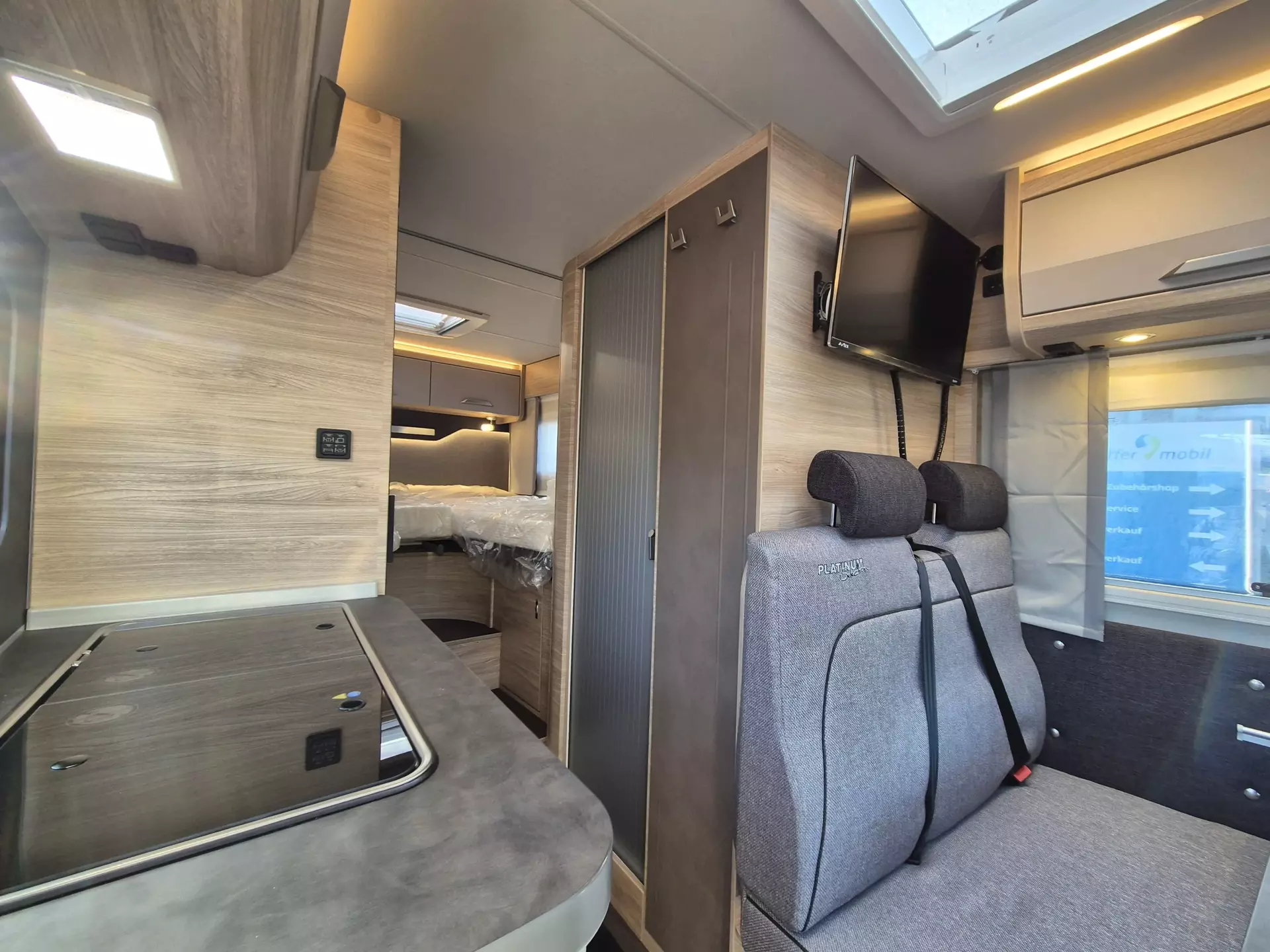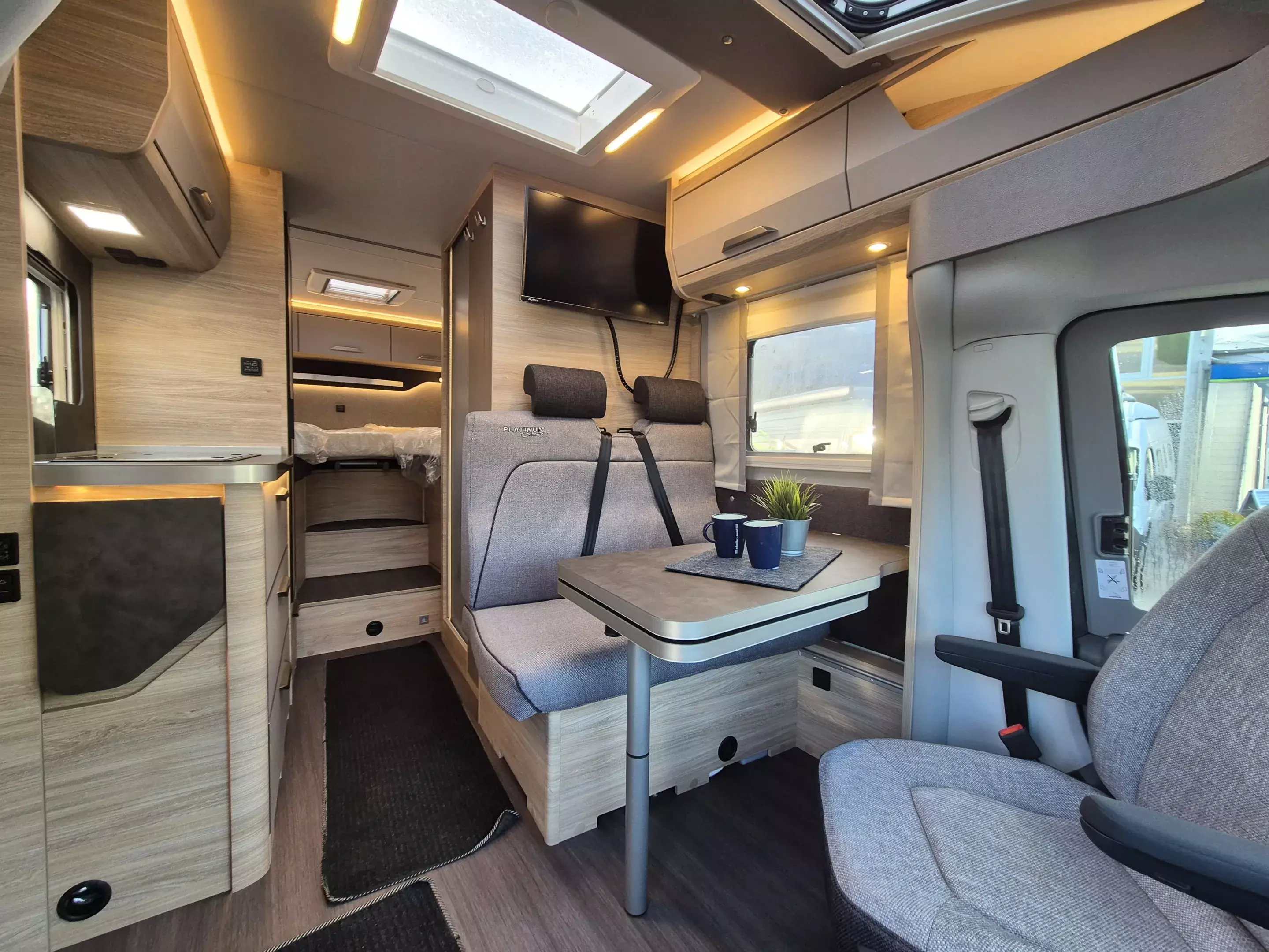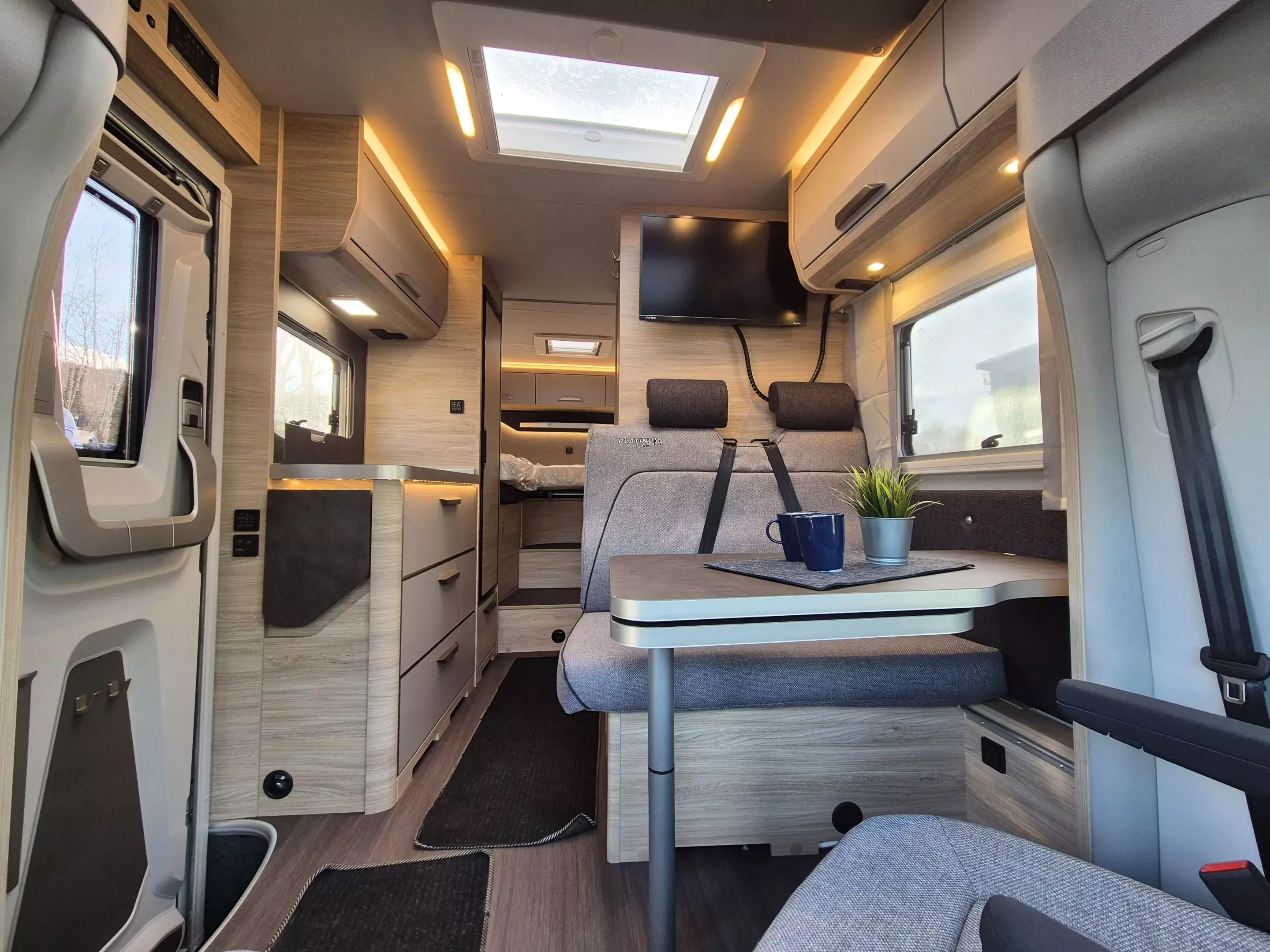 Mit umfangreicher Serien- und Sonderausstattung wie Premium-Aufbautür, Rahmenfenstern, TRUMA CP-Plus, Ambientebeleuchtung, 27" Smart-TV inklusive LTE/WLAN-Antenne sowie modernen USB- und 230-V Anschlüssen ist der VAN TI PLUS perfekt für komfortable Reisen ausgestattet. Ein hochwertiger, vollausgestatteter Teilintegrierter, der Fahrspaß und Wohnkomfort ideal verbindet.