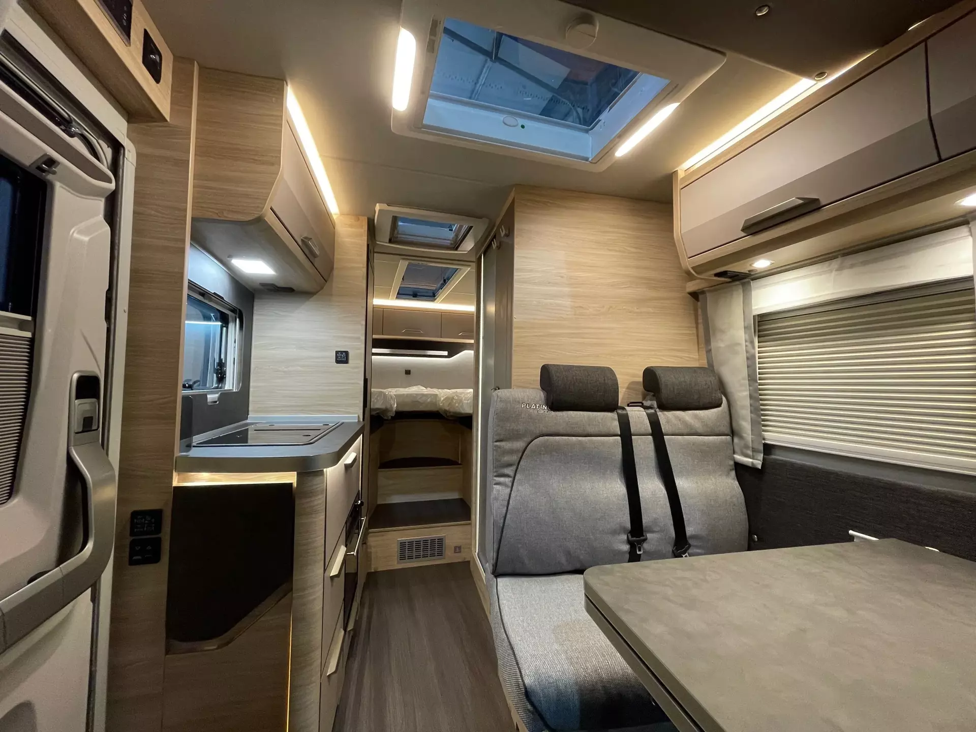 Ausstellfenster 70 x 40 cm (Heck links), Ausstellfenster Hutze mit Insektenschutz, Gaskasten für 2 x 11 kg Gasflaschen, Sonderbeklebung "PLATINUM SELECTION", Glattblech Seitenwände Campovolo Grau, Hochwertige Passform-Sitzbezüge, Chassis in Metallic Lack.: Indium Grau, 17" Leichtmetallfelgen "Lismore" silber, Frontstossfänger in Grau, Digitaler Radioempfang (DAB+), Navi Plus Infotainmentsys. "Discover Pro", 230 V SCHUKO-Steckdose zus. (Küche), USB-Steckdose (1) im Heck, Vorverkabelung für TV (Schlafbereich), Stimmungsvolle Ambientebeleuchtung, Rückfahrkamera inkl. Verkabelung, Vorverkabelung für TV (Wohnbereich), Markise 375 x 250 cm anthrazit, ALDE Warmwasserheizung inkl. Booster, Dachhaube (Hebe-Kipp) 70x50 cm klar (Bug), Betterweiterung zur Liegewiese, Polster: ACTIVE ROCK, Front- und Seitenscheibenverdunklung REM, Anzahl d. zug. Sitzplätze: 4