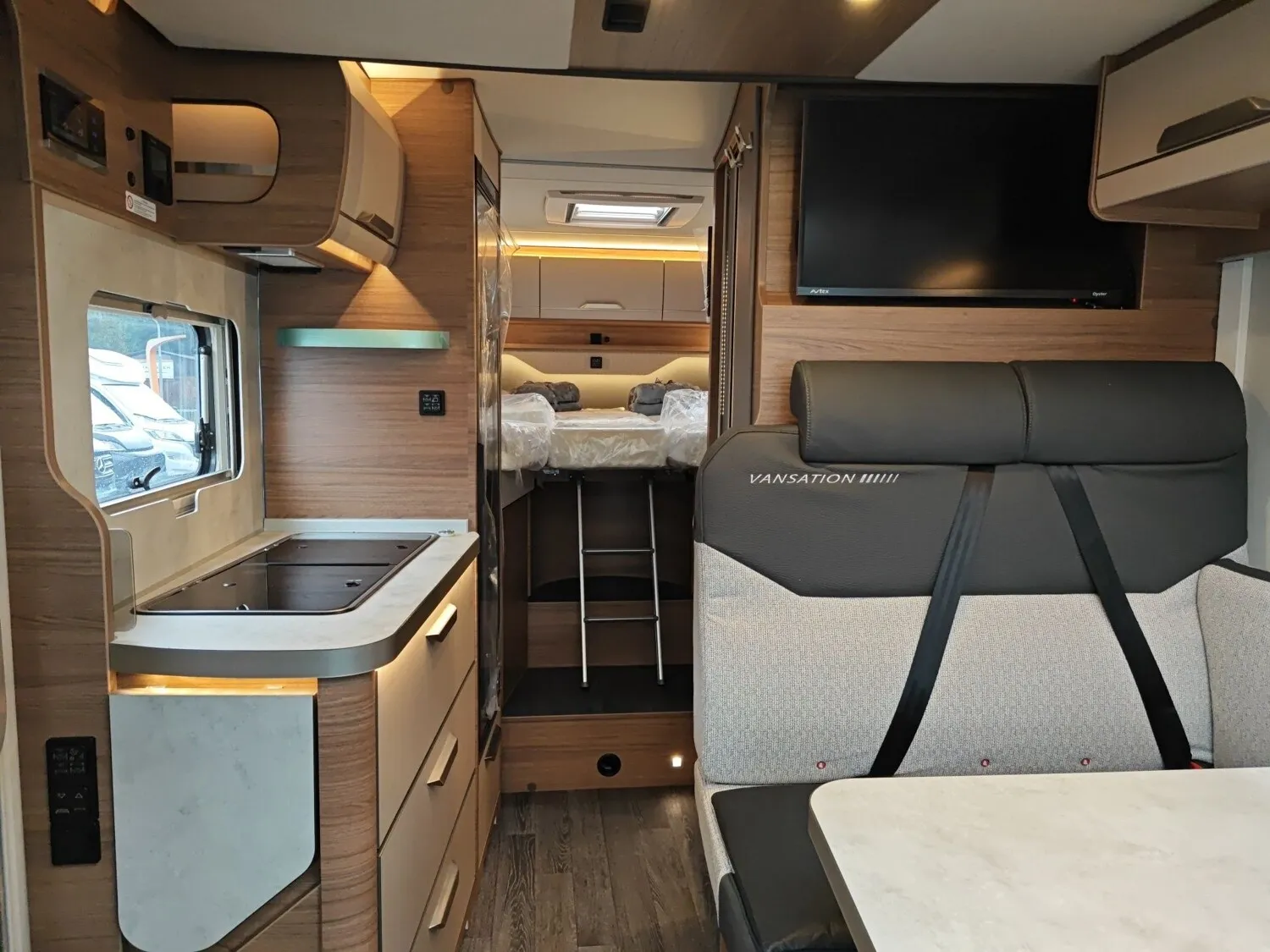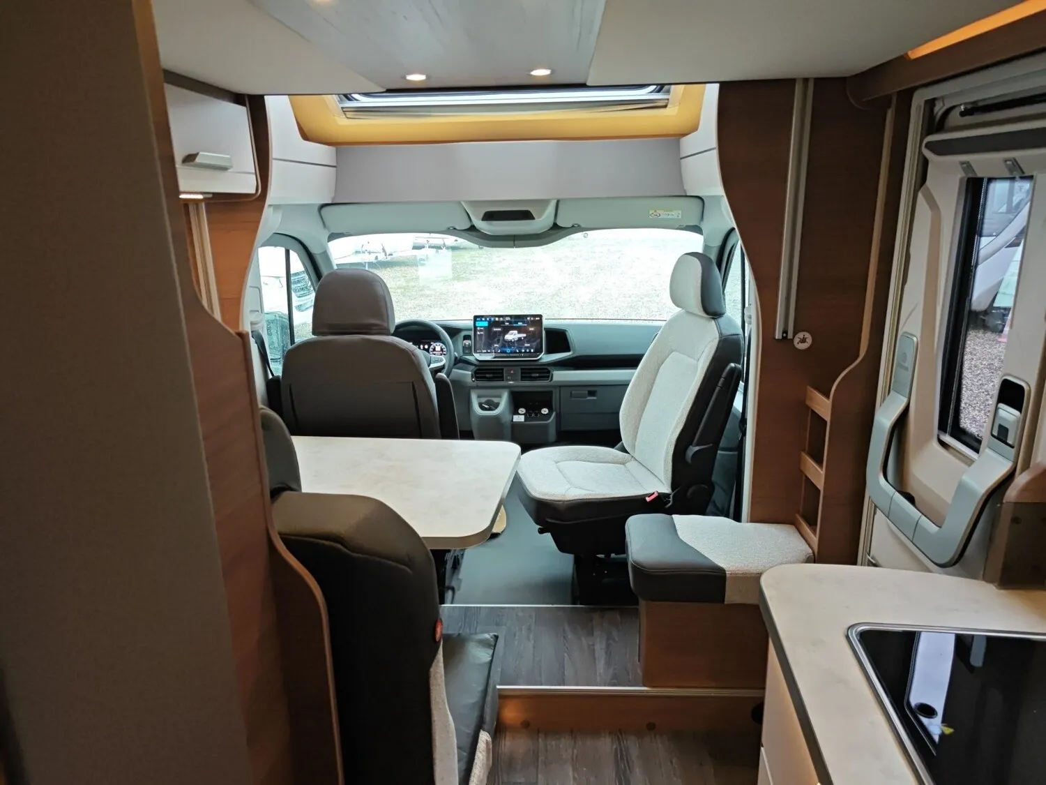 - Energy-Plus Paket II (Touch-Control-Panel mit intuitivem Bedienkonzept vernetzter Komponenten, inkl. Innen- und Außentemperaturfühler statt serienmäßigem Control-Panel, Zusätzliche Lithium (LiFePO4)-Bordbatterie)