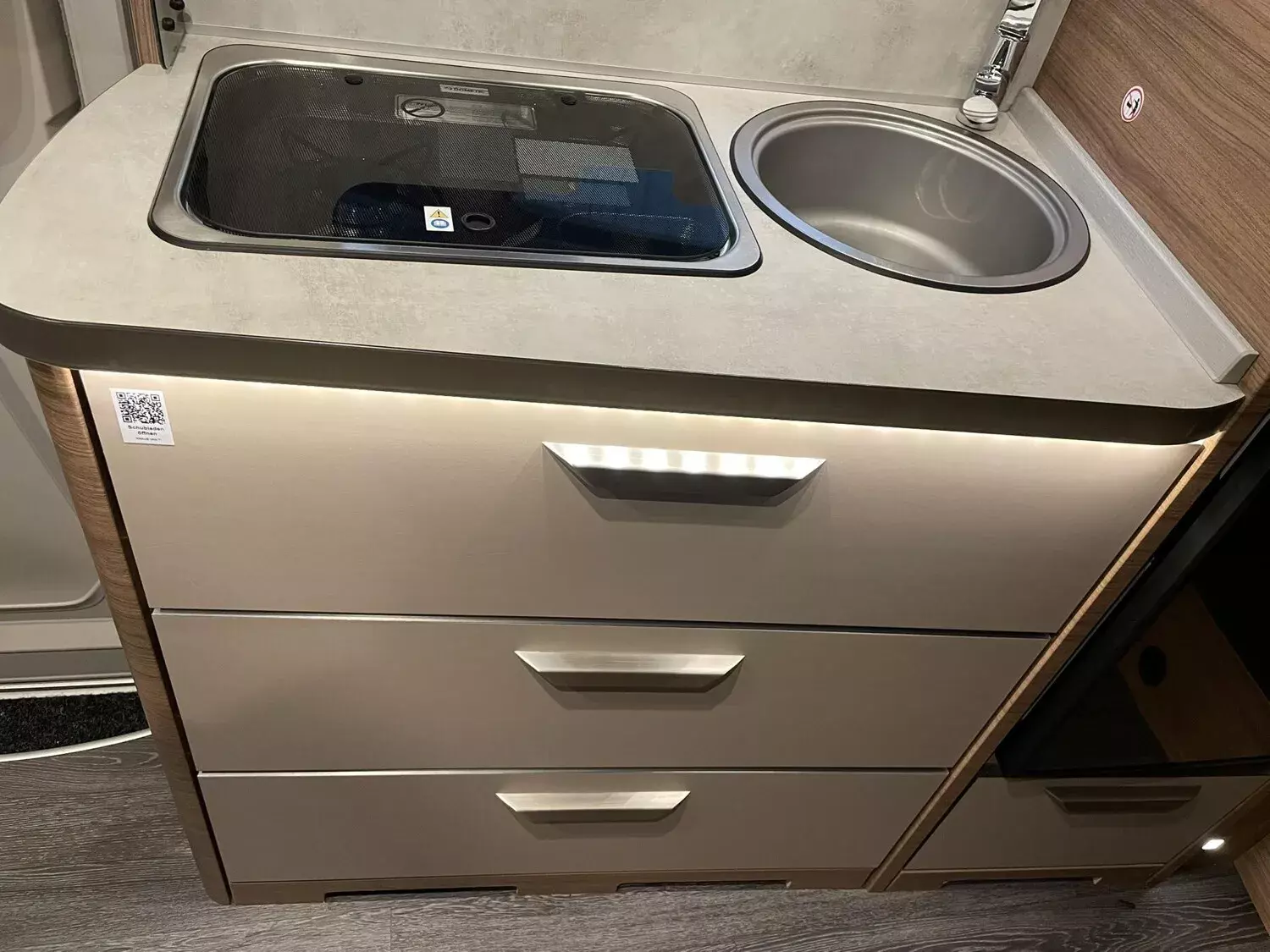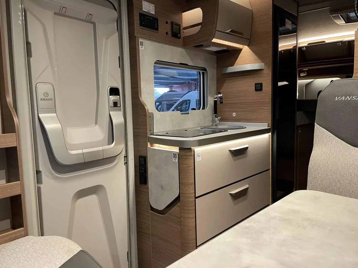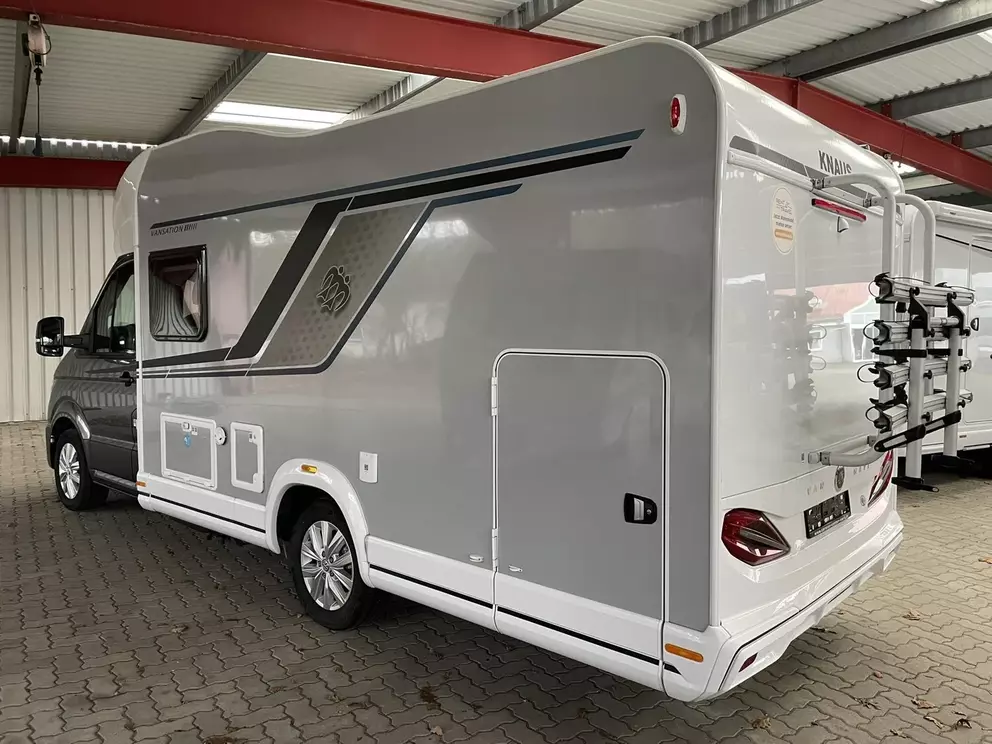 - Knaus Van Wave 640 MEG Vansation (2024) (Chassis in Metallic Lackierung: INDIUM GRAU, Frontstoßfänger in Grau mit lackierter Blende in Wagenfarbe, Klimaanlage ?,Climatic?,, manuell, Multifunktions-Lenkrad (3-Speichen), hochwertige Passform-Sitzbezüge für Fahrerhaussitze im KNAUS Wohnwelt-Design, Fahrerhaussitze drehbar, Front- und Seitenscheibenverdunklung REMIfront V-System, Tempomat mit Geschwindigkeitsbegrenzer, Müdigkeitserkennung, Außenspiegel elektrisch einstell- und beheizbar, Navigationssystem "Discover Media" inklusive Internet-Streaming mit 4 Lautsprechern, digitaler Radioempfang (DAB+), Rückfahrkamera, inkl. Verkabelung, Insektenschutztür, Garagentür 80 x 110 cm, links, Ausstellfenster Hutze, mit Insektenschutz und Verdunklung (Bug), Betterweiterung zur Liegewiese, COZY HOME-Paket, Farbvariante PEACH, TRUMA CP-Plus, digitales Heizungsbedienpanel, Isolierhaube Abwassertank, beheizbar, Wasserfiltersystem ?,bluuwater?,, USB-Steckdose (1 Stück), im Heck, stimmungsvolle Ambientebeleuchtung, 230 V SCHUKO-Steckdose zusätzlich, (Küche, 1 Stück), 27" SMART TV-Gerät mit HD-Tuner, Vorverkabelung für TV (Schlafbereich), TV-Halter, externe LTE / W-LAN Antenne, TÜV und Zulassungspapier, Seifen- und Spülmittelspender, 17 Zoll-Leichtmetallfelgen Lismore mit Bereifung, in Silber (Original VW), Glattblech Seitenwände, CAMPOVOLO GRAU, Sonderbeklebung VANSATION, KNAUS Emblem im Heck, schwarz/chrom, Polster: WINTER WHITE VANSATION, Markise 405 x 250 cm, anthrazit)