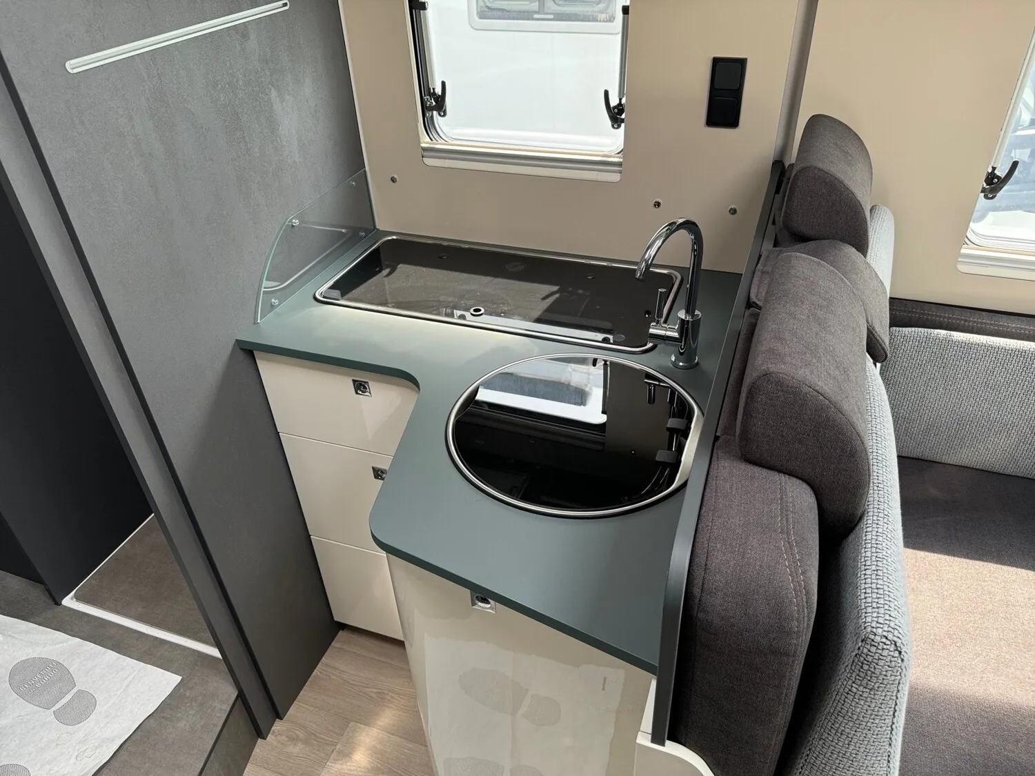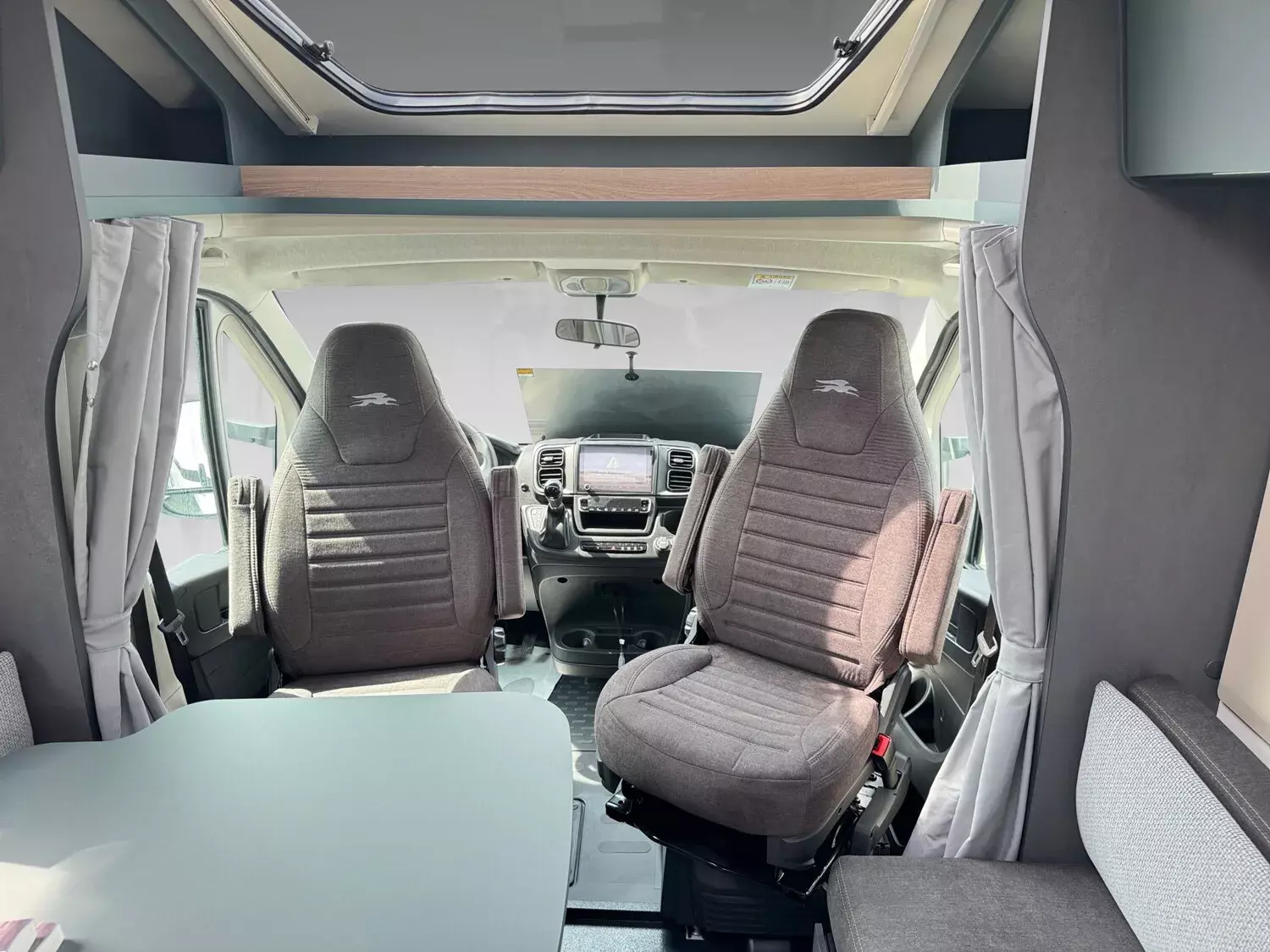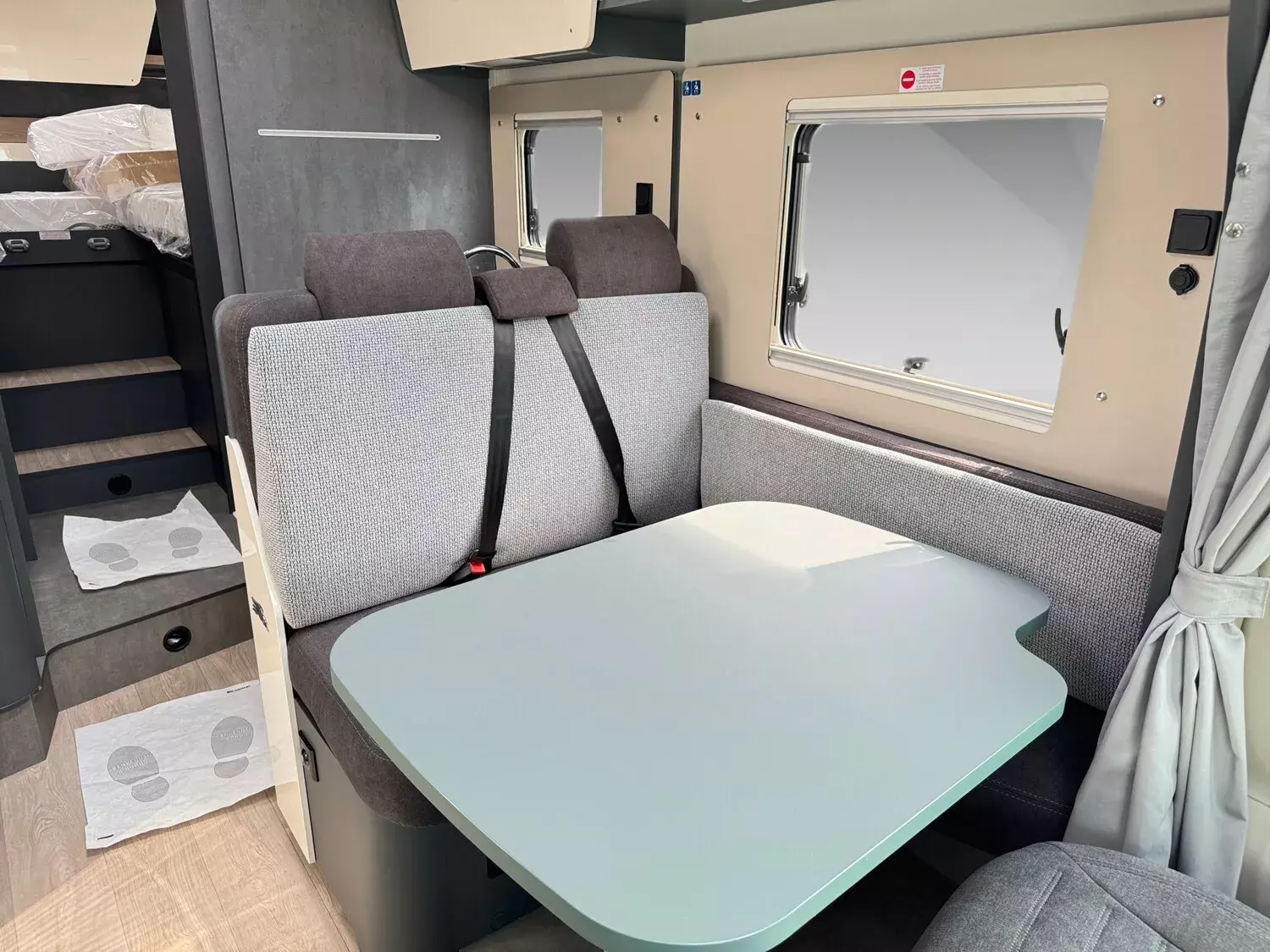 - Komfort Paket Kosmo L (Duscheinlage aus Holz, Fahrerhausteppich, Dunstabzugshaube, Isolierter Abwassertank, Beheizter Abwassertank, T-Haube mit Skyview zum Öffnen, Schlafzimmerwände in Eco-Leder verkleidet, Ausziehkörbe und -schränke in der Küche, Premium XL-Aufbautür, mit Fernbedienung, Zentralverriegelung, Fenster, Verdunkelung, Ablagefach und Gasdruckstoßdämpfer, Vorbereitung Rückfahrkamera, Auf den Wohnraum abgestimmte Sitzbezüge)