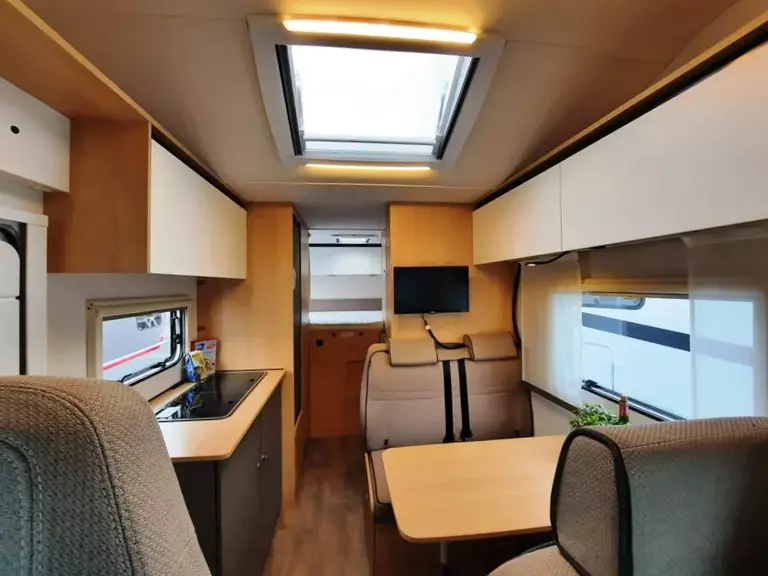 Radiovorbereitung mit Lautsprechern, DAB Dachantenne, Radioantenne im Außenspiegel, Sitzkastenverkleidung, Captain Chair, Fahrerhaussitze drehbar, 16“ Stahlfelgen, Außenfarbe icy White, Lackierter Stoßfänger, Pannenset Fix and Go Kit, Cup-holder, Tempomat, Dachhaube im Alkoven, Klimaanlage Fahrerhaus manuell, Fahrer-/Beifahrerairbag, Truma Heizung Combi 6D (Diesel), Sitzgruppenverlängerung inkl. Tischverlängerung, Bettenumbau Sitzgruppe, 2 Beckengurte entgegen Fahrtrichtung, Vorbereitung für 2. Aufbaubatterie, Vorbereitung Rückfahrkamera inkl. Rückfahrkamera, Dachhaube Sitzgruppe, Vorbereitung SAT und Klima, 230V Steckdose in Heckgarage, Garagen Nutzlast 250 kg, GFK Seitenwände, Boden, Dach und Heckwand inkl. 12 Jahren Dichtigkeitsgarantie, Polsterstoff aus recyceltem PET und vielem mehr*