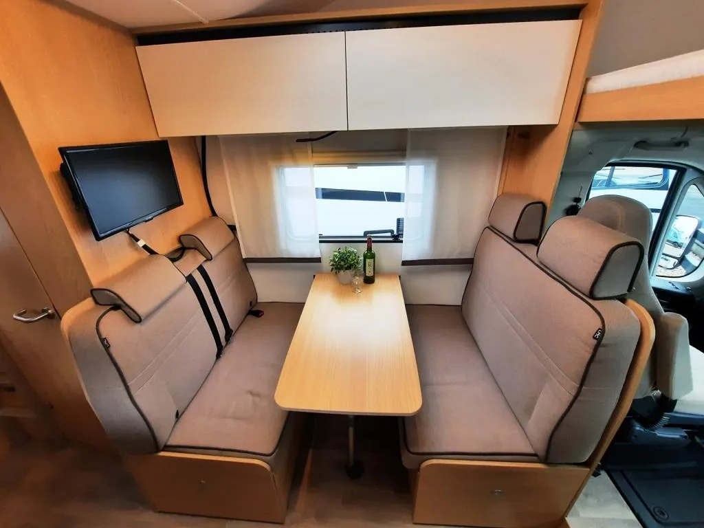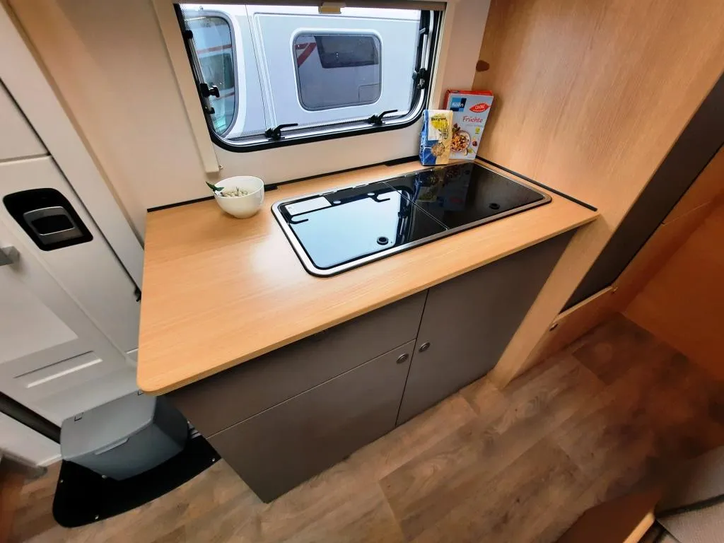 Radiovorbereitung mit Lautsprechern, DAB Dachantenne, Radioantenne im Außenspiegel, Sitzkastenverkleidung, Captain Chair, Fahrerhaussitze drehbar, 16“ Stahlfelgen, Außenfarbe icy White, Lackierter Stoßfänger, Pannenset Fix and Go Kit, Cup-holder, Tempomat, Dachhaube im Alkoven, Klimaanlage Fahrerhaus manuell, Fahrer-/Beifahrerairbag, Truma Heizung Combi 6D (Diesel), Sitzgruppenverlängerung inkl. Tischverlängerung, Bettenumbau Sitzgruppe, 2 Beckengurte entgegen Fahrtrichtung, Vorbereitung für 2. Aufbaubatterie, Vorbereitung Rückfahrkamera inkl. Rückfahrkamera, Dachhaube Sitzgruppe, Vorbereitung SAT und Klima, 230V Steckdose in Heckgarage, Garagen Nutzlast 250 kg, GFK Seitenwände, Boden, Dach und Heckwand inkl. 12 Jahren Dichtigkeitsgarantie, Polsterstoff aus recyceltem PET und vielem mehr*