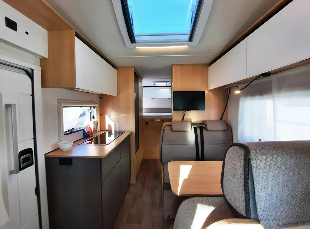 (Multifunktionslenkrad mit Bedienelement, Lenkrad und Schaltknauf in Lederausführung, Fliegenschutztür, Dachhaube 70x50, Markise 4,5 m, 4er Fahrradträger, Isofix, Abwassertank isoliert, Alkovenfenster Beifahrerseite, 2. Garagentür)