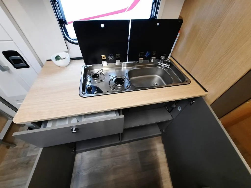 (Multifunktionslenkrad mit Bedienelement, Lenkrad und Schaltknauf in Lederausführung, Fliegenschutztür, Dachhaube 70x50, Markise 4,5 m, 4er Fahrradträger, Isofix, Abwassertank isoliert, Alkovenfenster Beifahrerseite, 2. Garagentür)