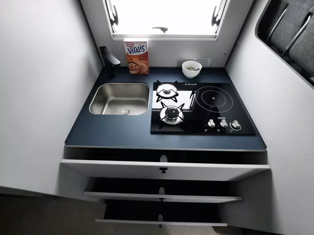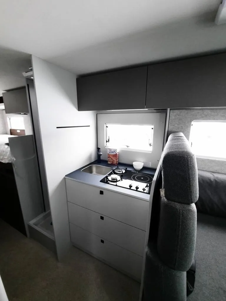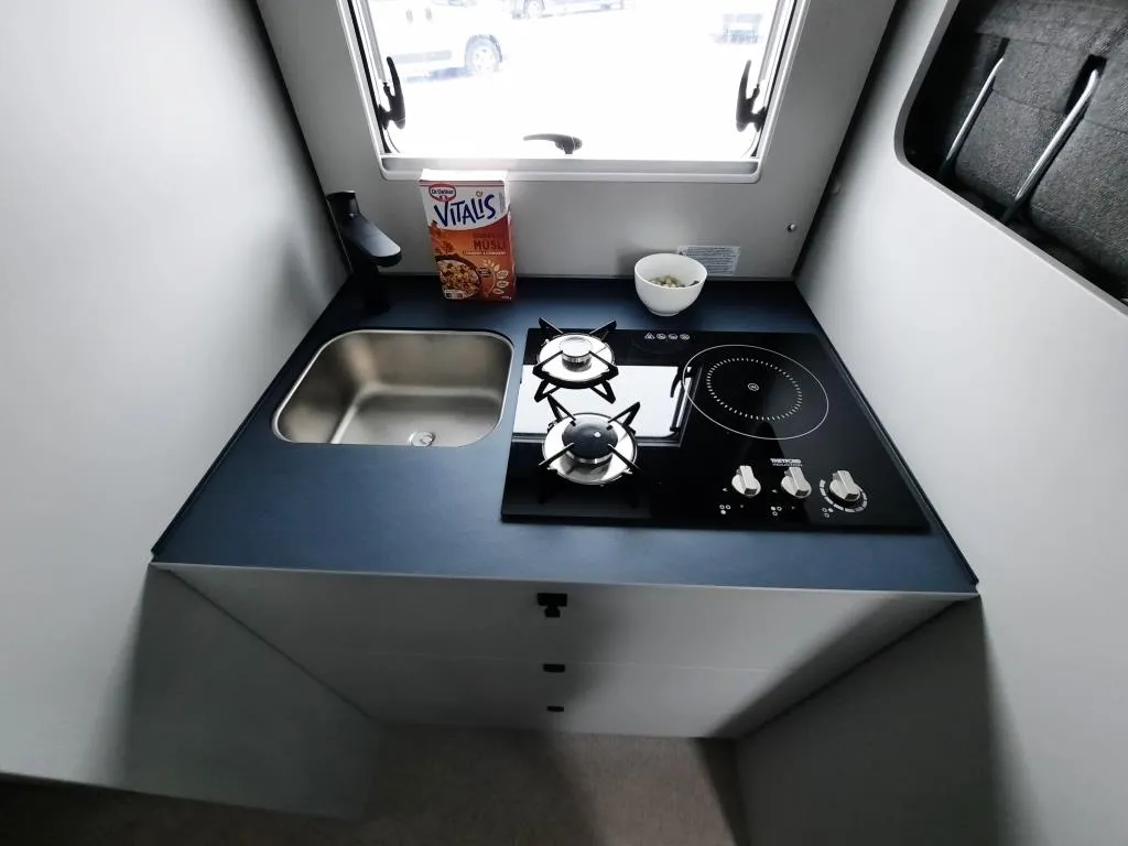 Fiat Ducato, Tempomat, Multifunktionslenkrad mit Bedienelement, Außenspiegel elektrisch verstell- und beheizbar, Rückfahrkamera inkl. Kabelverlegung ohne Monitor, Scheinwerfer mit schwarzem Rahmen, Fahrer- & Beifahrerairbag, Klimaanlage manuell (Fahrerhaus), ABS + ESP, ASR + ESP inkl. Berganfahrassistent, Beifahrersitz drehbar, Kombi-Hochfeld mit 1 Induktion und 2 Gas Kochfeldern, Kompressorkühlschrank 132 l mit Eisfach, Wassertank 100 l isoliert und beheizt, Abwassertank 98 l, Diesel Heizung 6 kW Umluft mit 10 l Boiler und digitalen Bedienteil, Gasflaschenkasten (für 1x 11 kg), 12 Jahre Aufbau Dichtheitsgarantie, GFK-Bug, -Dach, -Heck u.v.m.*