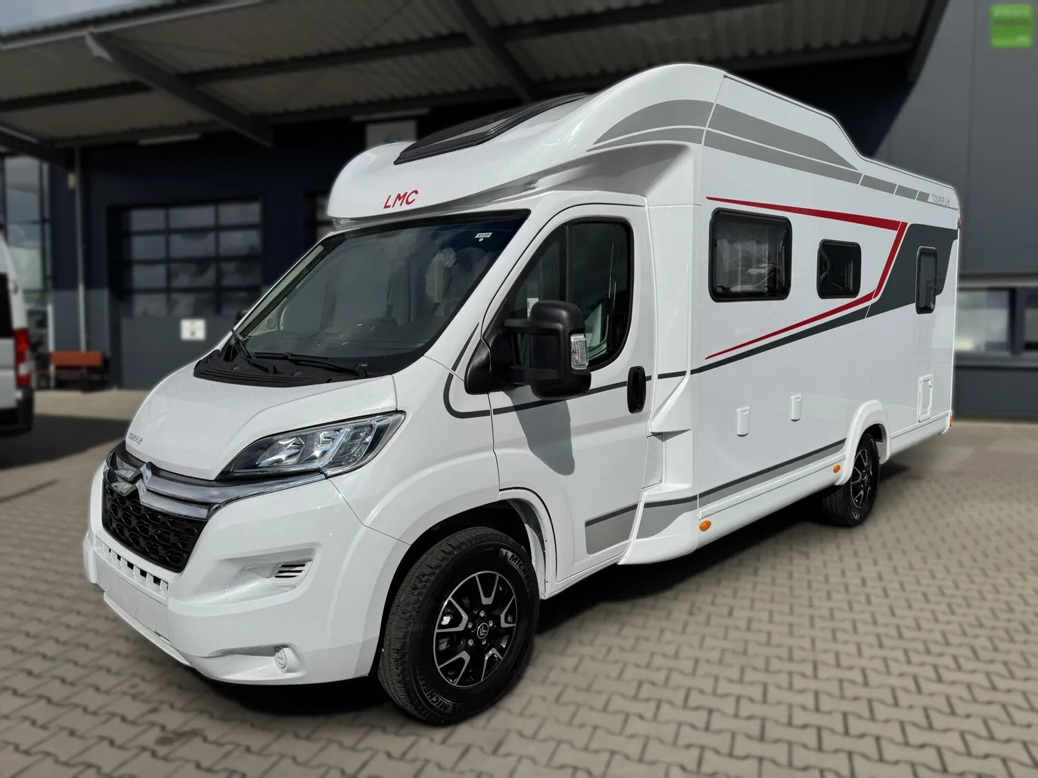 Wir bieten Ihnen einen LMC Tourer Lift H 630 auf einem Citroen-Chassis mit einem französischen Bett und Hubbett an.