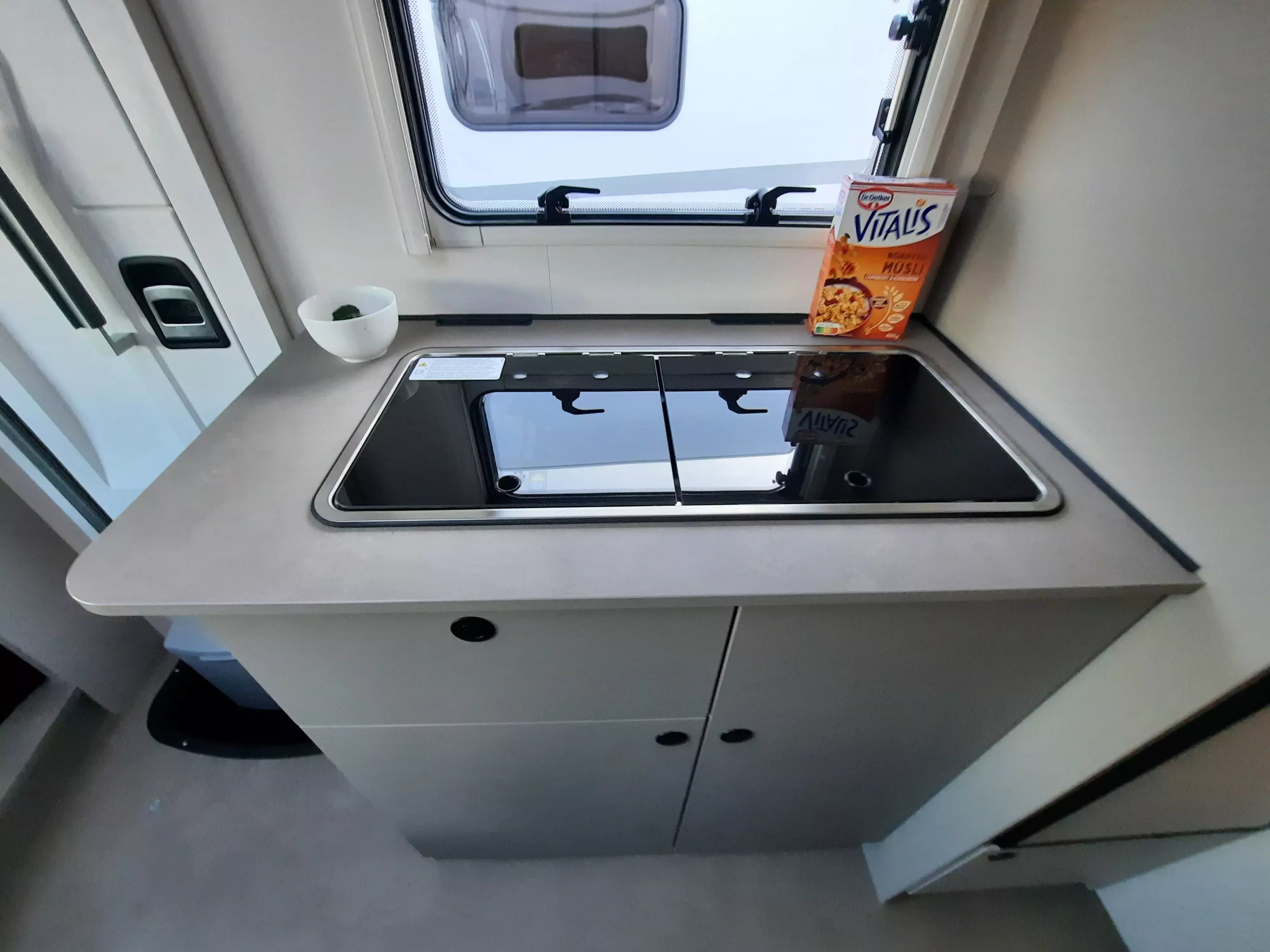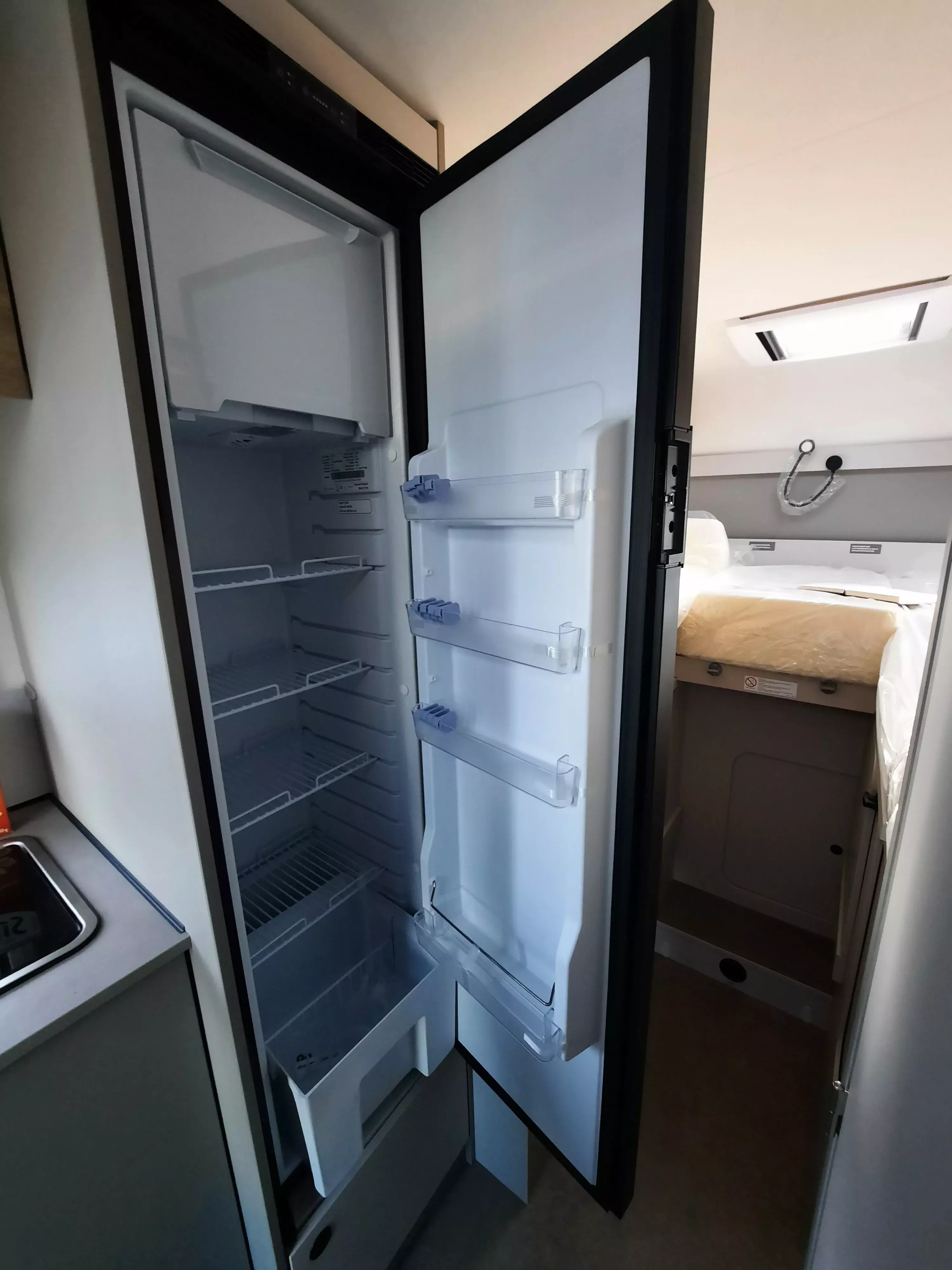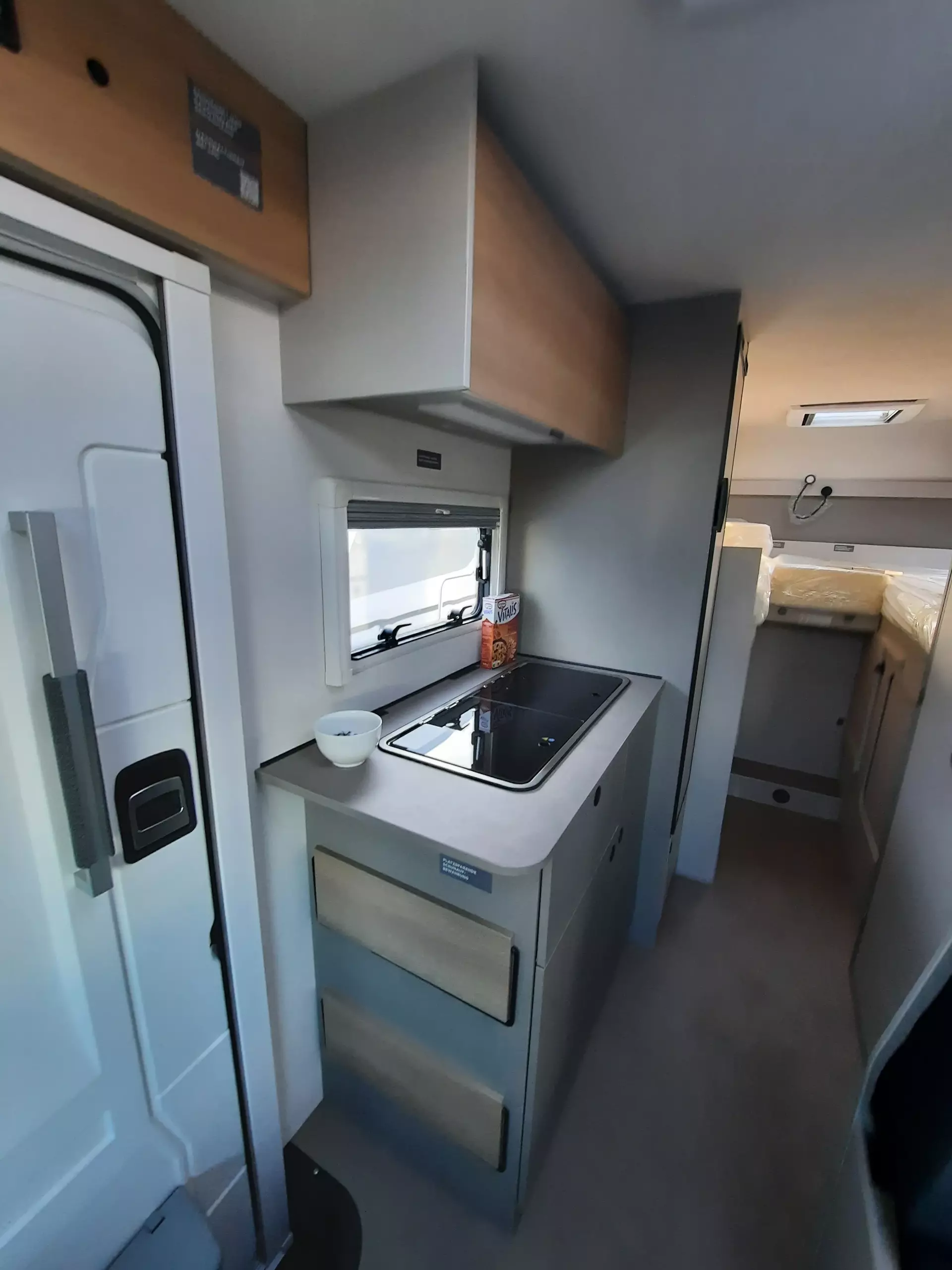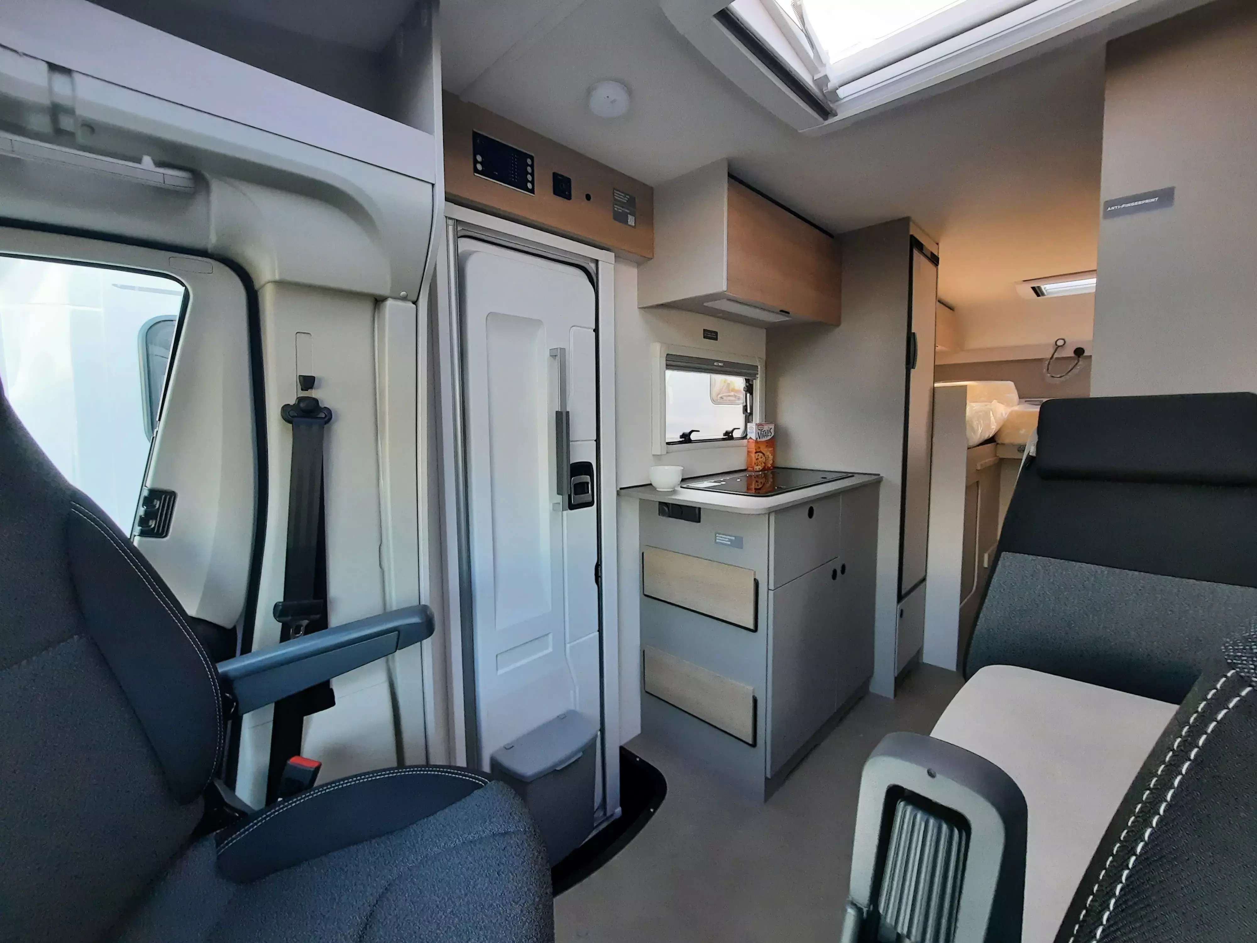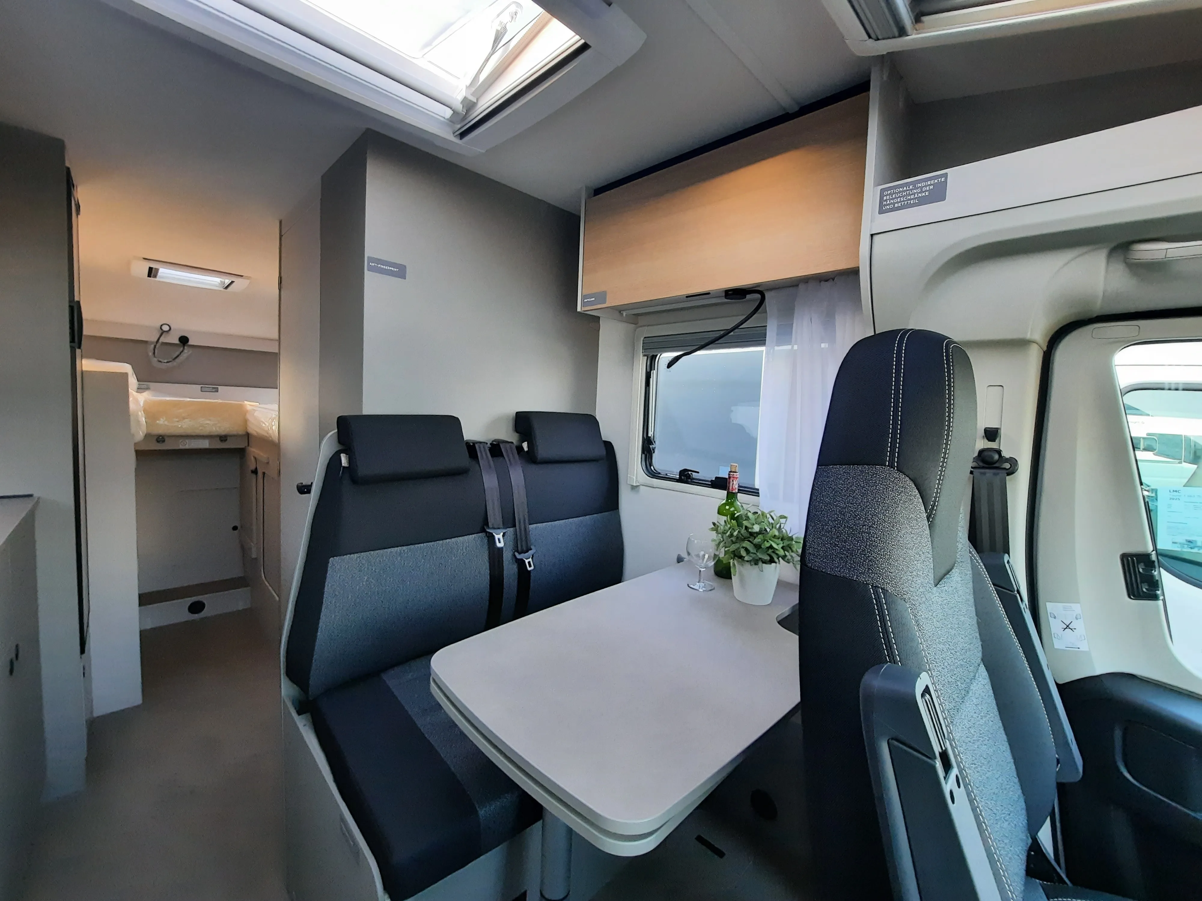 - Tracer Paket (Insektenschutztür, Panoramafenster inkl. Verdunklungsrollo und Insektenschutz über Fahrerhaus, Isofix für 2 Plätze, Markise matt Schwarz inkl. LED-Streifen, Fahrerhausverdunklung (Plissees), Pinnwand mit Spanngummis, 2 Relax-Kissen 600x400 für das Bett)