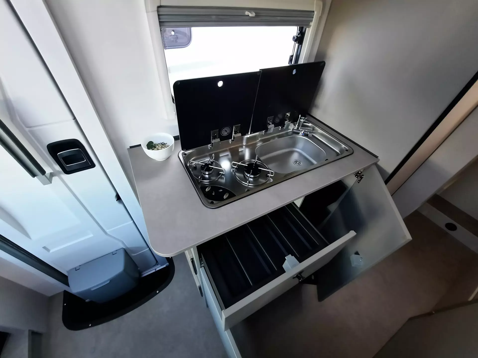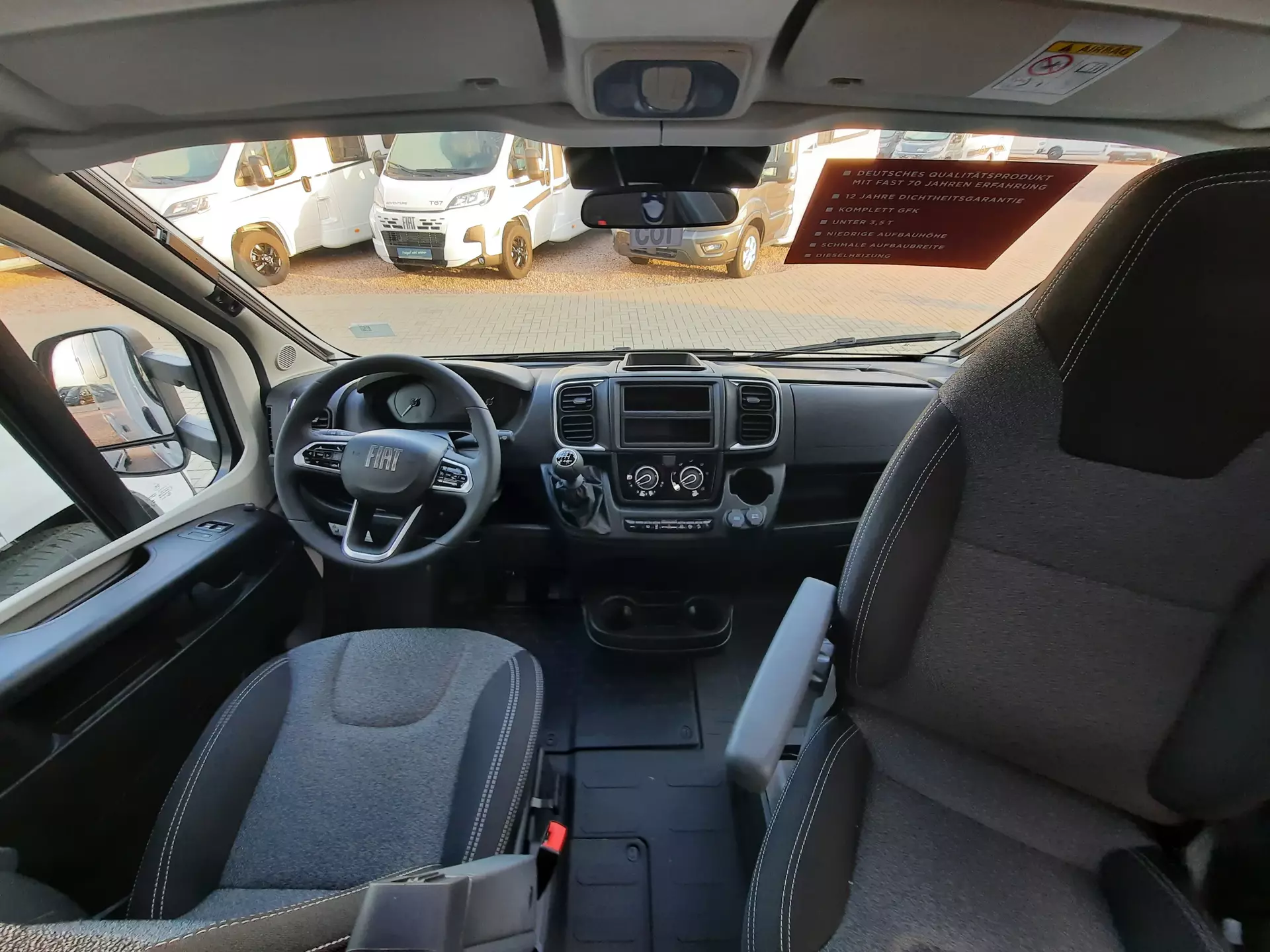 Fiat Ducato, Chassisfarbe Weiß, Tempomat, Multifunktionslenkrad mit Bedienelement, Außenspiegel elektrisch verstell- und beheizbar, Rückfahrkamera inkl. Kabelverlegung ohne Monitor, Scheinwerfer mit schwarzem Rahmen, Fahrer- & Beifahrerairbag, Klimaanlage manuell (Fahrerhaus), ABS + ESP, Fahrer- & ASR + ESP inkl. Berganfahrassistent, Beifahrersitz drehbar, Vorzeltleuchte über Aufbautür, 2-Flammen Gaskocher, Spüle und geteilter Glasabdeckung, Kompressorkühlschrank 132 l mit Eisfach, Wassertank 100 l mit Einfüllstutzen, Abwassertank 90 l, Diesel Heizung 4 kW Umluft mit 10 l Boiler und manuellen Bedienteil, Gasflaschenkasten (für 1x 5 kg), 12 Jahre Aufbau Dichtheitsgarantie, GFK-Bug, -Dach, -Heck, -Seitenwände u.v.m.*