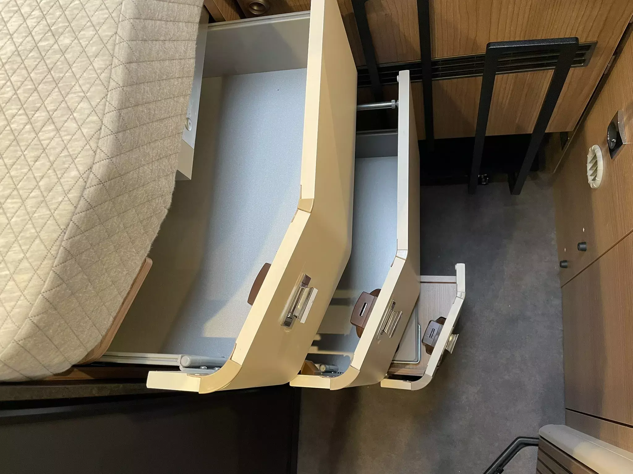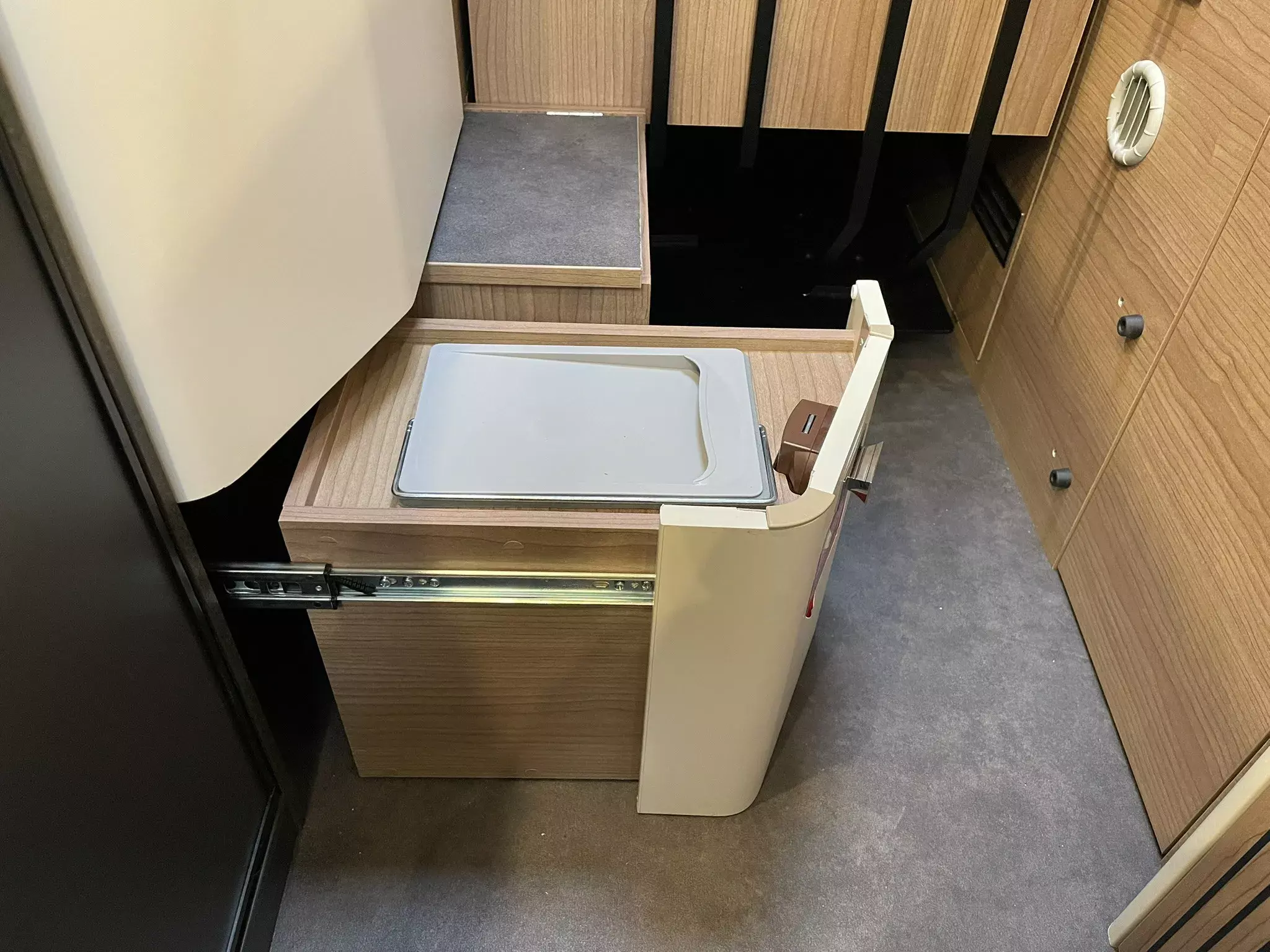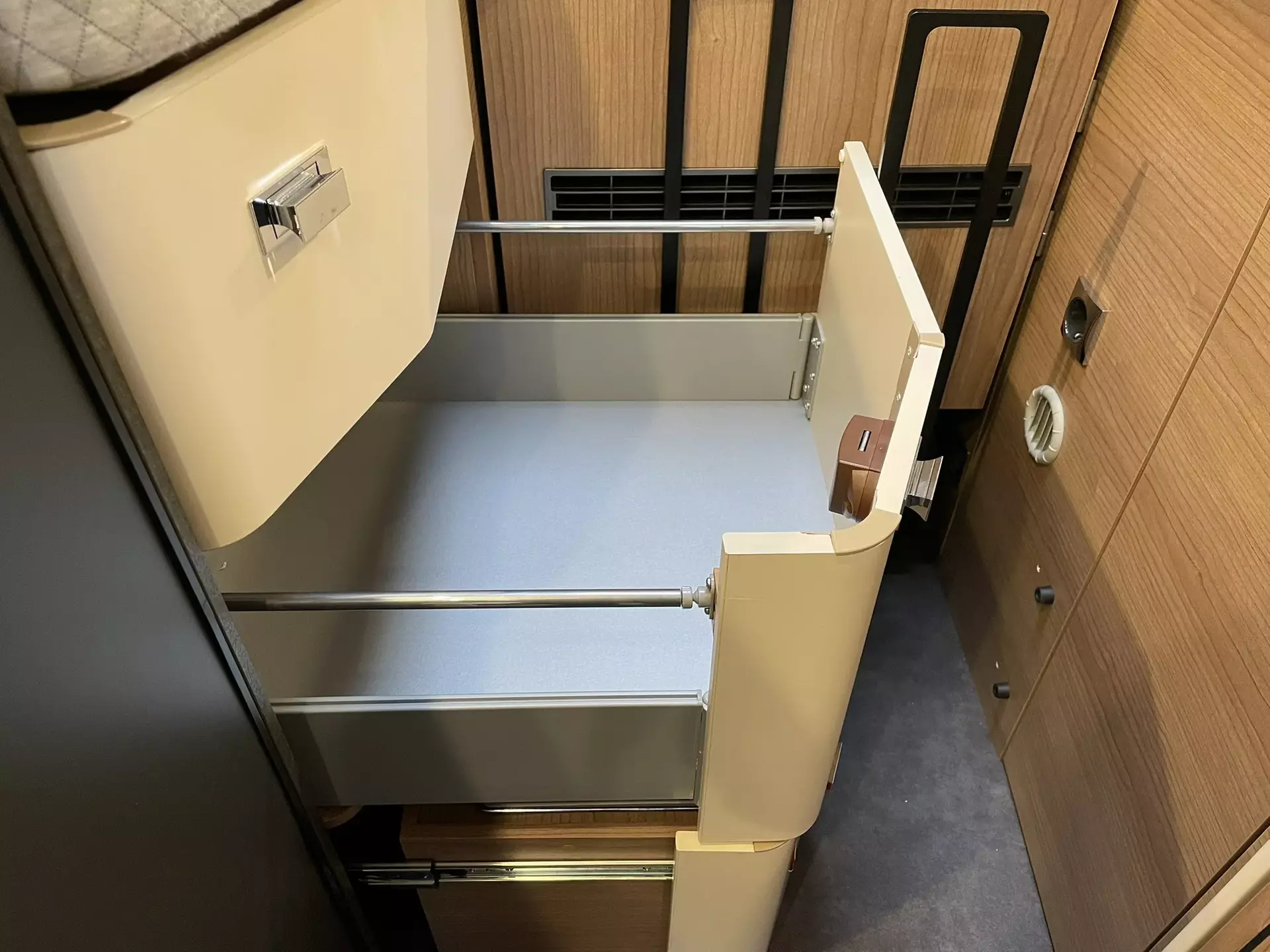 Auszugsschienen, zum Teil in Bodenplatte versenkt