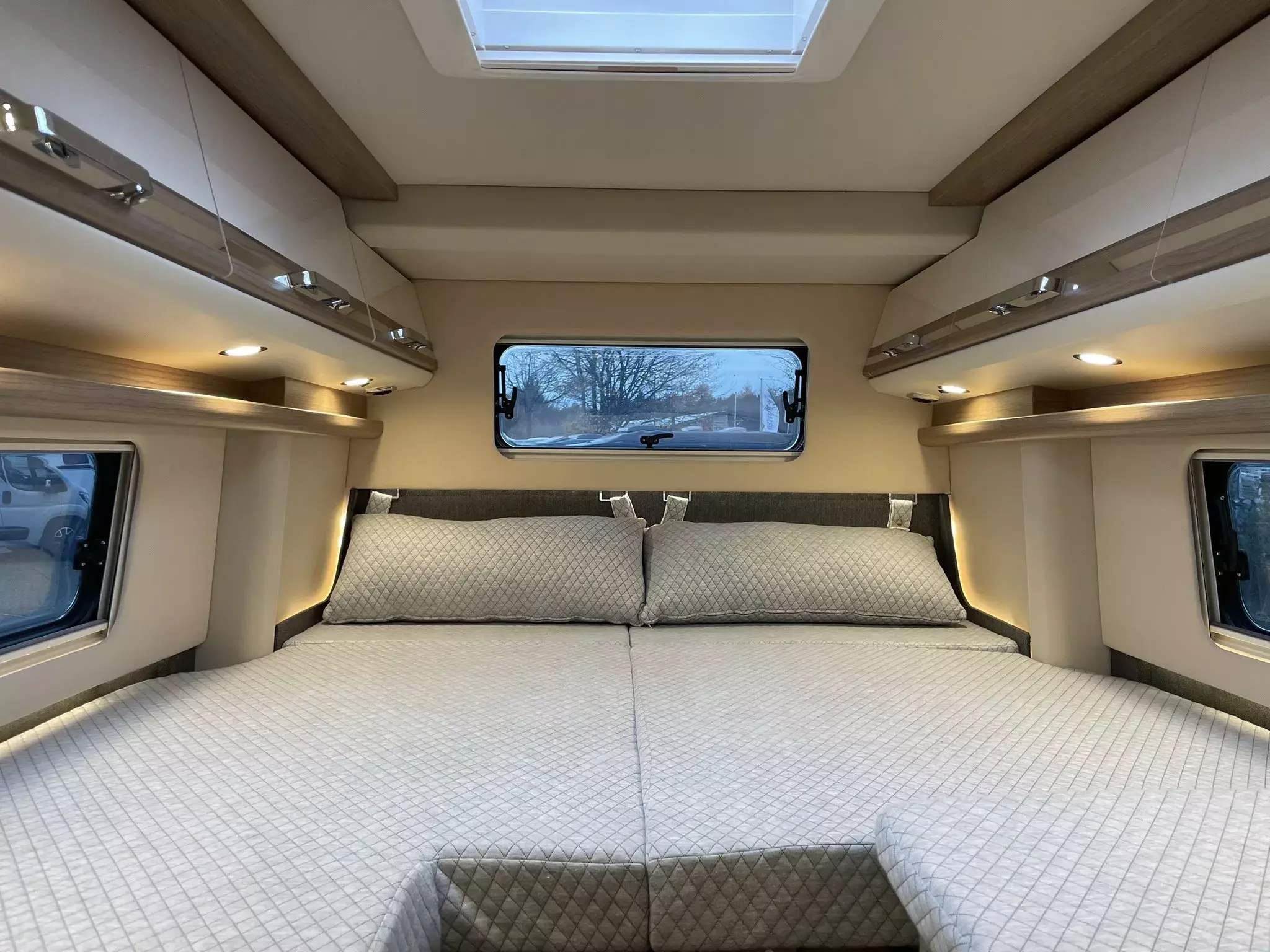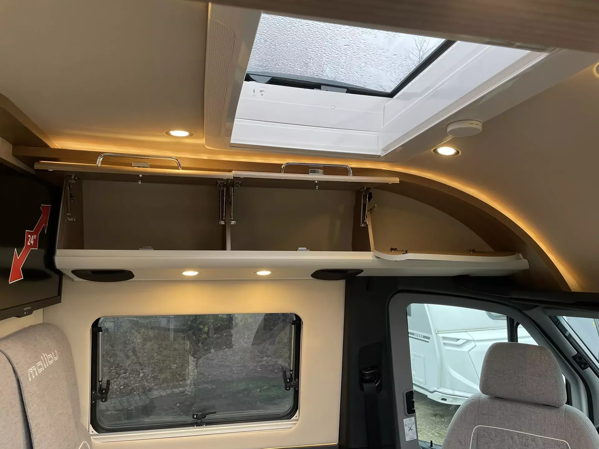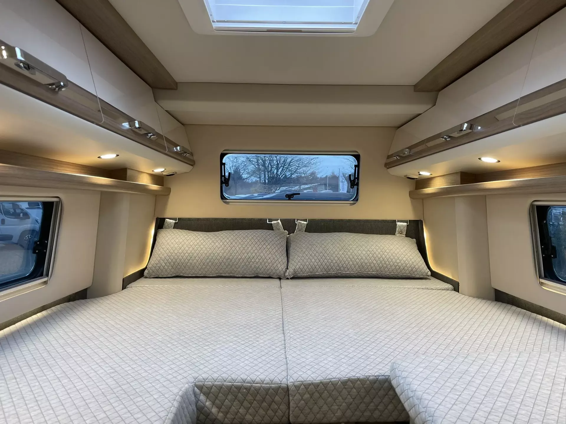 Paket Aufbau bestehend aus:•Truma CP Plus digitales Bedienpanel•Fliegenschutzgitter hinter Schiebetür•Dachinnenverkleidung mit Mikrofaser-Klimabelag•Frisch- und Abwassertank isoliert, Frischwassertank zusätzlich beheizt•Upgrade Küchencenter (Arbeitsflächenerweiterung, Spülbeckenabdeckung geteilt mit Schneidebrett, Fronten in creme offen)•Deckenbaldachin Wohnraum mit indirekter LED-Ambientebeleuchtung•Qualitäts-Kaltschaummatratze im Heckbett