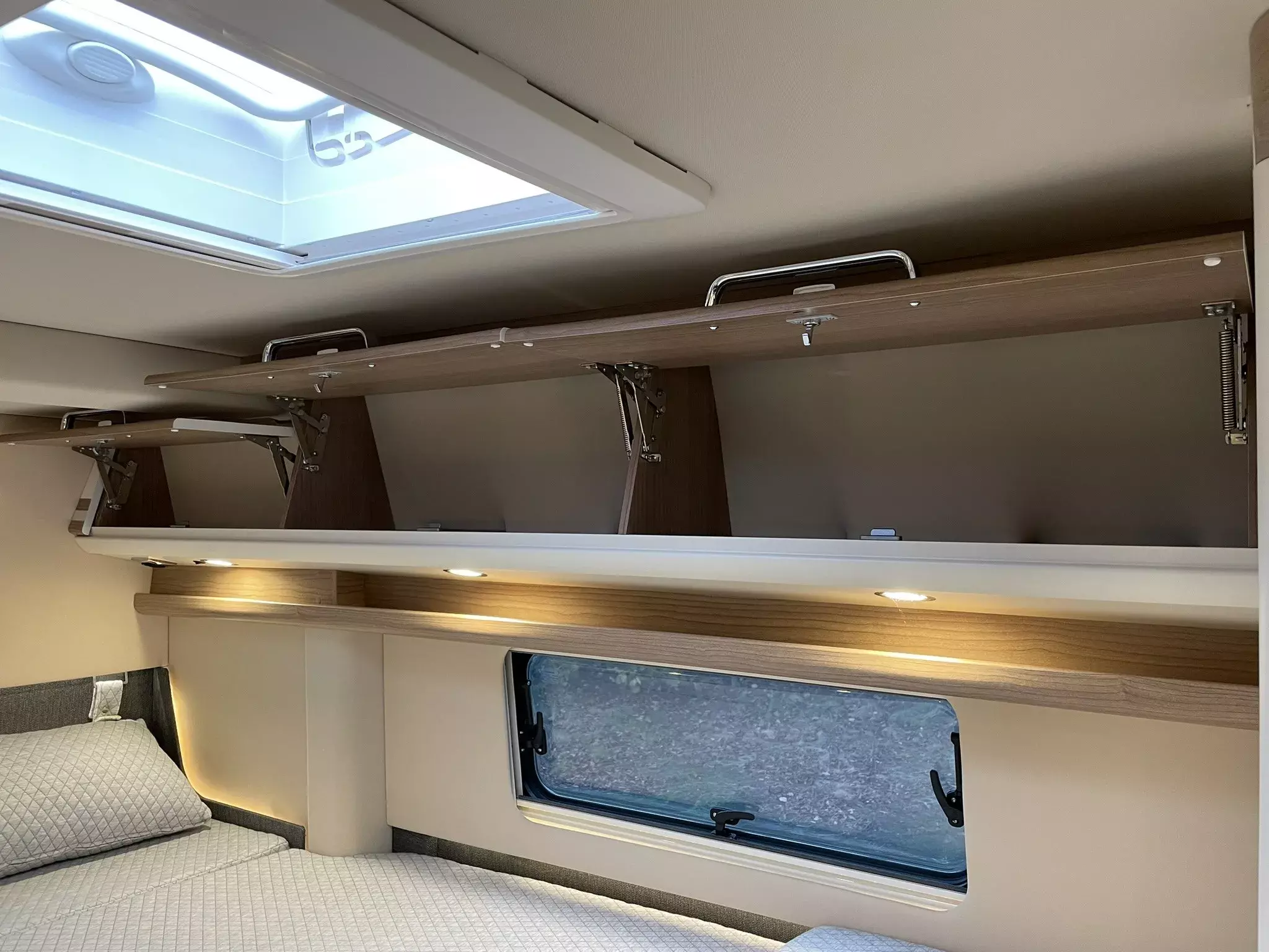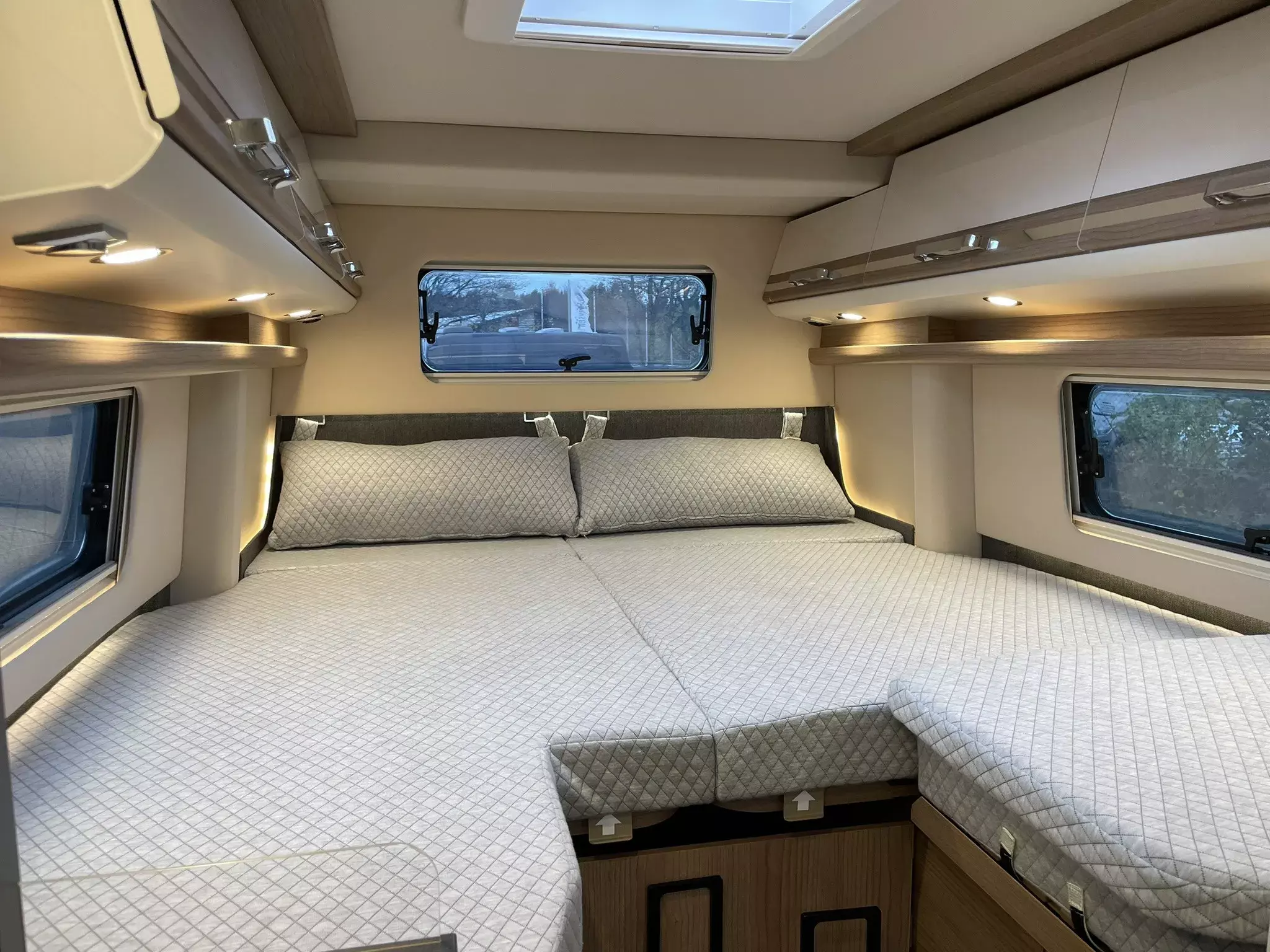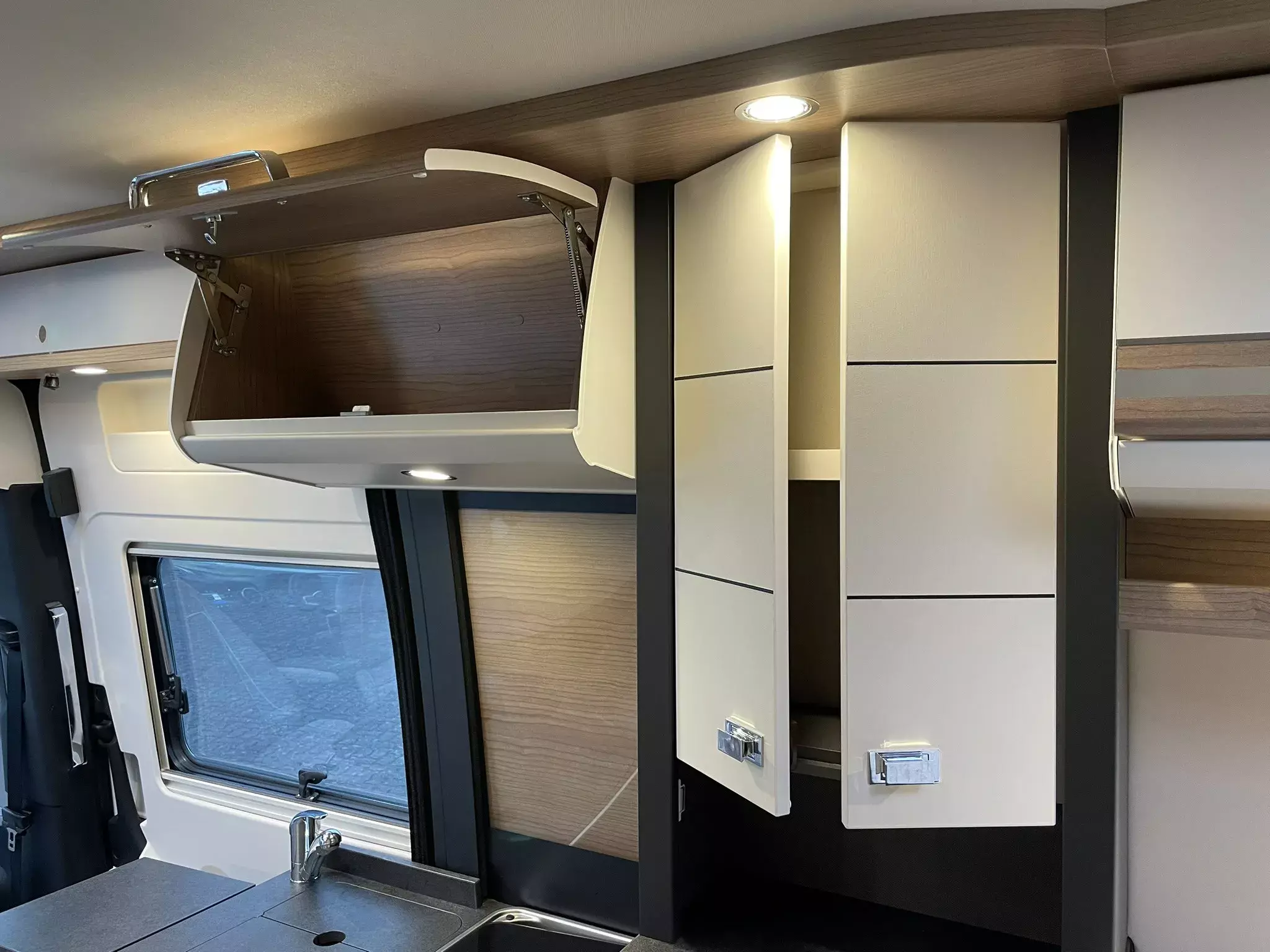 Paket Aufbau bestehend aus:•Truma CP Plus digitales Bedienpanel•Fliegenschutzgitter hinter Schiebetür•Dachinnenverkleidung mit Mikrofaser-Klimabelag•Frisch- und Abwassertank isoliert, Frischwassertank zusätzlich beheizt•Upgrade Küchencenter (Arbeitsflächenerweiterung, Spülbeckenabdeckung geteilt mit Schneidebrett, Fronten in creme offen)•Deckenbaldachin Wohnraum mit indirekter LED-Ambientebeleuchtung•Qualitäts-Kaltschaummatratze im Heckbett