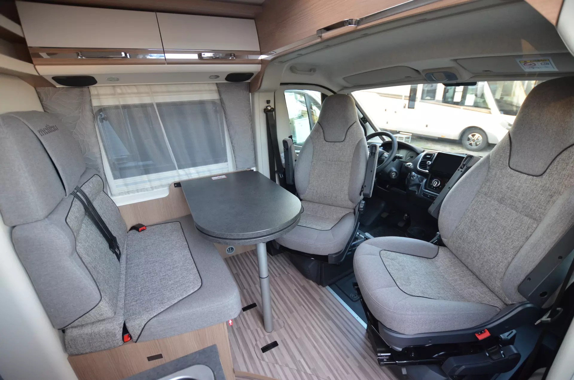 - Gemütliche Sitzgruppe dank drehbarer Fahrer- und Beifahrersitze