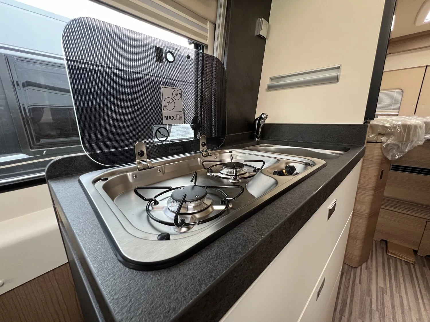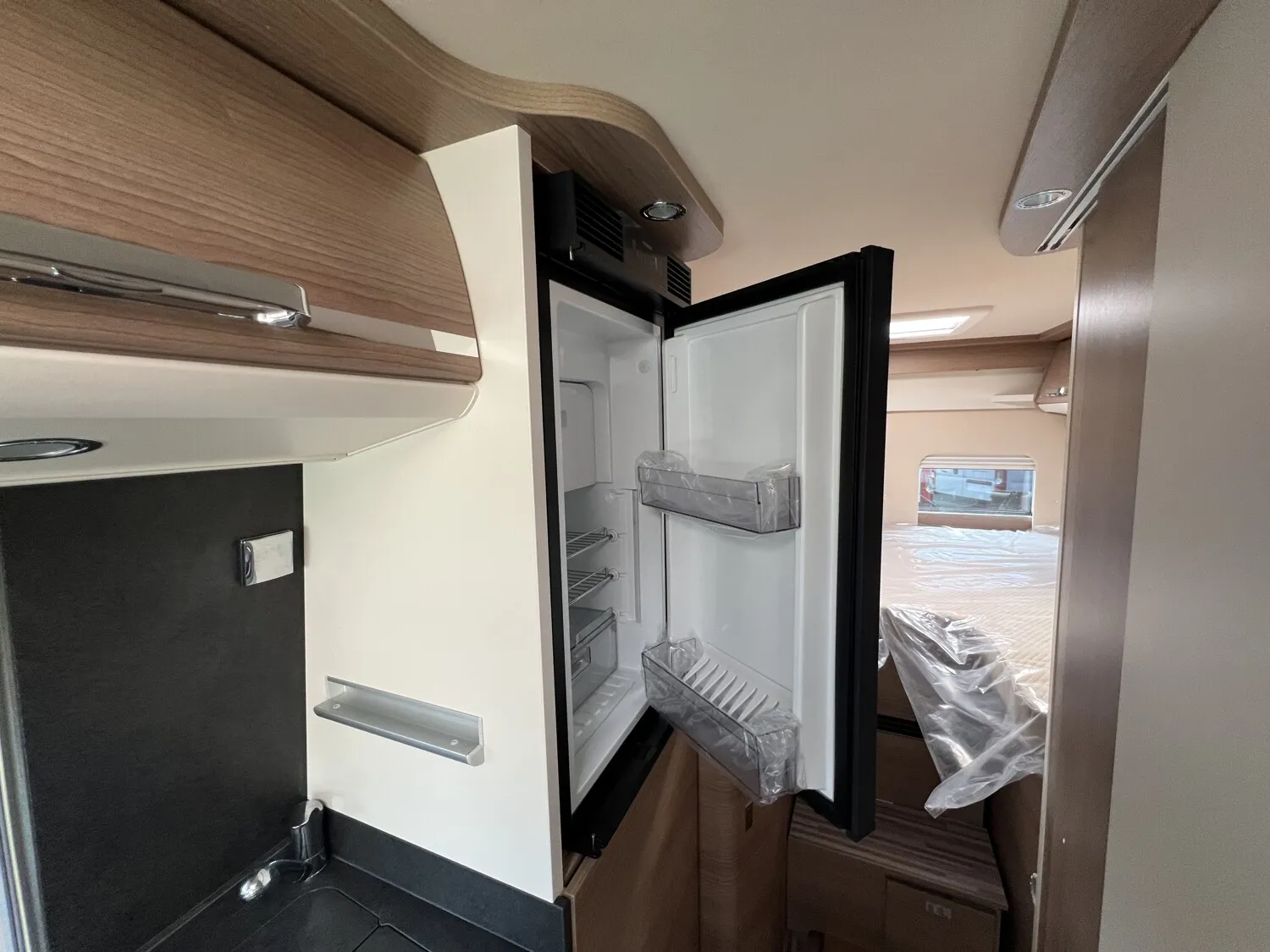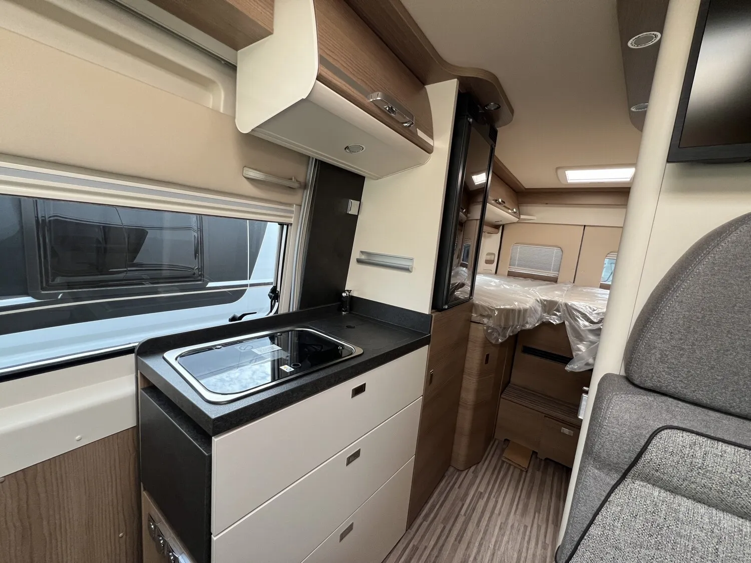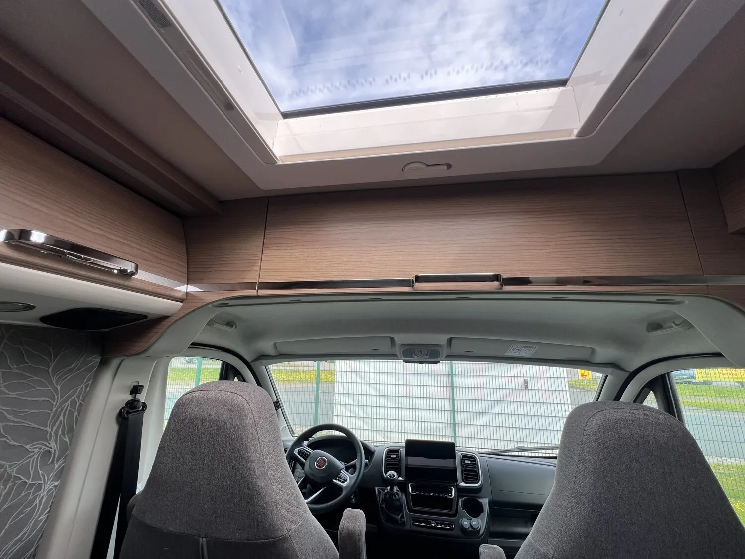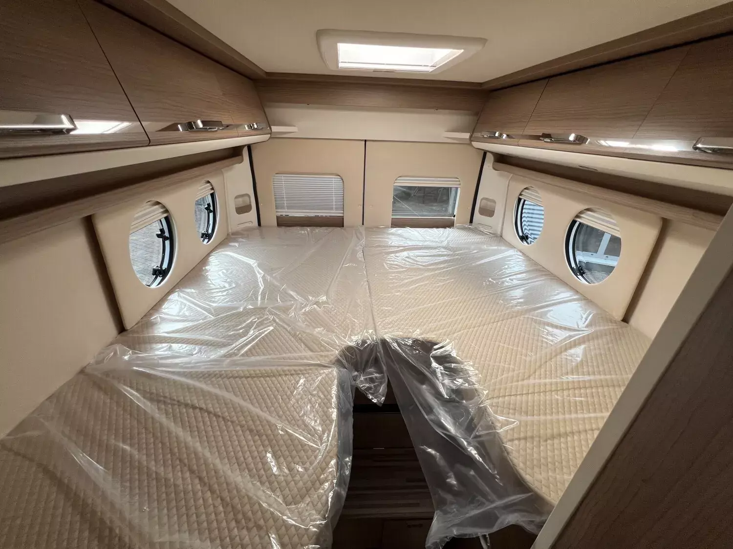 - Aufbau-Paket (Dachinnenverkleidung mit Mikrofaser-Klimabelag, Deckenbaldachin Wohnraum mit indirekter LED-Ambientebeleuchtung, Upgrade Küchencenter, Qualitäts-Kaltschaummatratze im Heckbett, Truma CP Plus digitales Bedienpanel, Verzurrsystem Gepäckraum, Abwassertank in Gehäuse eingefasst und isoliert)