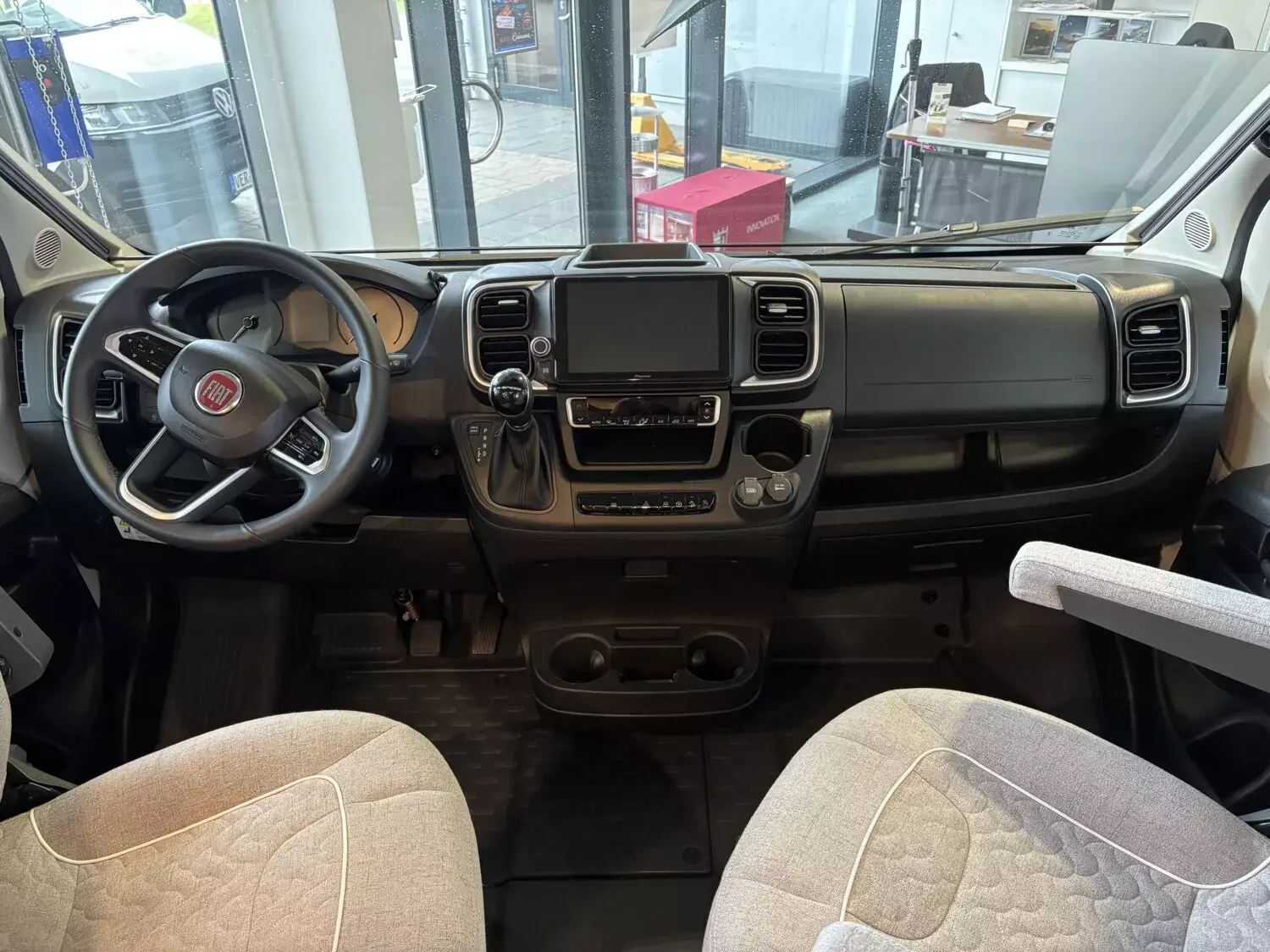 - Chassis-Paket (Einparkhilfe mit Sensoren im Heck, Kraftstofftank 90 Liter, Ladebooster, Fahrerhausverdunklungssystem an Front- und Seitenscheiben, Armaturenbrettveredelung: Lüftungsgitter in Chrom, Radiovorbereitung mit Dachantenne und DAB+, Lautsprecher (4x), Beifahrersitz höhenverstellbar, Pilotensitze in Wohnraumstoff bezogen inkl. gepolsterten Armlehnen, Fliegenschutzgitter hinter Schiebetür, Außenspiegel, elektrisch verstell- und beheizbar)