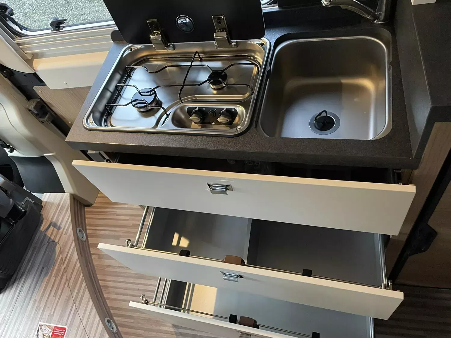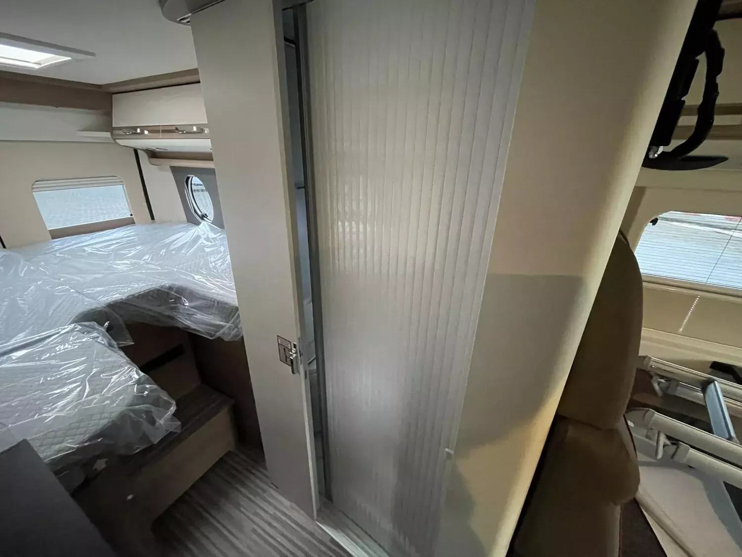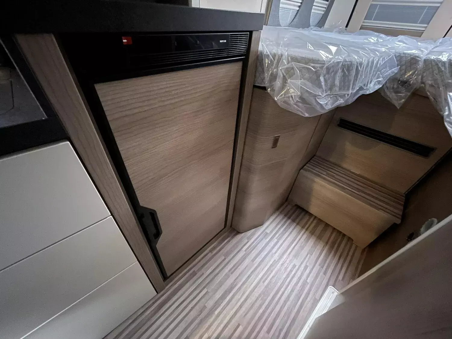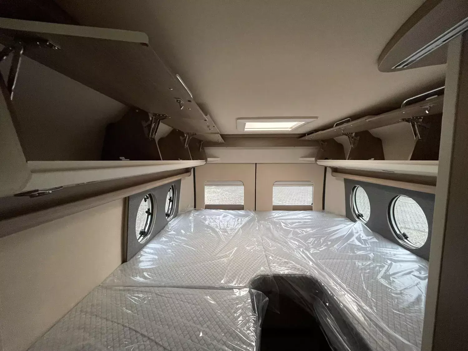 - Aufbau-Paket (Dachinnenverkleidung mit Mikrofaser-Klimabelag, Deckenbaldachin Wohnraum mit indirekter LED-Ambientebeleuchtung, Upgrade Küchencenter, Qualitäts-Kaltschaummatratze im Heckbett, Truma CP Plus digitales Bedienpanel, Verzurrsystem Gepäckraum, Abwassertank in Gehäuse eingefasst und isoliert)