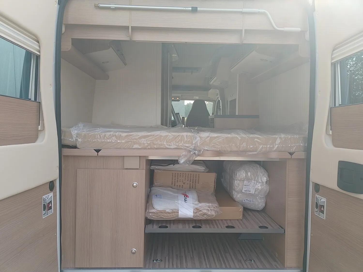 - Chassis-Paket (Einparkhilfe mit Sensoren im Heck, Kraftstofftank 90 Liter, Ladebooster, Fahrerhausverdunklungssystem an Front- und Seitenscheiben, Armaturenbrettveredelung: Lüftungsgitter in Chrom, Radiovorbereitung mit Dachantenne und DAB+, Lautsprecher (4x), Beifahrersitz höhenverstellbar, Pilotensitze in Wohnraumstoff bezogen inkl. gepolsterten Armlehnen, Fliegenschutzgitter hinter Schiebetür, Außenspiegel, elektrisch verstell- und beheizbar)