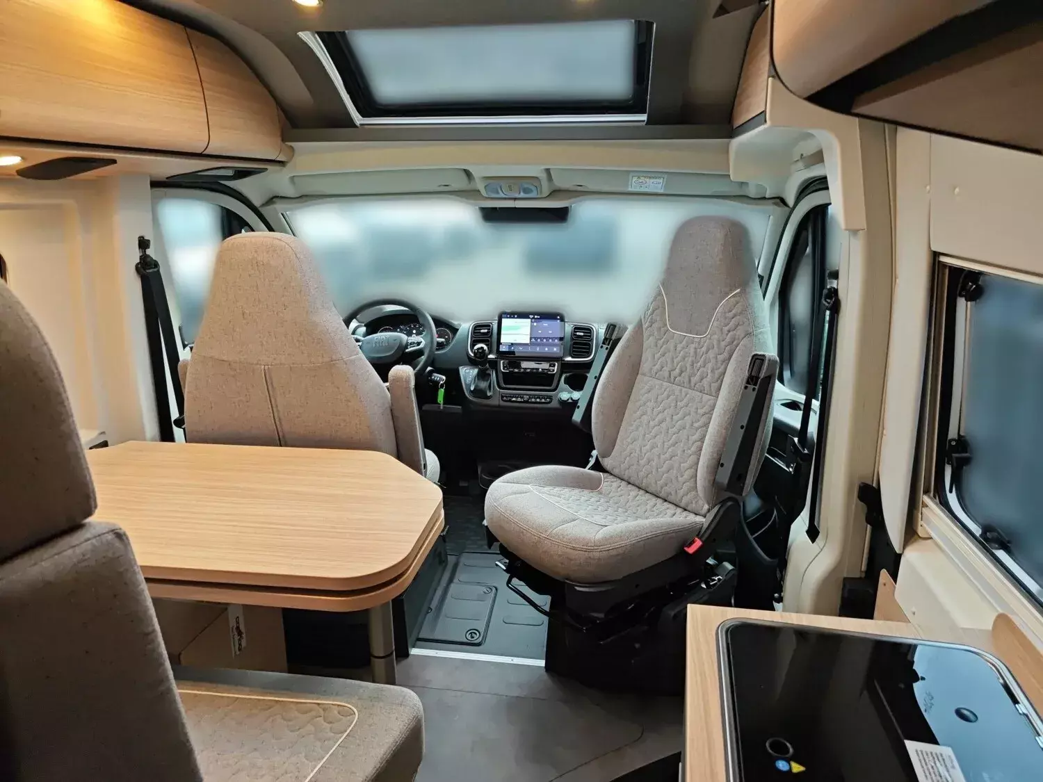 - Fahrassistenz- und Infotainment Paket (Aktiver Bremsassistent mit Fußgänger und Radfahrererkennung, Aktiver Spurhalteassistent, Fernlichtassistent, Verkehrsschilderkennung, Regen- und Lichtsensor, Abstandsregeltempomat, Intelligenter Geschwindigkeitsassistent, Aufmerksamkeitsassistent, Reifendrucksensoren, Multimediasystem Fiat 10,1" inkl. Navigation, Reisemobil-Routenführung und DAB+, Digitales Rückfahrkamerasystem mit Einzellinse)
