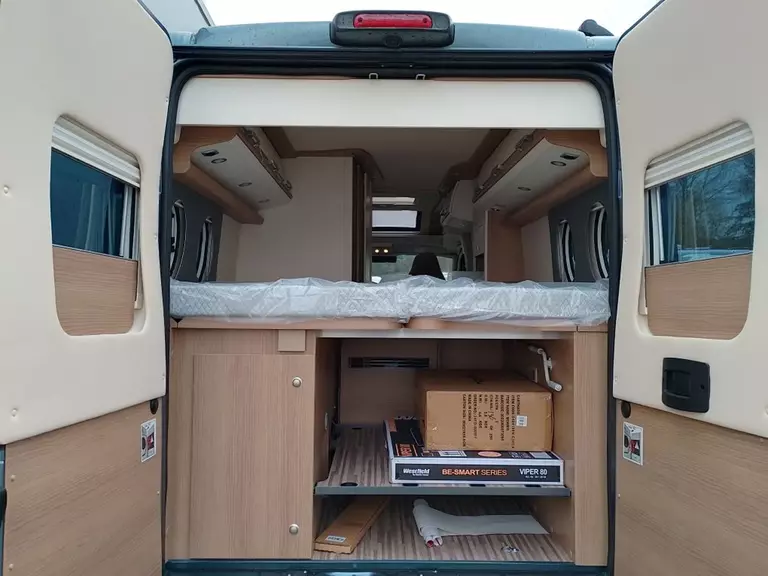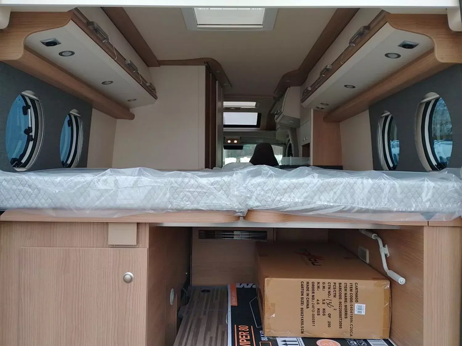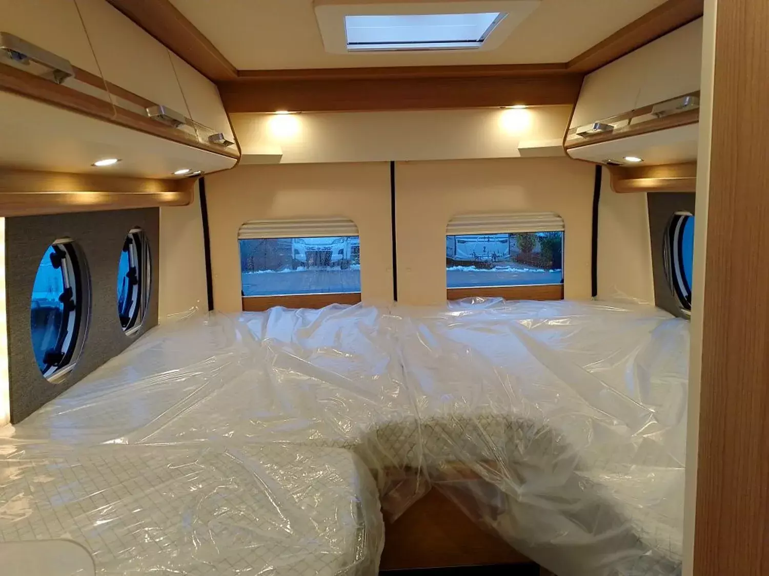 - Aufbau-Paket (Dachinnenverkleidung mit Mikrofaser-Klimabelag, Deckenbaldachin Wohnraum mit indirekter LED-Ambientebeleuchtung, Upgrade Küchencenter, Qualitäts-Kaltschaummatratze im Heckbett, Truma CP Plus digitales Bedienpanel, Verzurrsystem Gepäckraum, Abwassertank in Gehäuse eingefasst und isoliert)