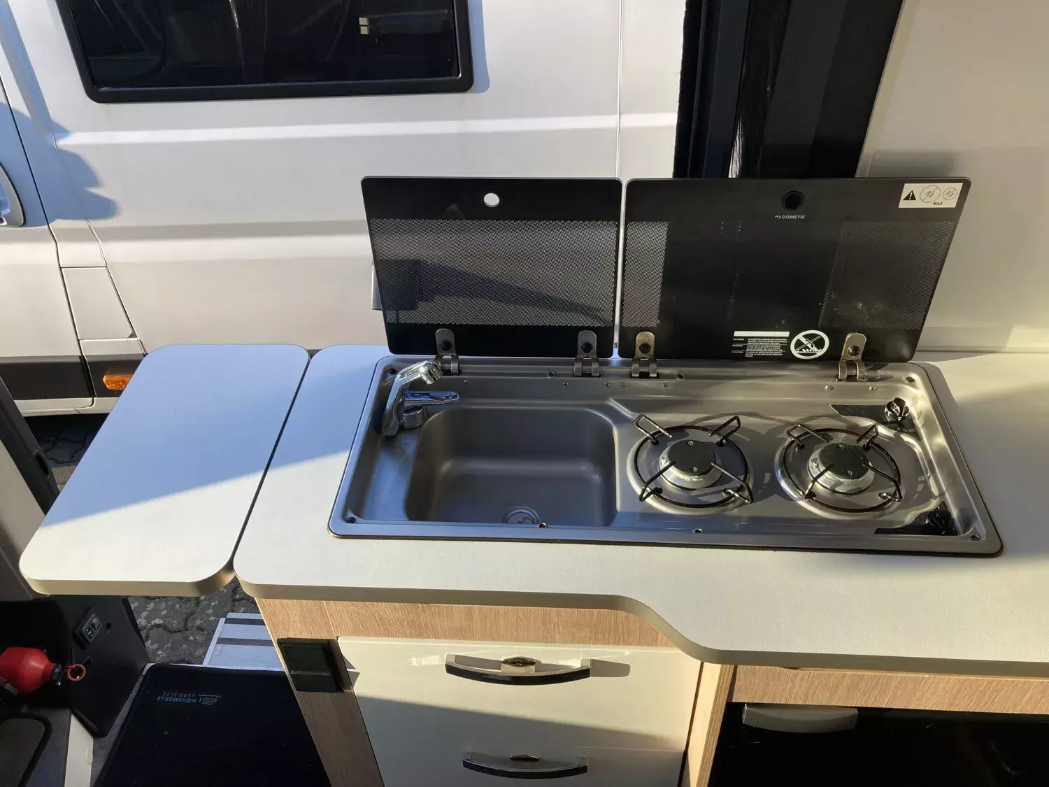 - All-In-One Paket (3,5 t anstelle 3,3 t Chassis, Citroen Motorisierung 120 PS / 89 kW Euro 6d-final, Vollwertiges Ersatzrad (kein Reifenpilot), Metallic Lackierung, Elektrisch beheizbare und verstellbare Außenspiegel, Beifahrerairbag, Tempomat, Traction+, ESP, Hillholder, LED-Tagfahrlicht, Fahrerhausklimaanlage, Stoßfänger vorn in Wagenfarbe lackiert (nicht bei Heavy Version), Nebelscheinwerfer und Kühlergrill in schwarz, Automatische SAT-Anlage mit Receiver, 22" TFT und Wandhalterung, 120 Watt Solaranlage inkl. Laderegler, Thule Dachmarkise in schwarz (bei Aufstelldach Fiamma F45 3,5m schwarz), Thule Fahrradträger 2er Hecktüre (nicht bei 63XL), Multimedia-Paket: Navi, Rückfahrkamera, Radio-DAB+, Freisprecheinrichtung, Bluetooth, uvm., Remis Front-Rollo-Komplettsystem 3-fach, Fahrersitz & Beifahrersitz im Sonderpolster Kunstleder, Fahrerhausteppich, Truma Druckminderer mit Crashsensor, Doppel-USB-Anschluss Hinten und Vorn, Bündige Seitz S-6 Rahmenfenster, Fliegenschutztür für die Schiebetür, Regenrinne inklusive LED-Außenbeleuchtung, Tischplatte alternativ ausschwenkbar, Kompressorkühlschrank 85 l / 90 l, Elektrische Trittstufe inkl. Warnsummer, 16" Alufelgen (bei 120 PS 15" Alufelgen), Truma CP Plus)