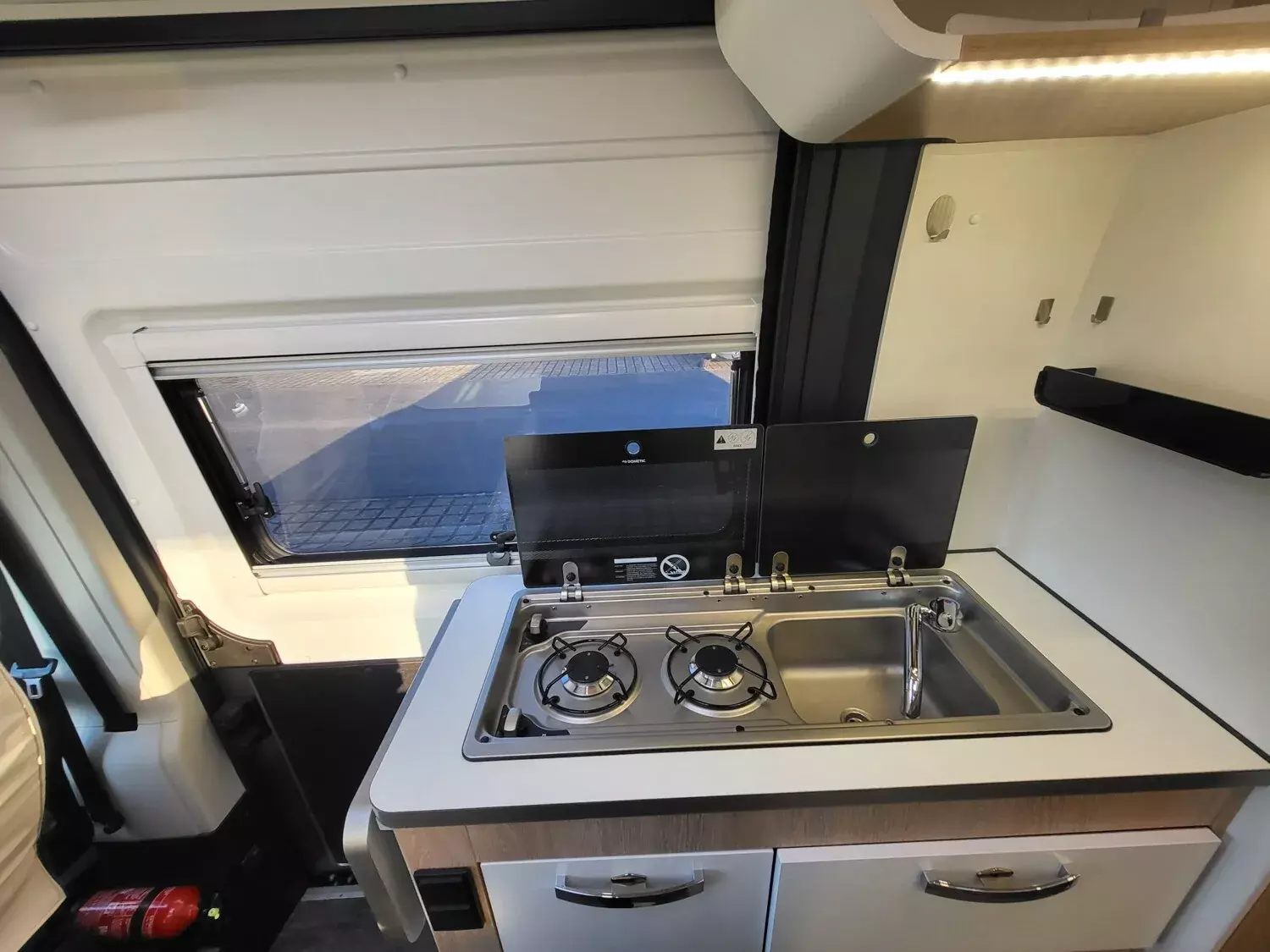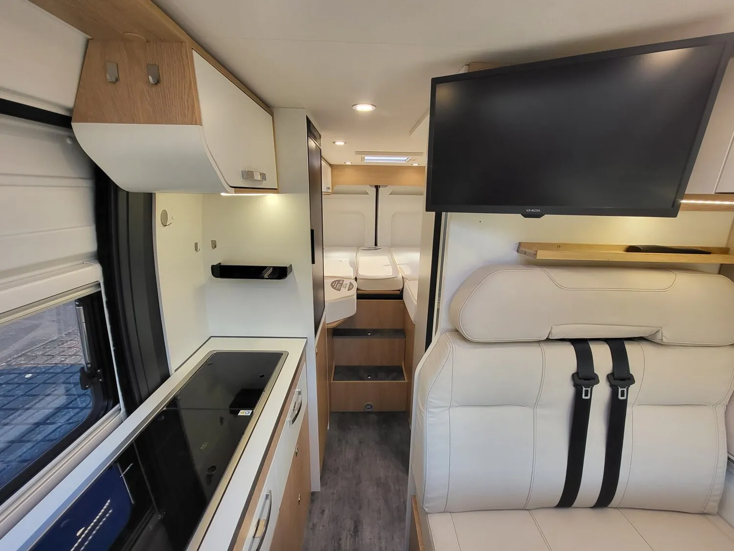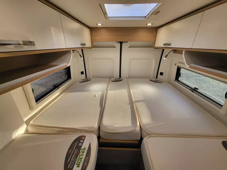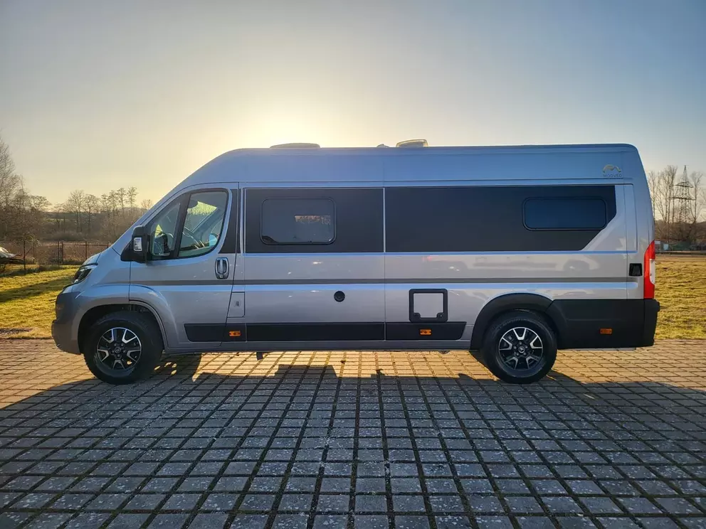 - All-In-One Paket (3,5 t anstelle 3,3 t Chassis, Citroen Motorisierung 120 PS / 89 kW Euro 6d-final, Vollwertiges Ersatzrad (kein Reifenpilot), Metallic Lackierung, Elektrisch beheizbare und verstellbare Außenspiegel, Beifahrerairbag, Tempomat, Traction+, ESP, Hillholder, LED-Tagfahrlicht, Fahrerhausklimaanlage, Stoßfänger vorn in Wagenfarbe lackiert (nicht bei Heavy Version), Nebelscheinwerfer und Kühlergrill in schwarz, Automatische SAT-Anlage mit Receiver, 22" TFT und Wandhalterung, 120 Watt Solaranlage inkl. Laderegler, Thule Dachmarkise in schwarz (bei Aufstelldach Fiamma F45 3,5m schwarz), Thule Fahrradträger 2er Hecktüre (nicht bei 63XL), Multimedia-Paket: Navi, Rückfahrkamera, Radio-DAB+, Freisprecheinrichtung, Bluetooth, uvm., Remis Front-Rollo-Komplettsystem 3-fach, Fahrersitz & Beifahrersitz im Sonderpolster Kunstleder, Fahrerhausteppich, Truma Druckminderer mit Crashsensor, Doppel-USB-Anschluss Hinten und Vorn, Bündige Seitz S-6 Rahmenfenster, Fliegenschutztür für die Schiebetür, Regenrinne inklusive LED-Außenbeleuchtung, Tischplatte alternativ ausschwenkbar, Kompressorkühlschrank 85 l / 90 l, Elektrische Trittstufe inkl. Warnsummer, 16" Alufelgen (bei 120 PS 15" Alufelgen), Truma CP Plus)
