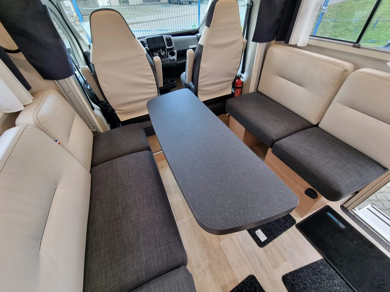 - All-In-One Paket (3,5 t anstelle 3,3 t Chassis, Elektrisch beheiz- u. verstellbare Außenspiegel, Beifahrerairbag, Tempomat, Traction +, ESP, Hillholder, Fahrerhausklimaanlage, Stoßfänger vorn in Wagenfarbe lackiert, Automatische SAT-Anlage 85 mit Receiver, 22" TFT und Halterung, 100 Watt Solaranlage inkl. Laderegler, Thule - Markise (Länge je nach Fahrzeug), Truma CP Plus, Mulitimedia-Paket: Navi, RFK, Radio-DAB+, Freisprecheinrichtung, Bluetooth uvm., Front-Rollo-Komplettsystem 3-fach, Fahrer- & Beifahrersitz mit gewählten Aufbaupolster bezogen, Fahrerhausteppich, Truma Druckminderer mit Crashsensor, Doppel-USB-Anschluss, Bündige Rahmenfenster, Fliegenschutzrollo für die Aufbautür, Außenbeleuchtung, Kunstleder- / Stoff-Polster ein- oder zweifarbig wählbar, Absorberkühlschrank, Elektrische Trittstufe mit automatischer Einfahrfunktion, Außenschublade in der Seitenschürze, Design Paket innen (Alu Applikationen, Leder Lenkrad und Schalthebel, Lenkradfernbedienung, Chromring Tacho), 16", Alufelgen (bei 120 PS 15", Alufelgen), Aufbautür mit 2-Punkt-Zentralverriegelung und Fenster)
